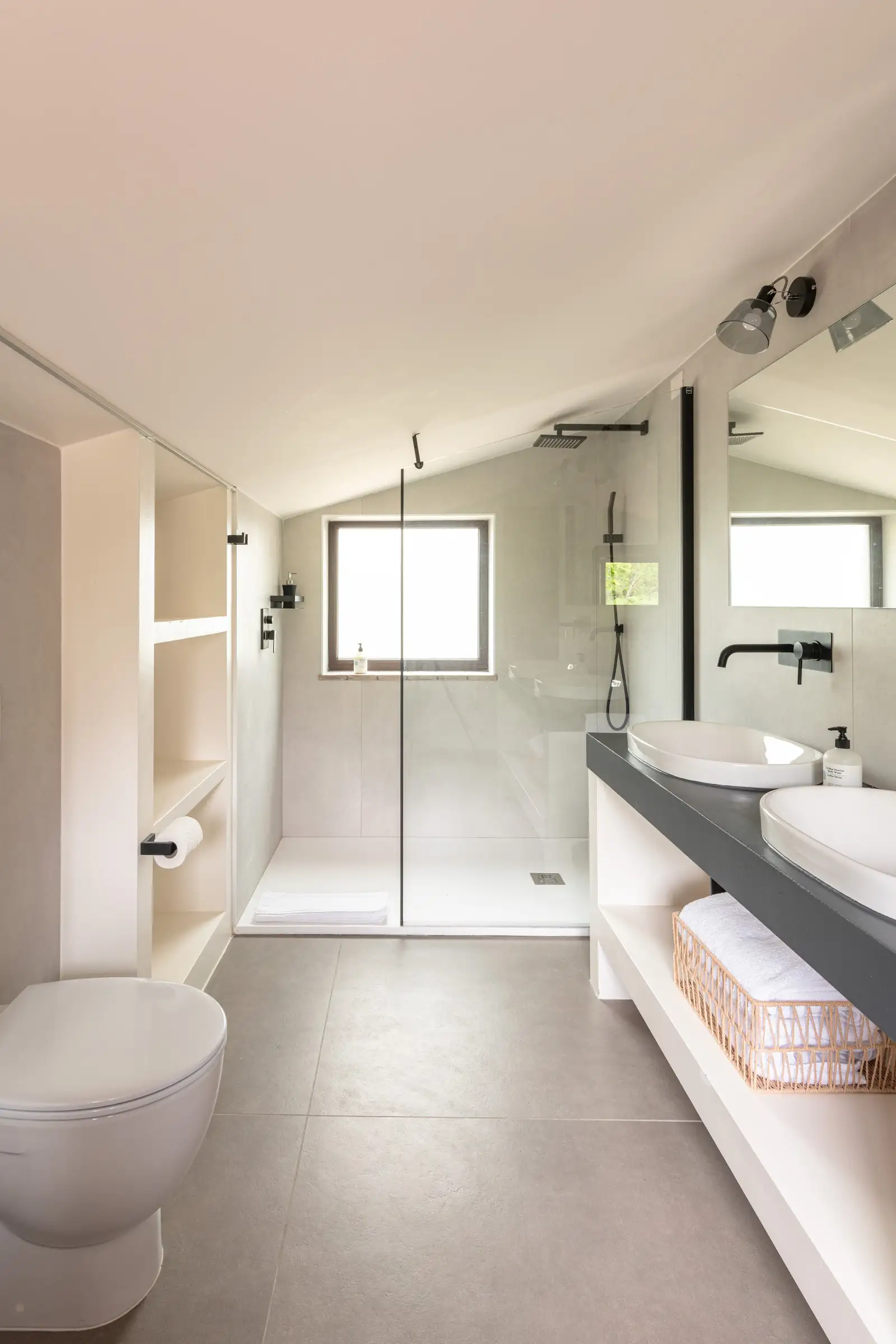 There are three en-suite shower rooms with powerful walk-in showers. Bedrooms 3 and 4, meanwhile, share a family bathroom with a freestanding bath under the window and a walk-in shower. There is a guest WC downstairs in the house as well as an outside shower room and WC for guests to use near the pool and outdoor kitchen.