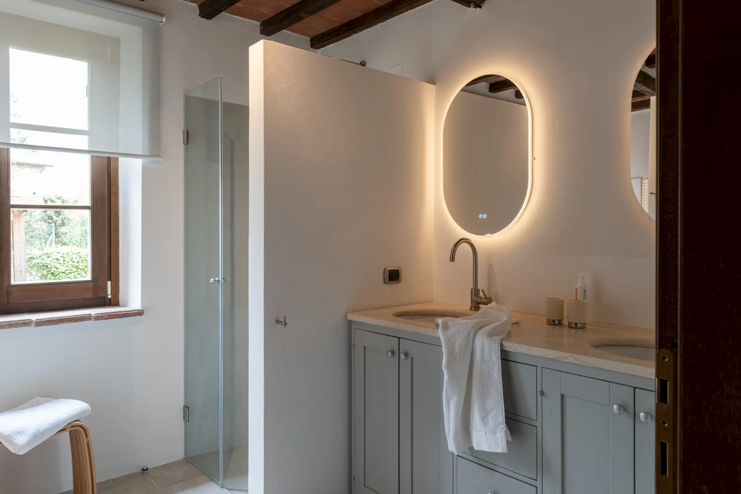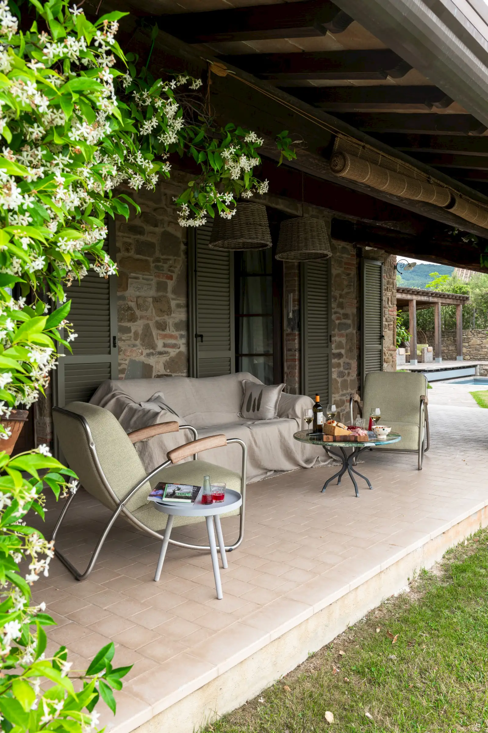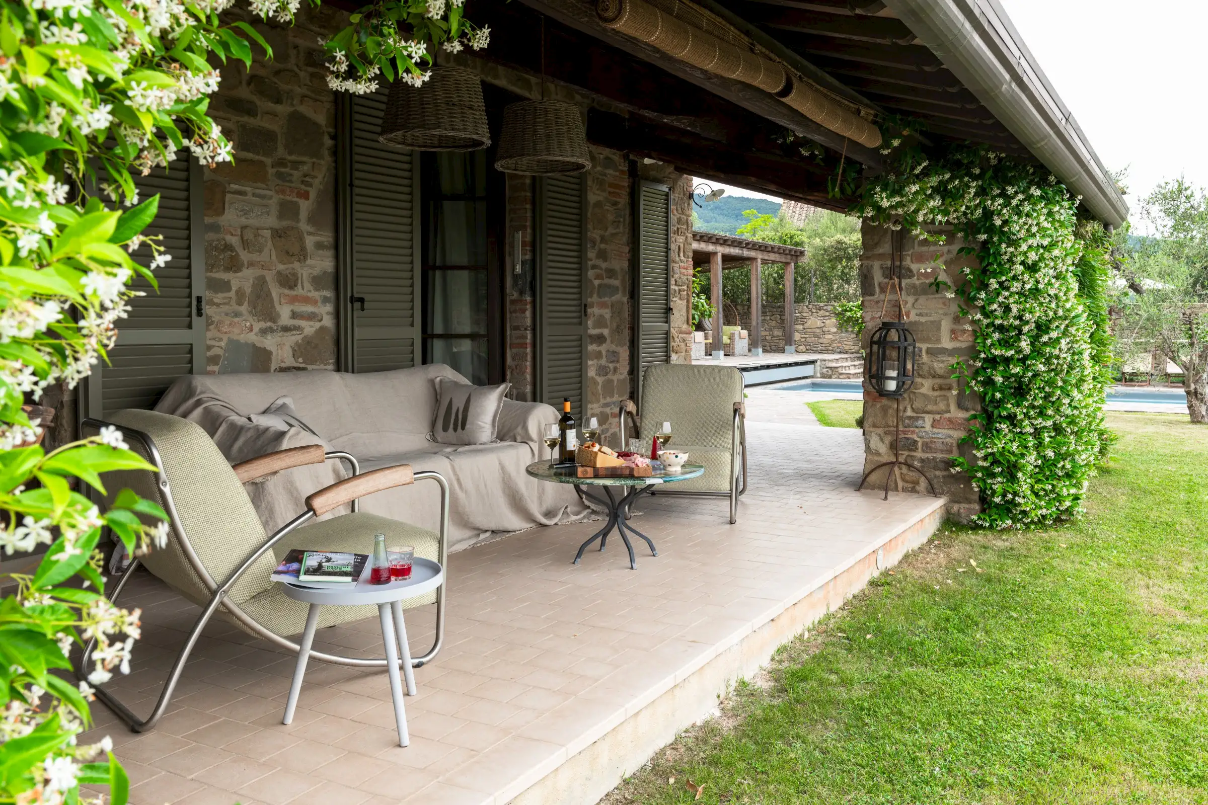 This cosy villa (6 sleeps, 3 bedrooms, 2 bathrooms, air conditioned) newly built, using authentic materials like stone exposed outside walls and wooden beams is a true family home. The house is very complete and the owners thought about everything to make the house the perfect place to stay. Many of our guests return every year to Il Sogno as they feel really at ease here. In 2024 the bathrooms were renewed and the interior got some adjustments.
