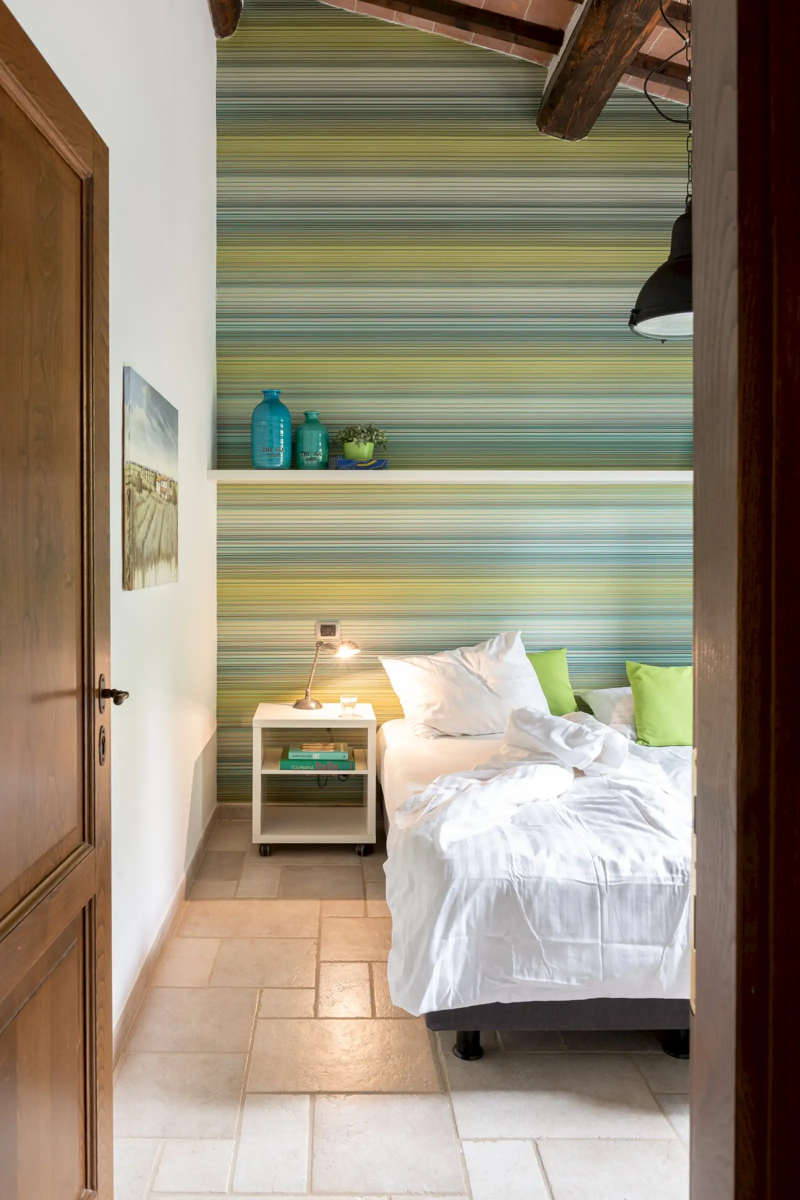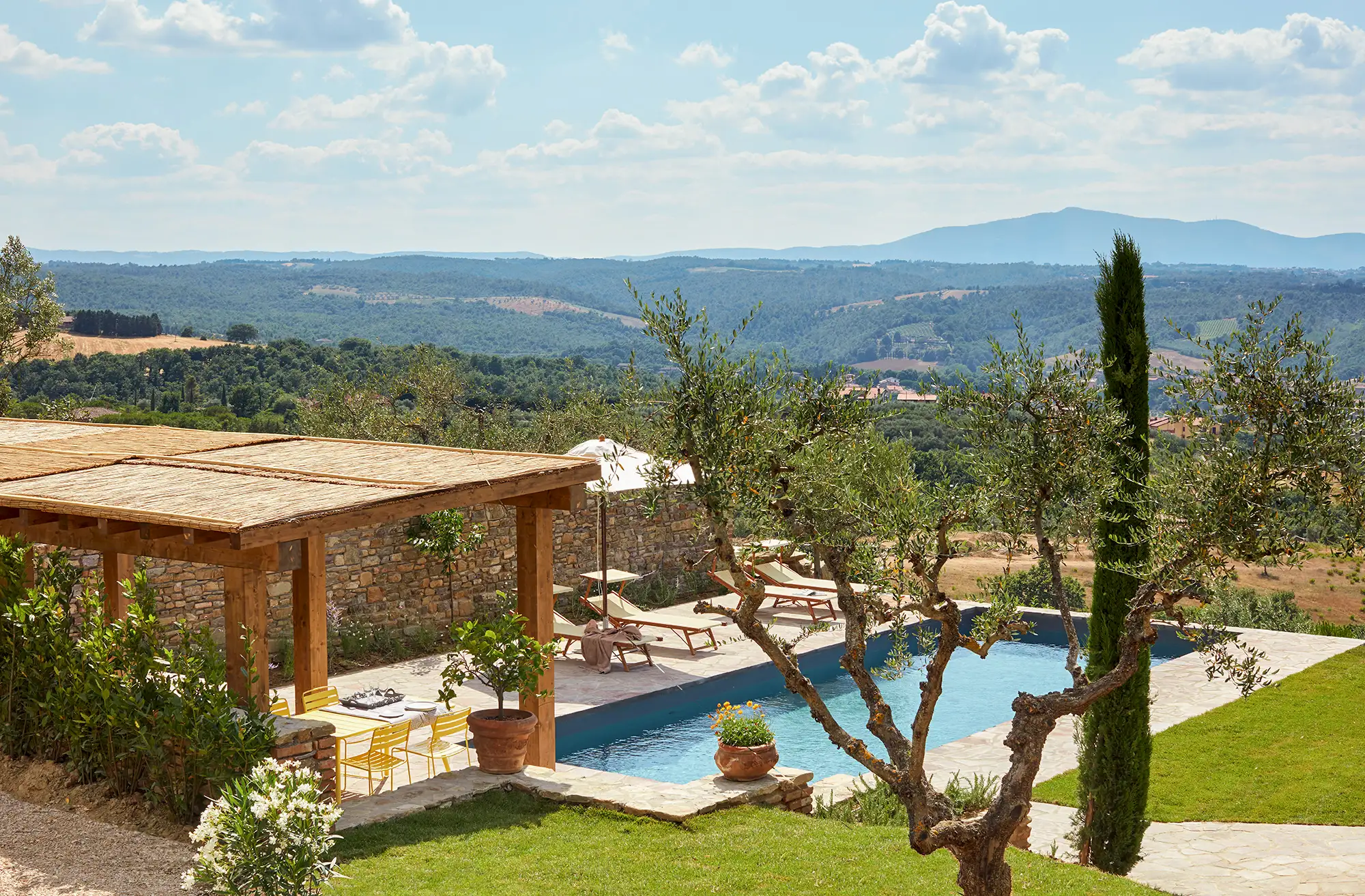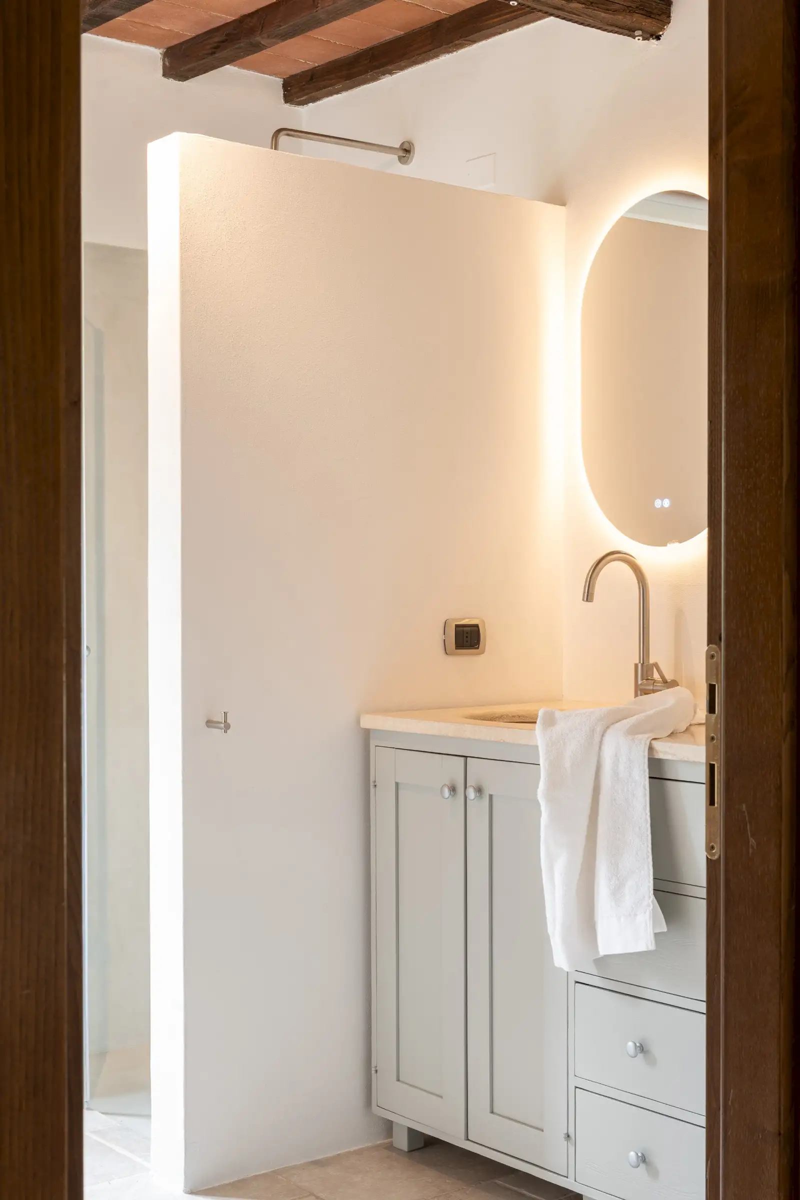This cosy villa (6 sleeps, 3 bedrooms, 2 bathrooms, air conditioned) newly built, using authentic materials like stone exposed outside walls and wooden beams is a true family home. The house is very complete and the owners thought about everything to make the house the perfect place to stay. Many of our guests return every year to Il Sogno as they feel really at ease here. In 2024 the bathrooms were renewed and the interior got some adjustments.