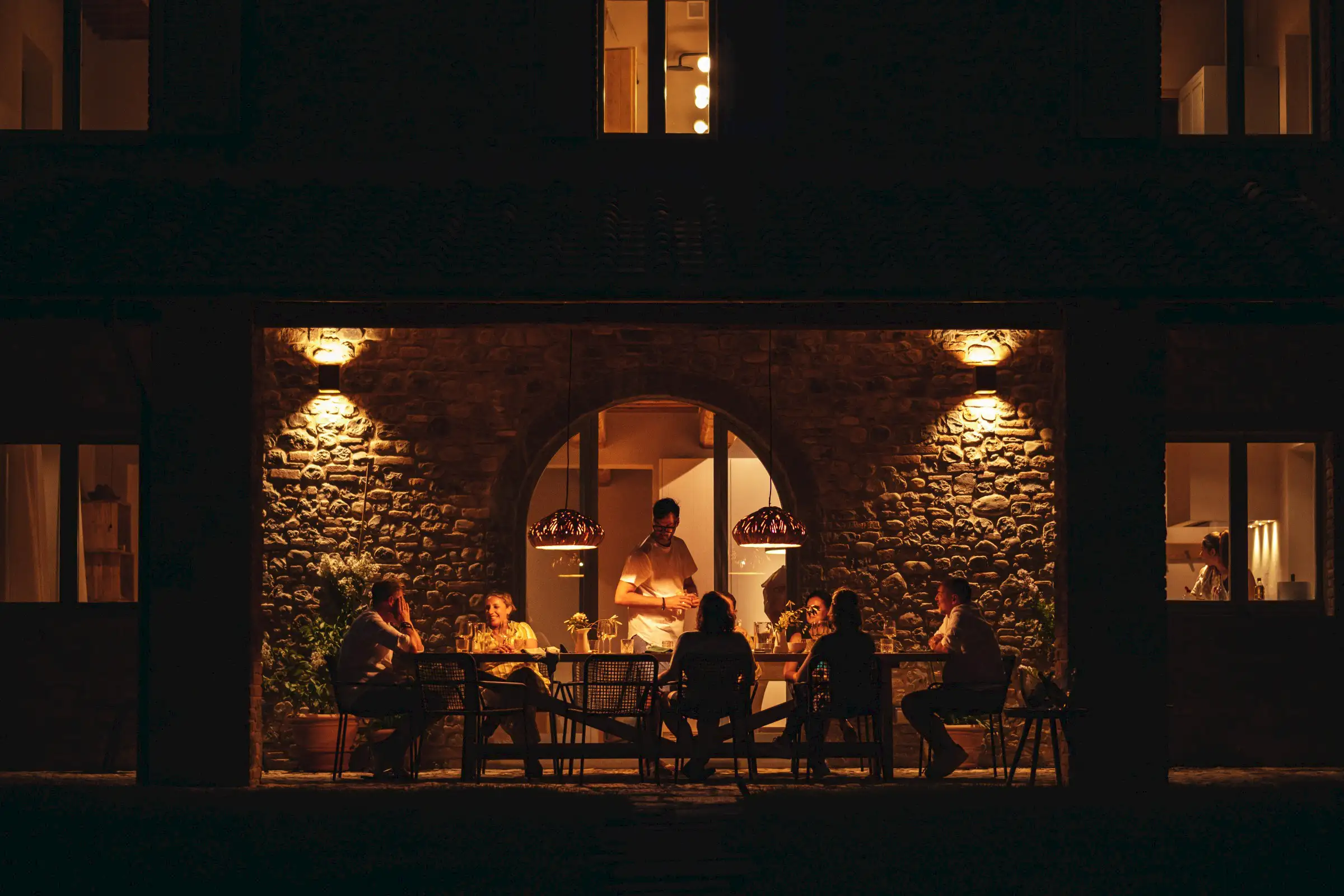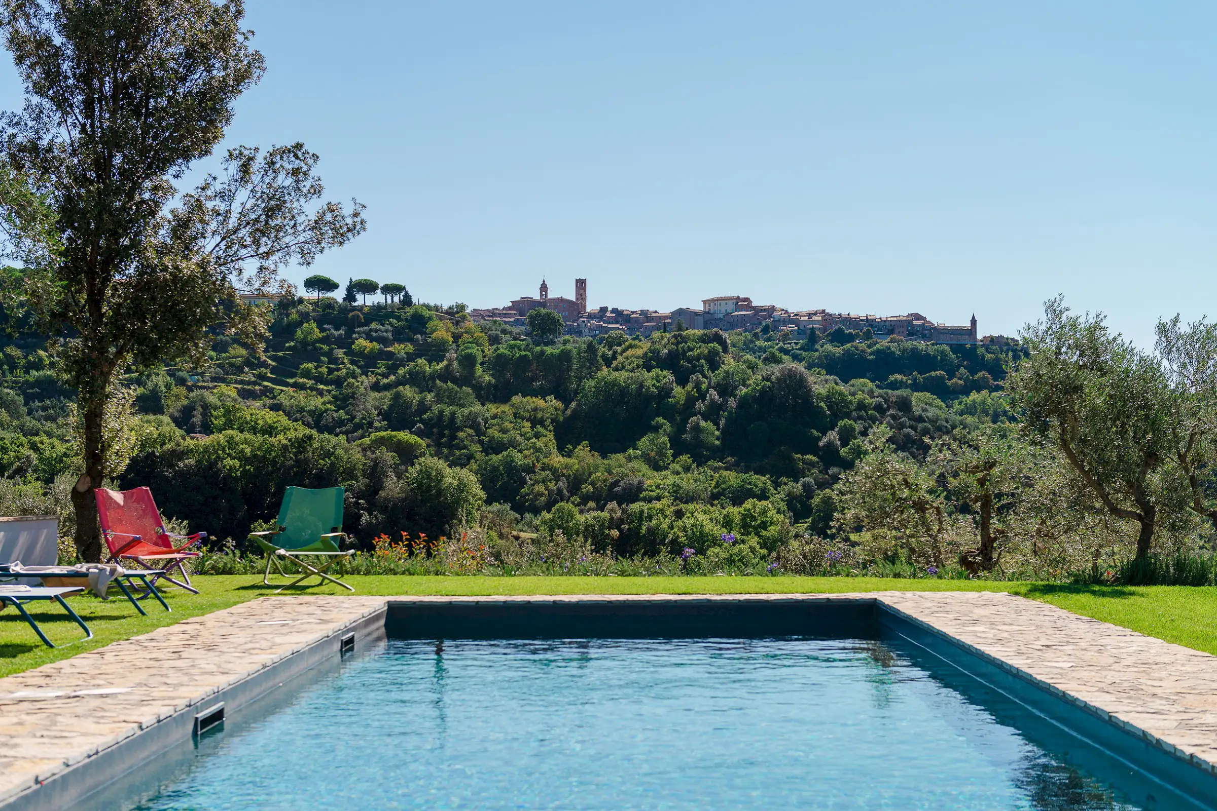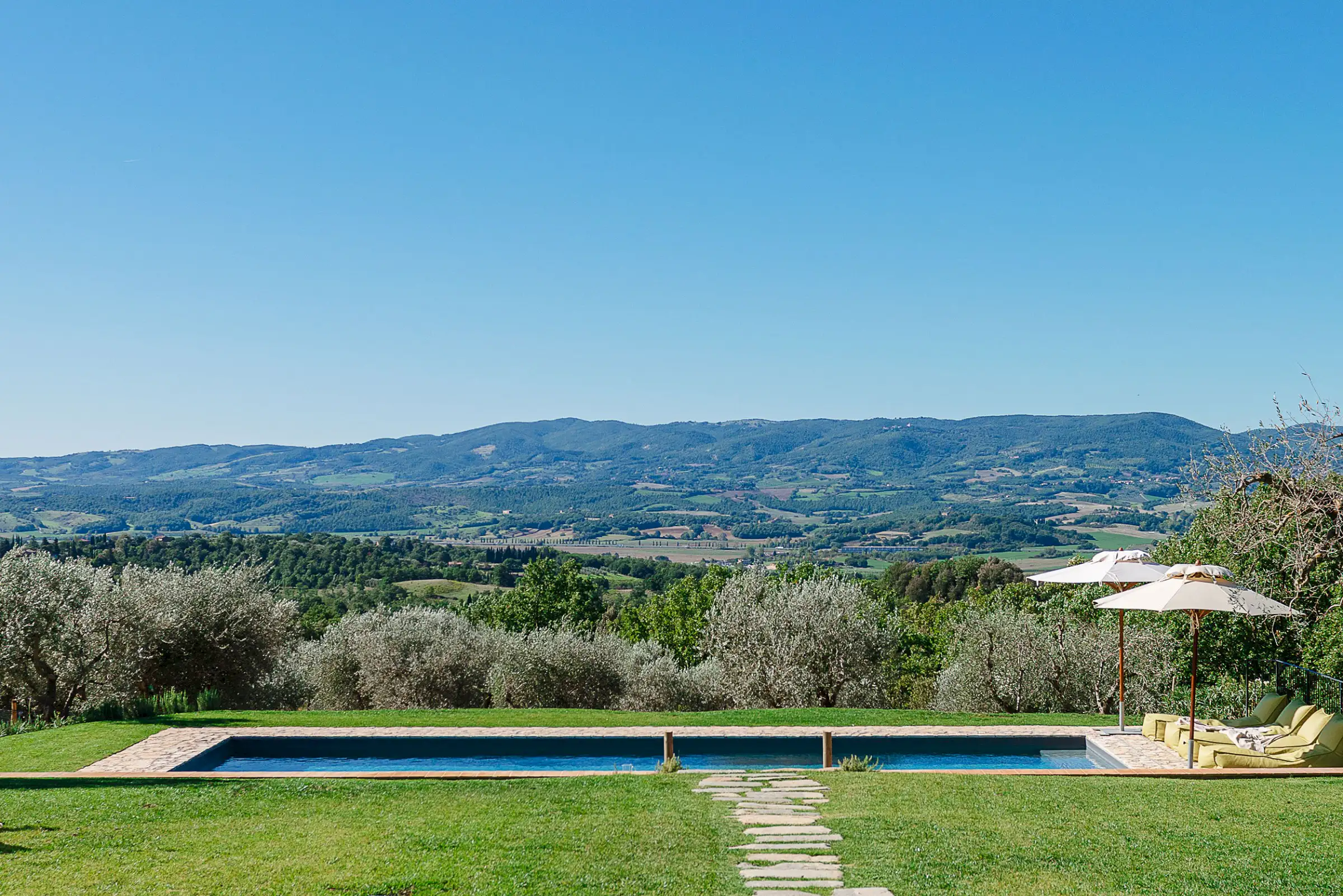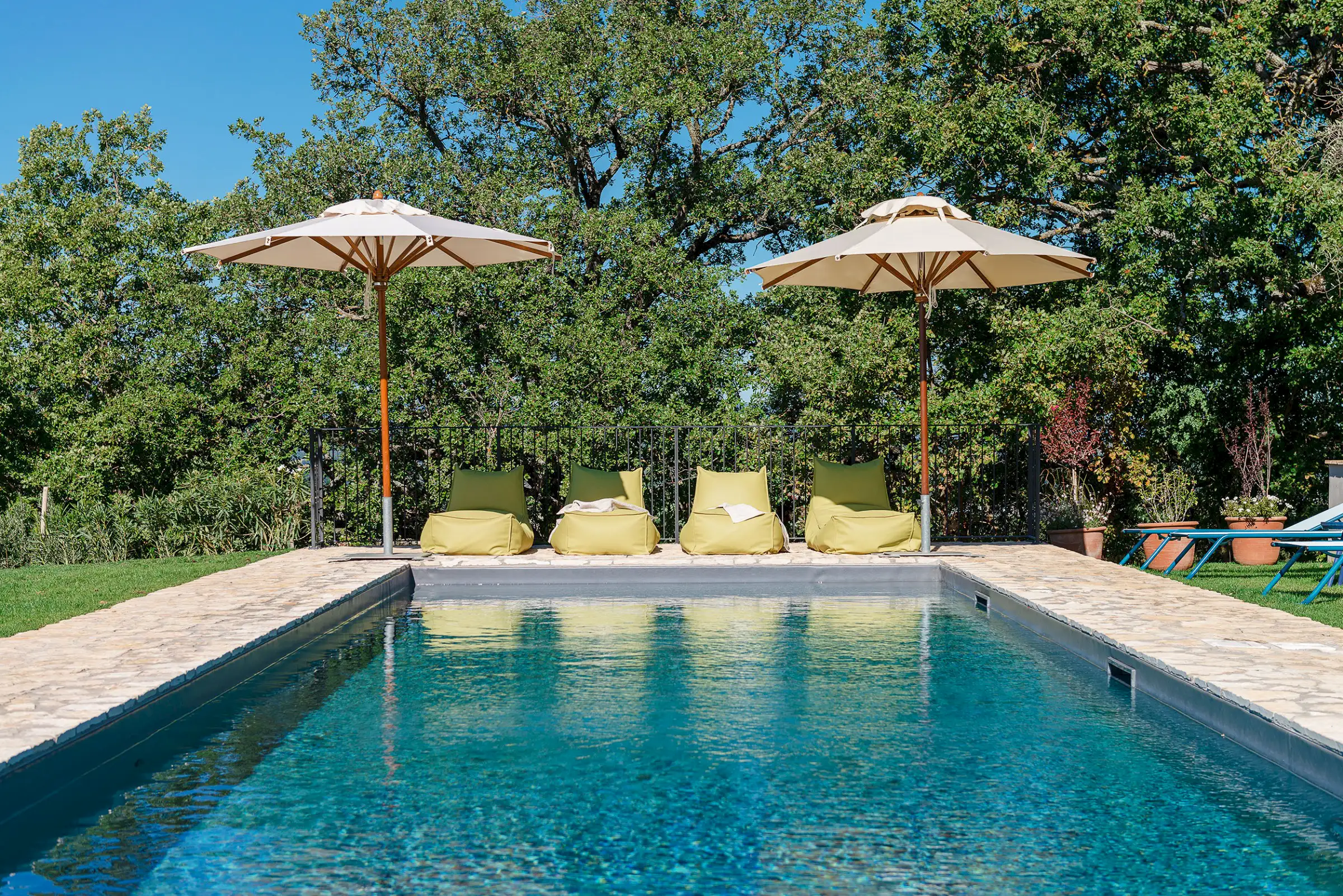Outside, there is a stunning 13m x 4m heated pool with views to match, and a path that leads through the trees to a centuries-old, original wine cellar that has been transformed into a cantina. The indoor/outdoor kitchen and pizza oven enable guests to cook here, and they can dine at a long table shaded by a pergola, with the same hypnotic views beyond.