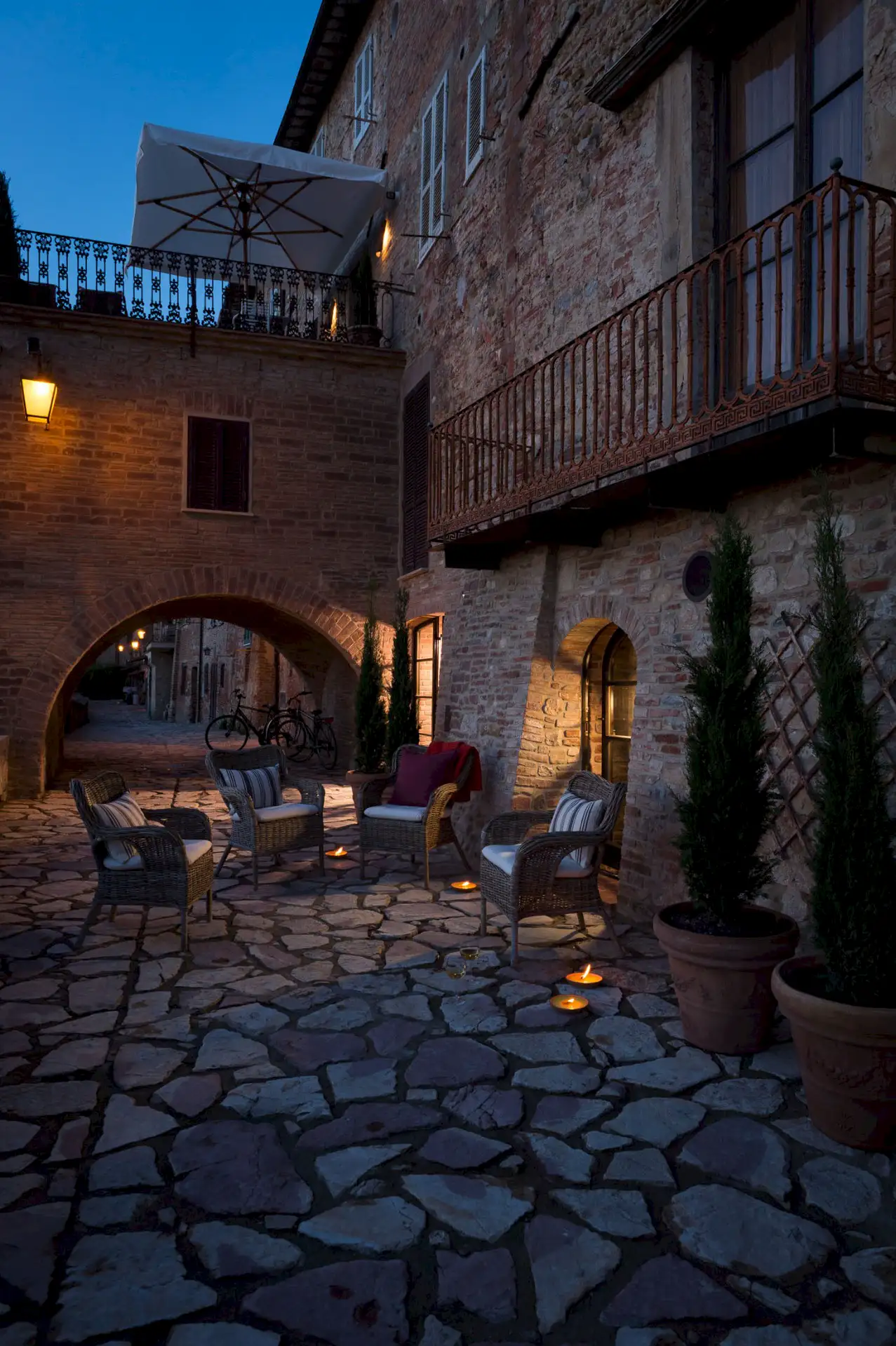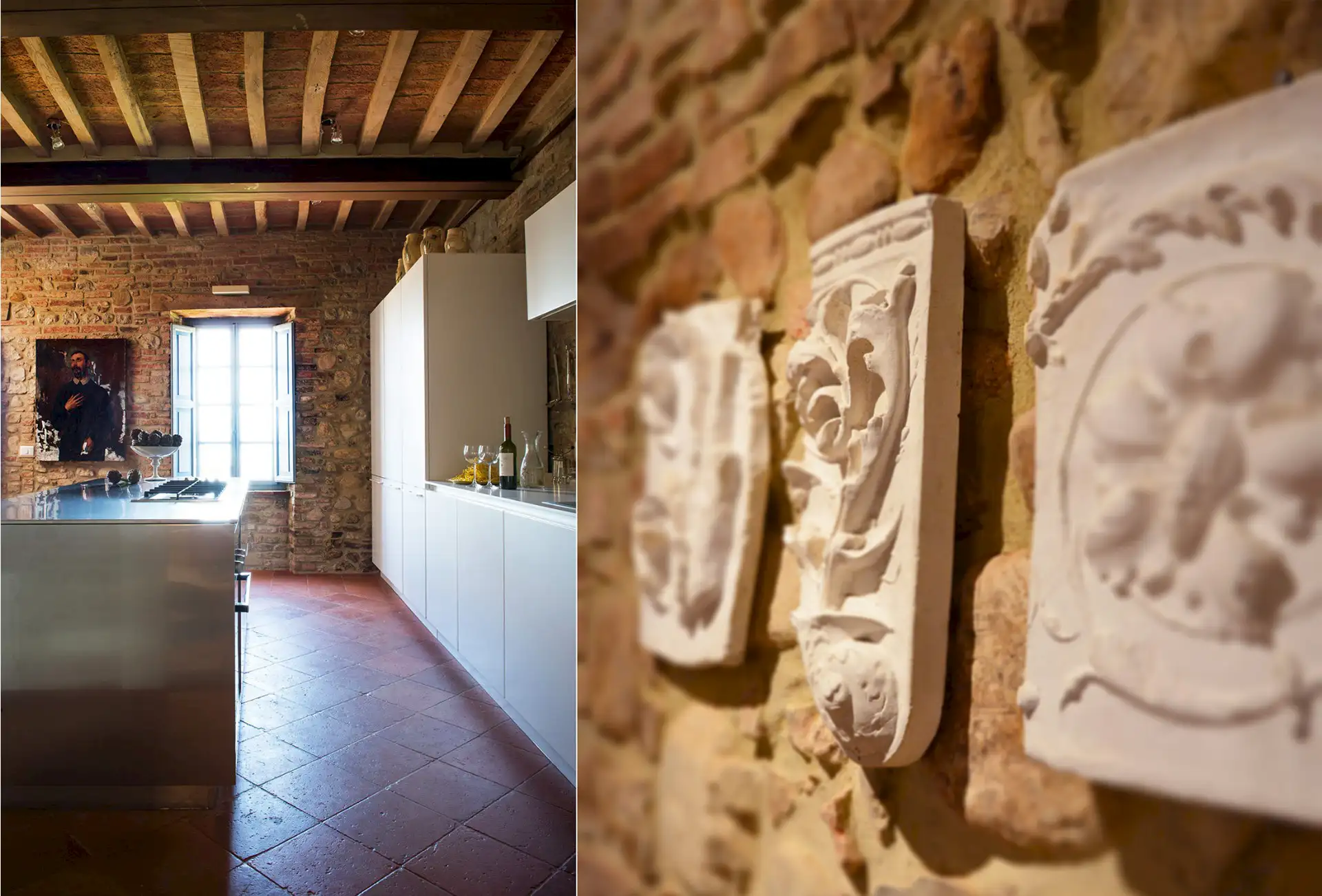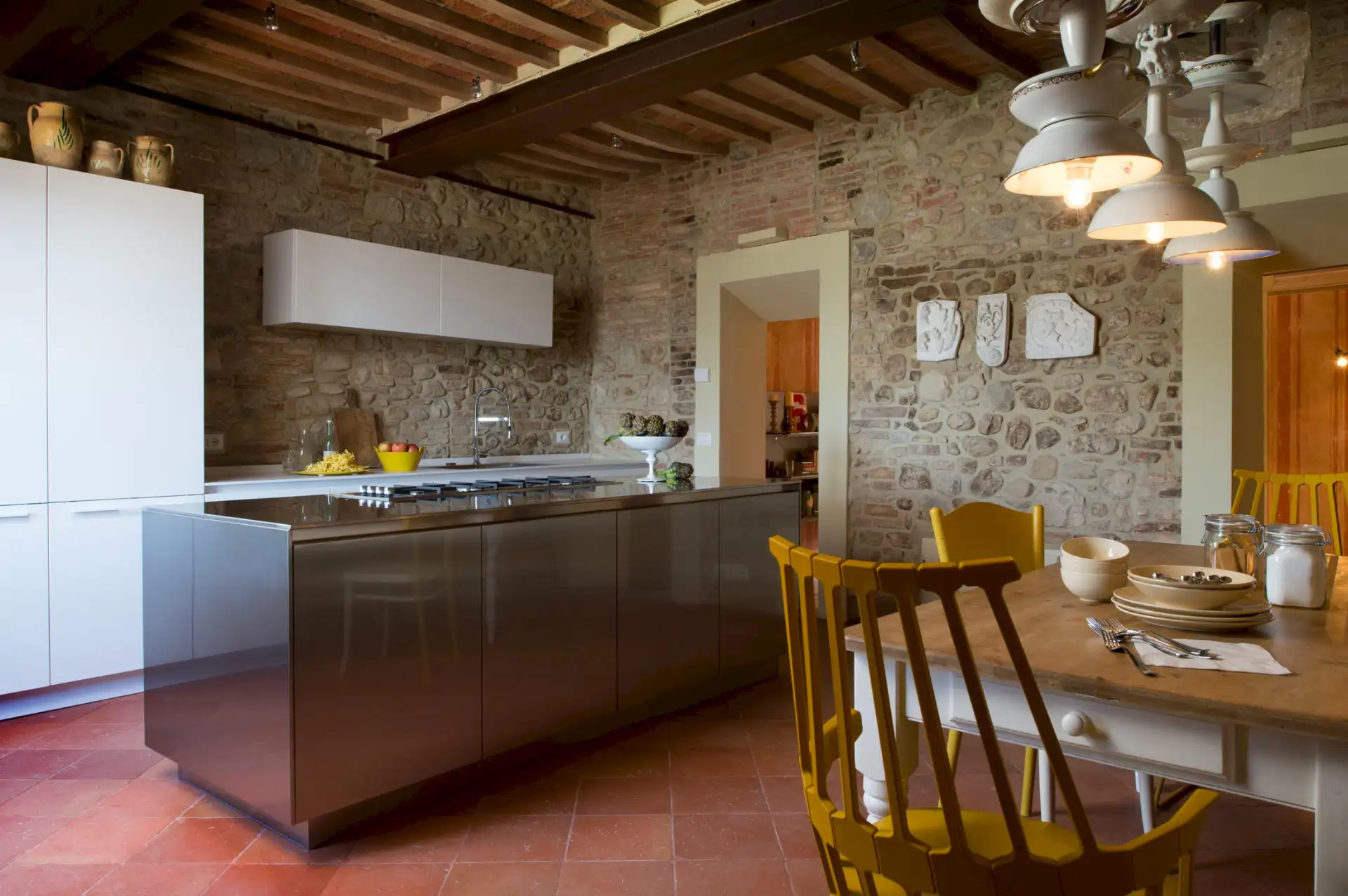 Monteleone14 has been a restoration project which was completed early May 2014. This is one of the most special places we have seen in years. This townhouse (3 bedrooms, 3 bathrooms) with private pool in the medieval cellar is a one of a kind property. This house, which was owned by a noble family is all frescoed and was restored in detail in the last year. The interior was done in the best modern design (Flos, B&B Italia, Kartell etc) and together with the colorful, antique frescoes and old tiled floors this is in all senses unique. Here you feel part of an Umbrian town and will you experience the best views you can imagine from the spacious terrace. In the cellar a concrete pool was built in the medieval foundations of the house. The pool (heated in winter) and hottub, together with the wine cellar for guest use only makes this an experience hard to forget. The pool gives access to a small street/square which makes it also ideal for children to swim and play.