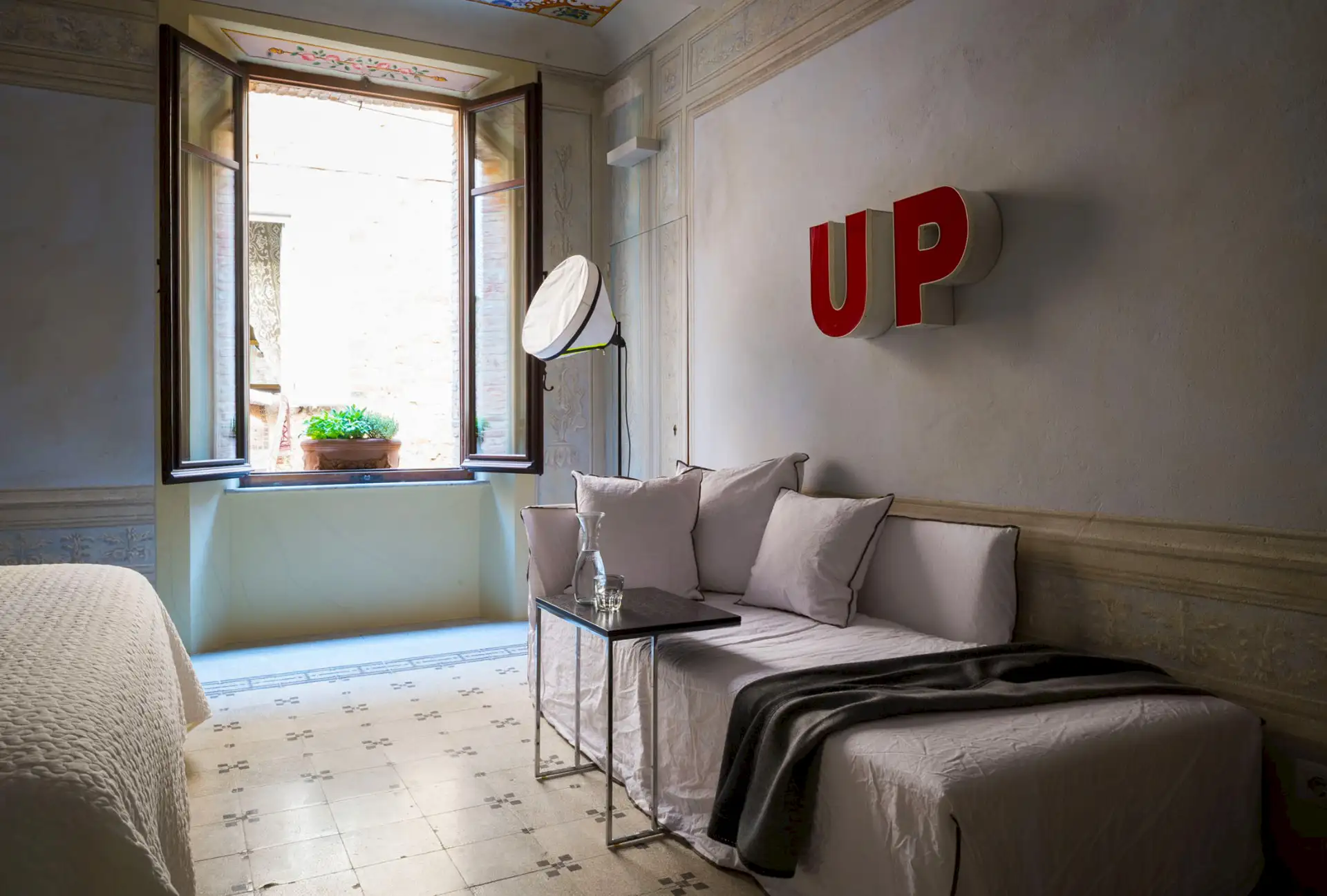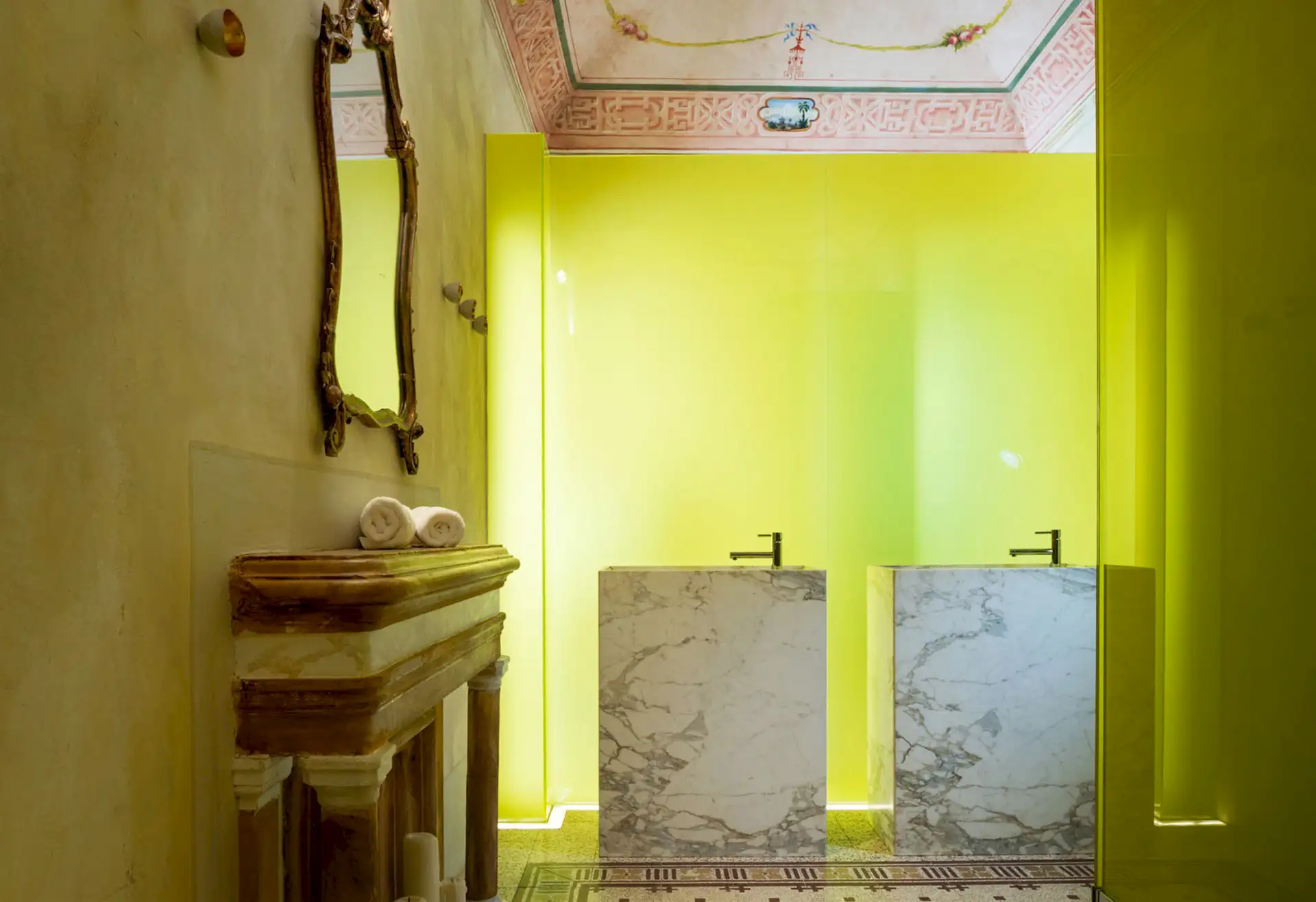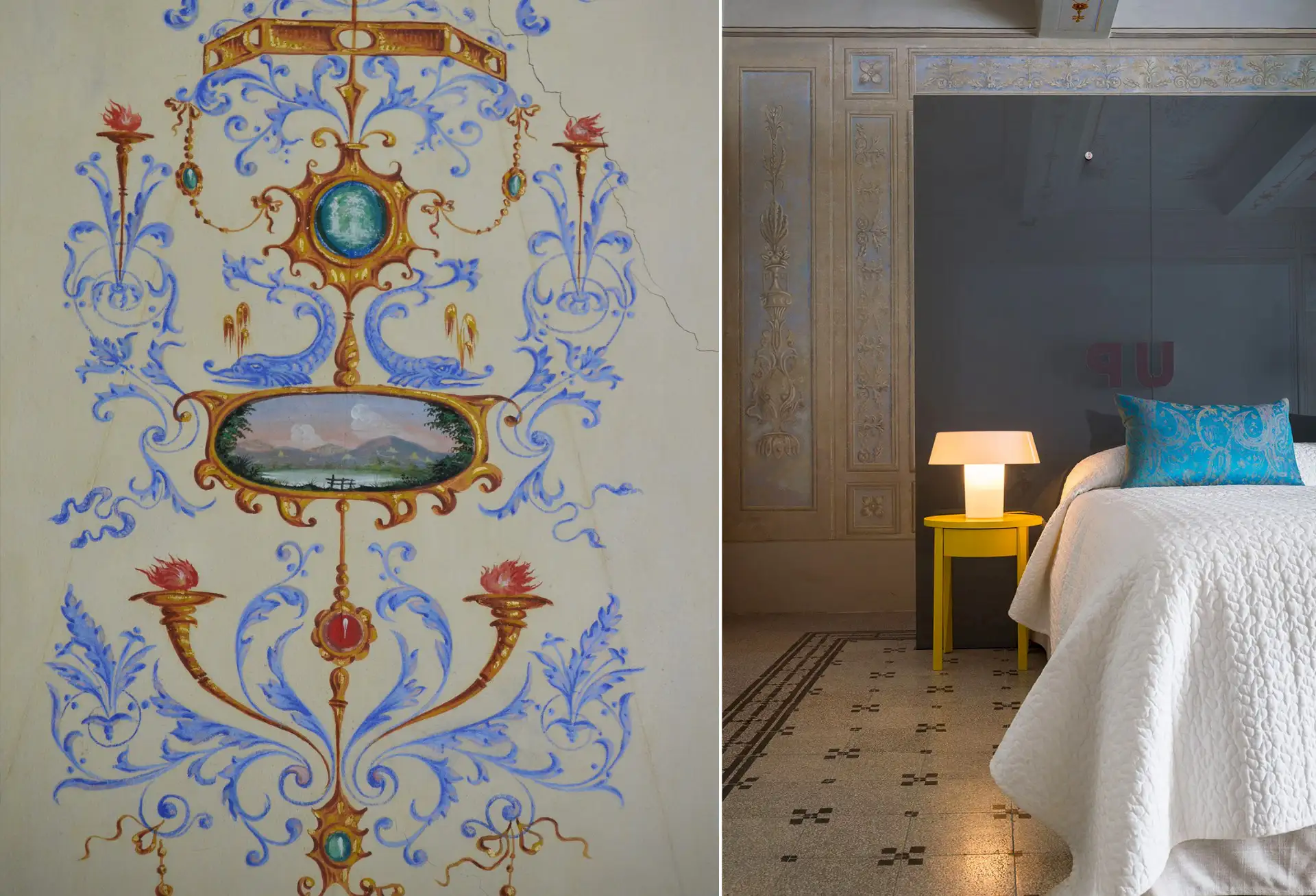 An amazing blend of renaissance and 19th century frescoes with very modern interventions. Unique!