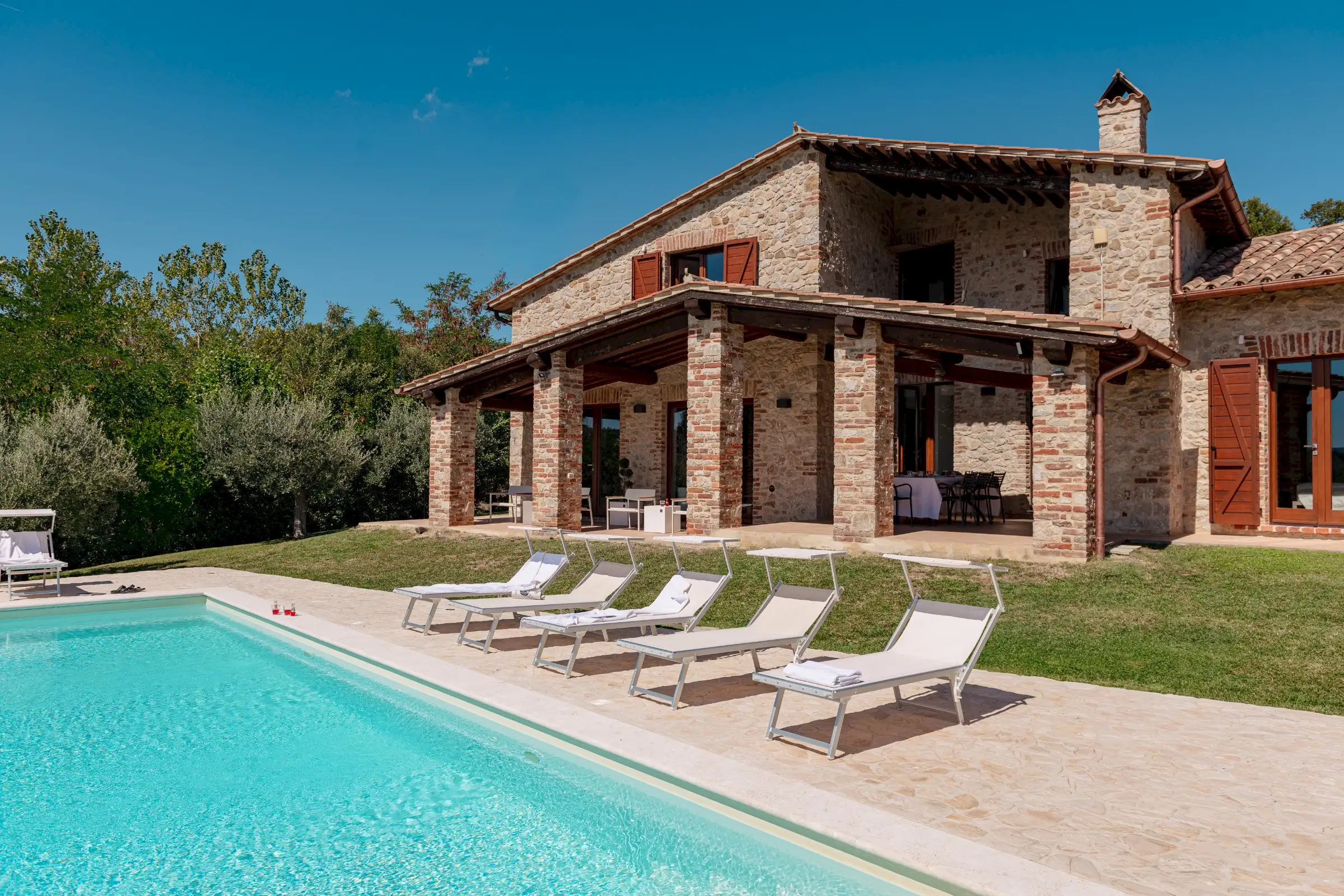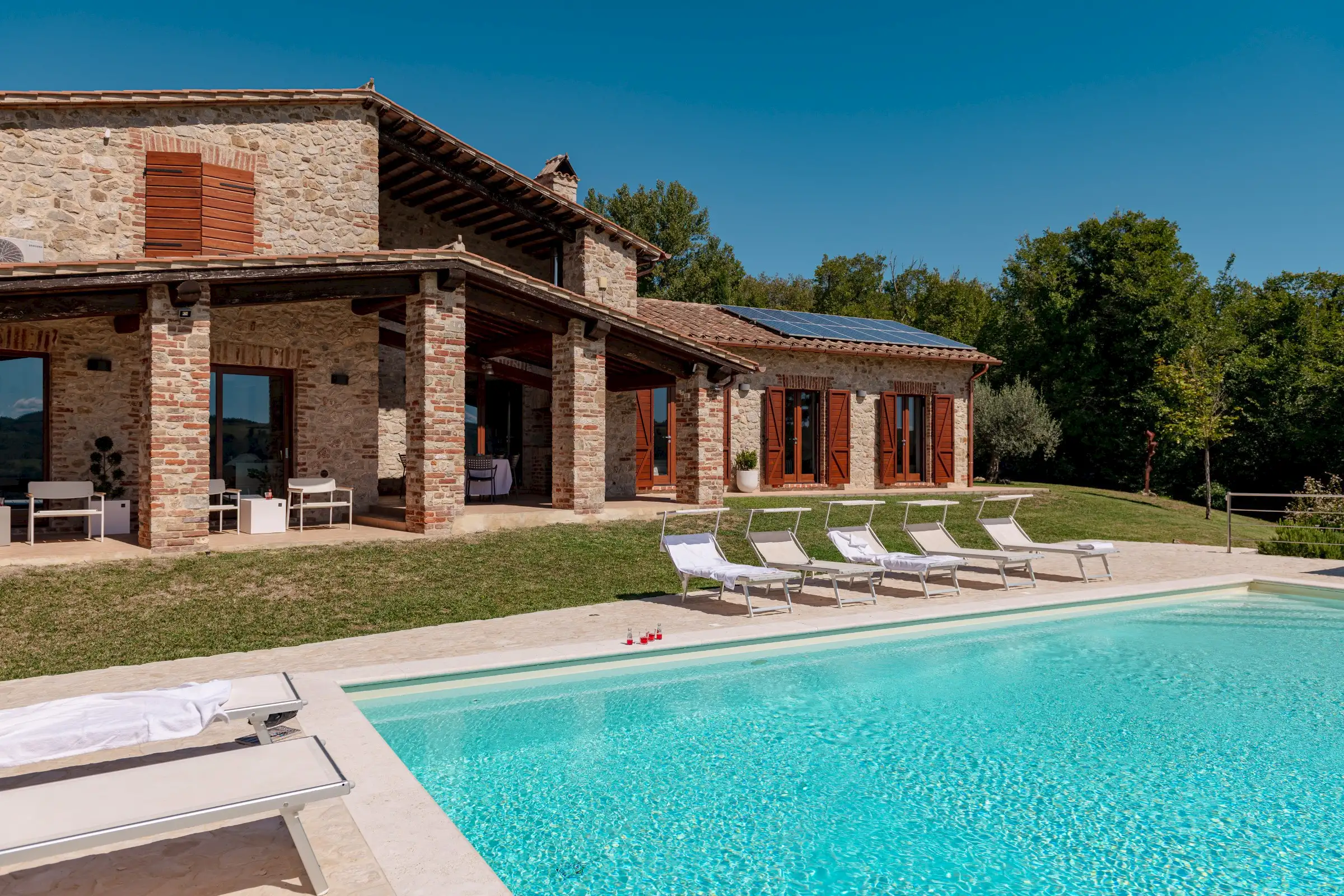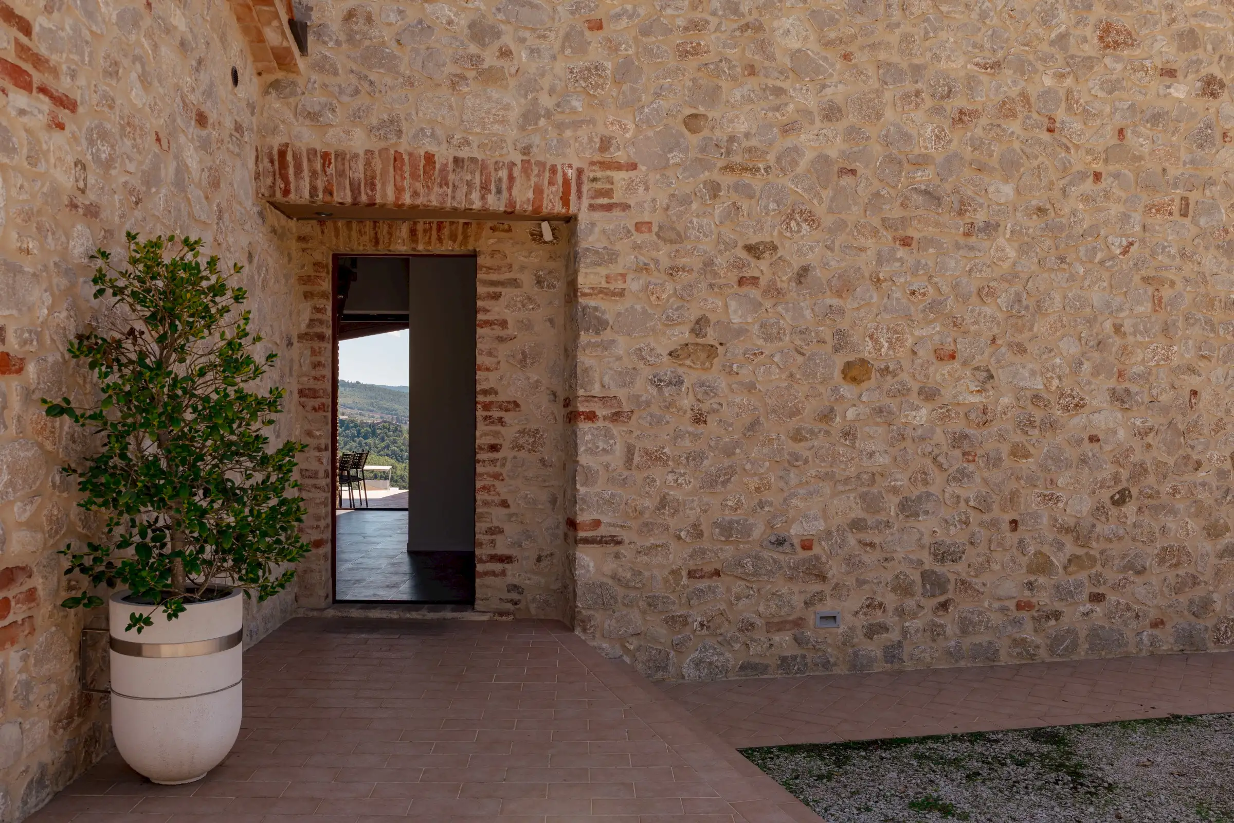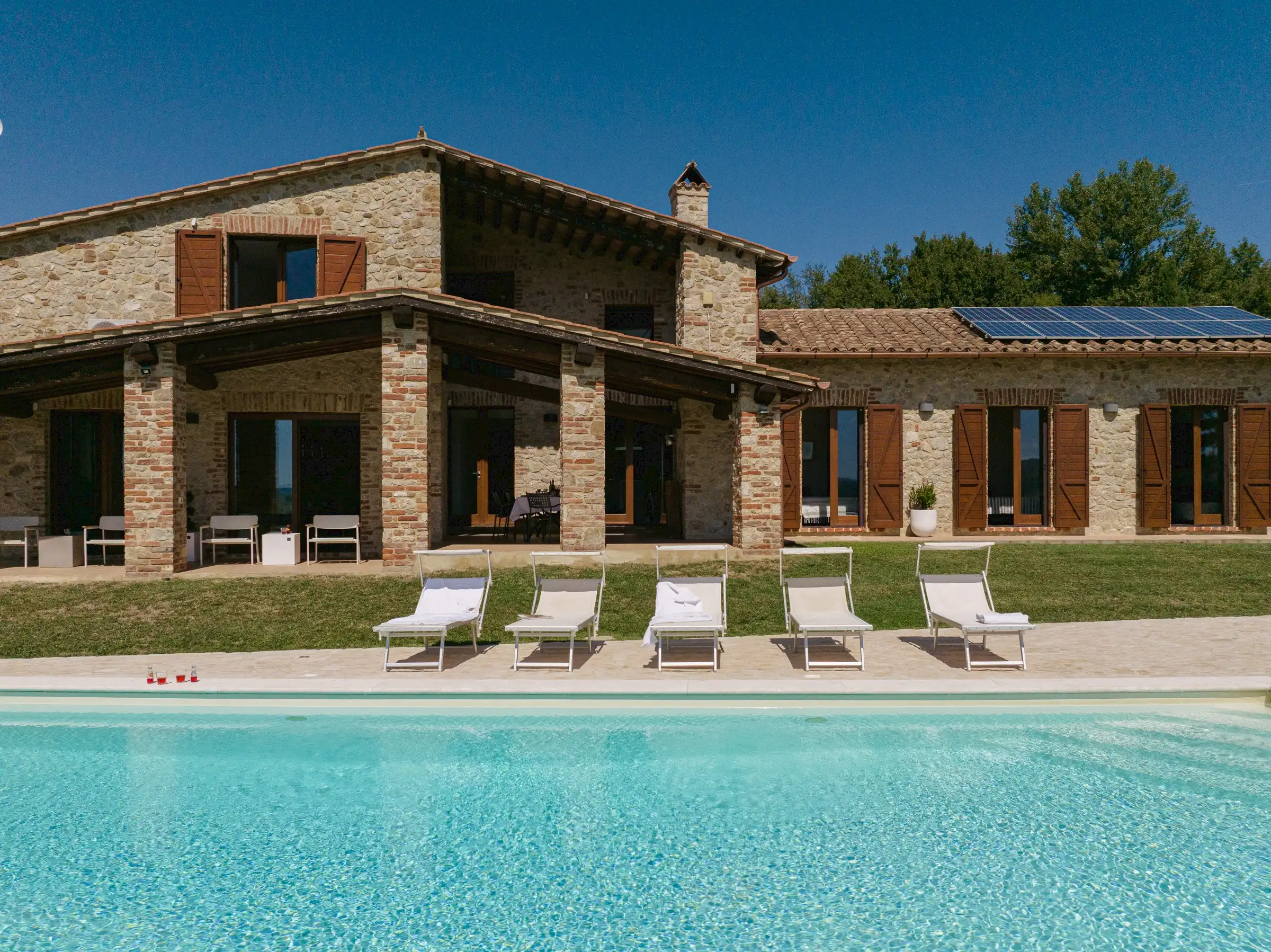 Podere Sassone is a newly built, four-bedroom, five-bathroom country villa. Designed by a well-known modern architect, it sits on the site of a 17th century farmhouse in the countryside near Marsciano.