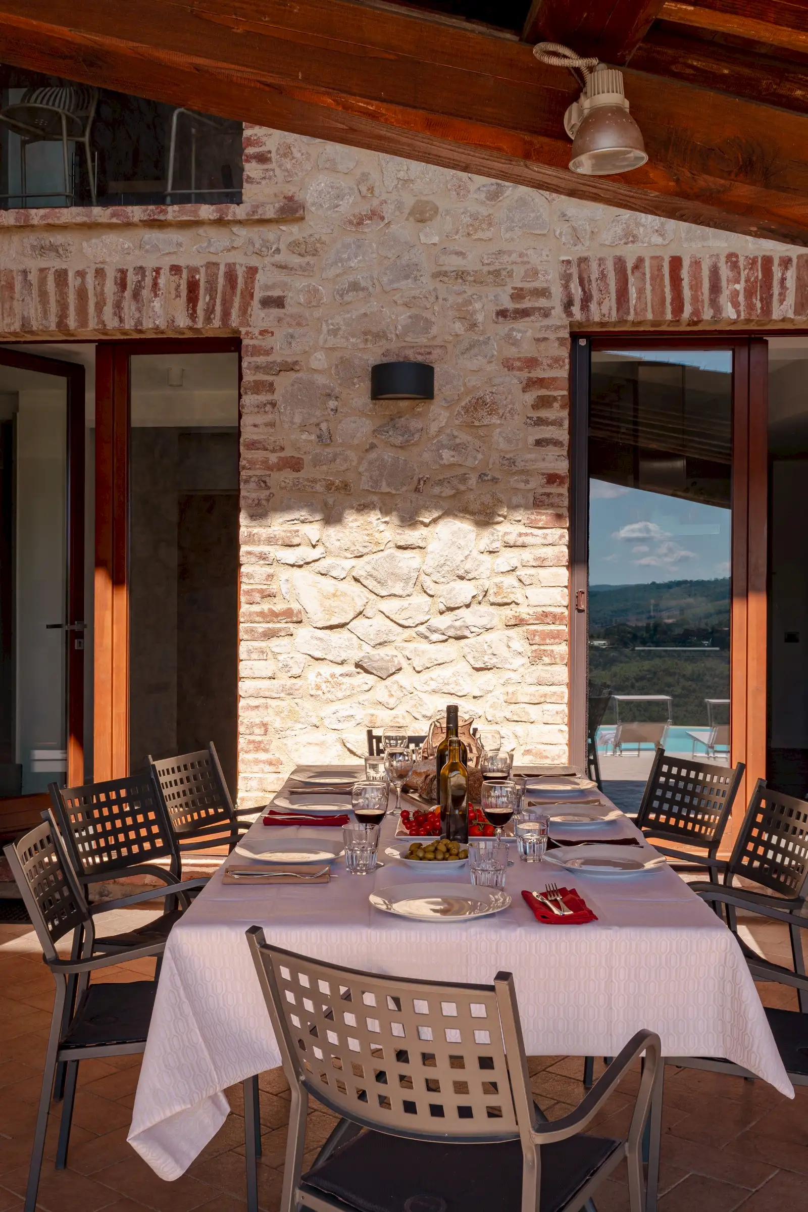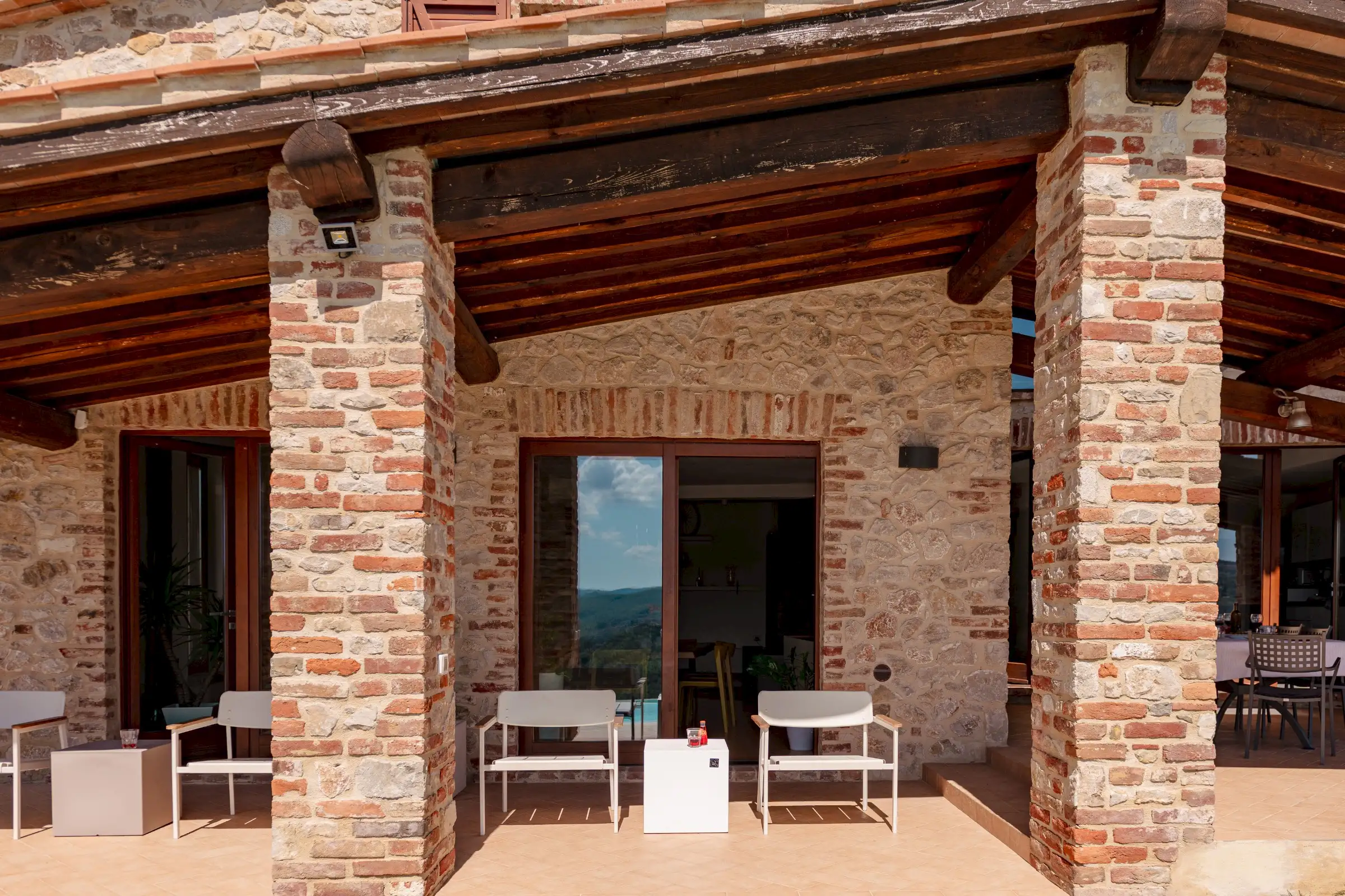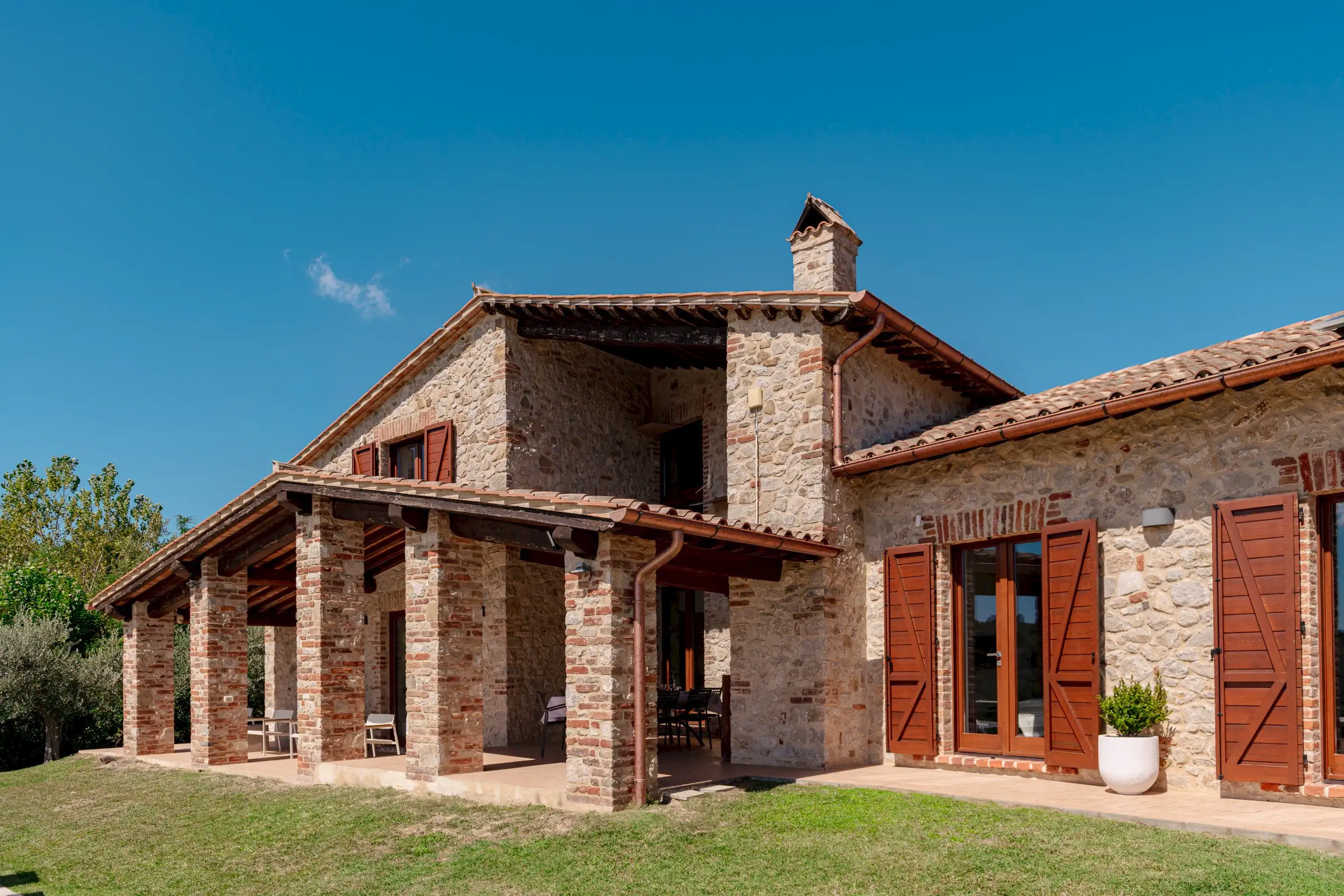 Podere Sassone is a newly built, four-bedroom, five-bathroom country villa. Designed by a well-known modern architect, it sits on the site of a 17th century farmhouse in the countryside near Marsciano.