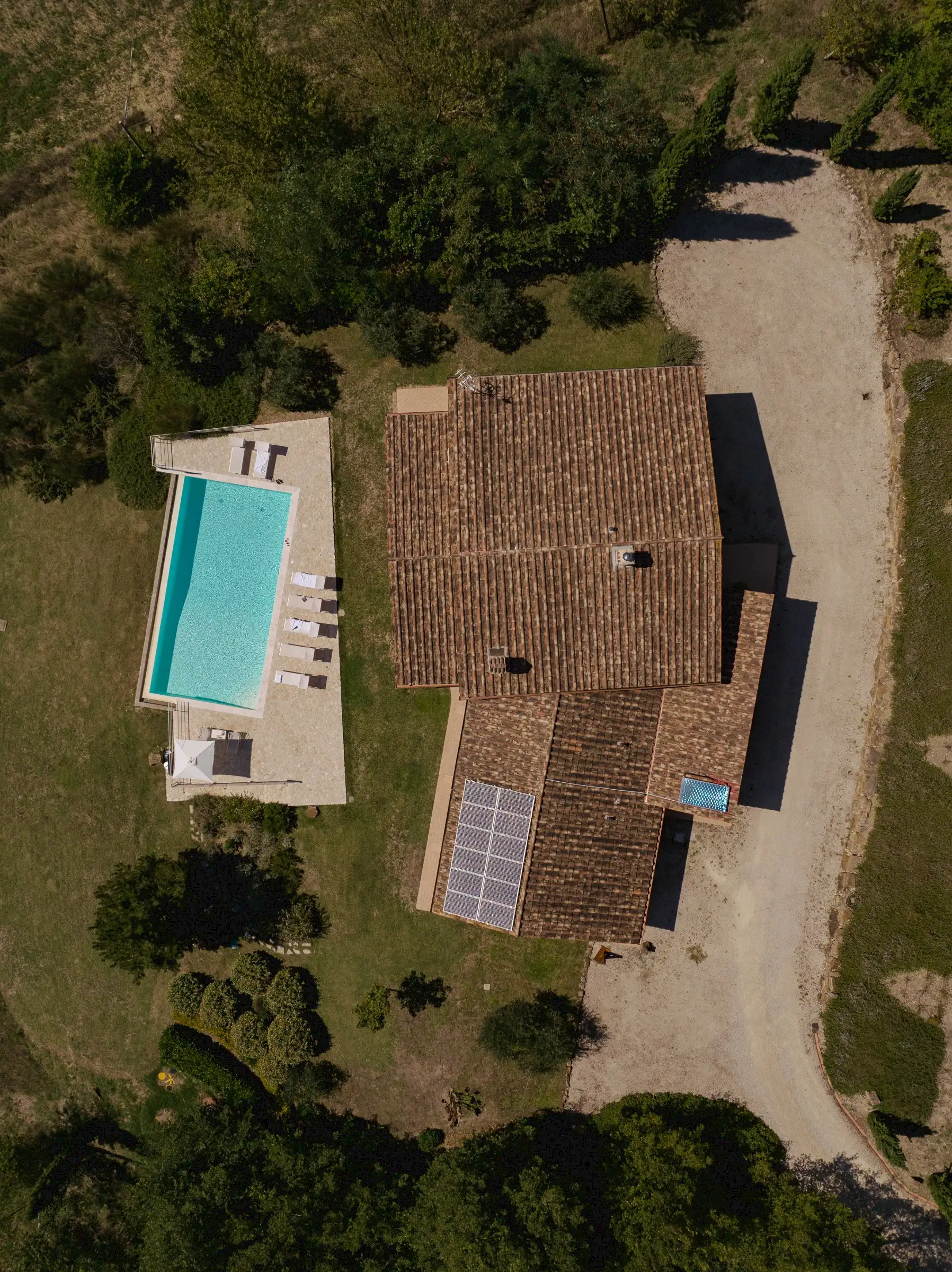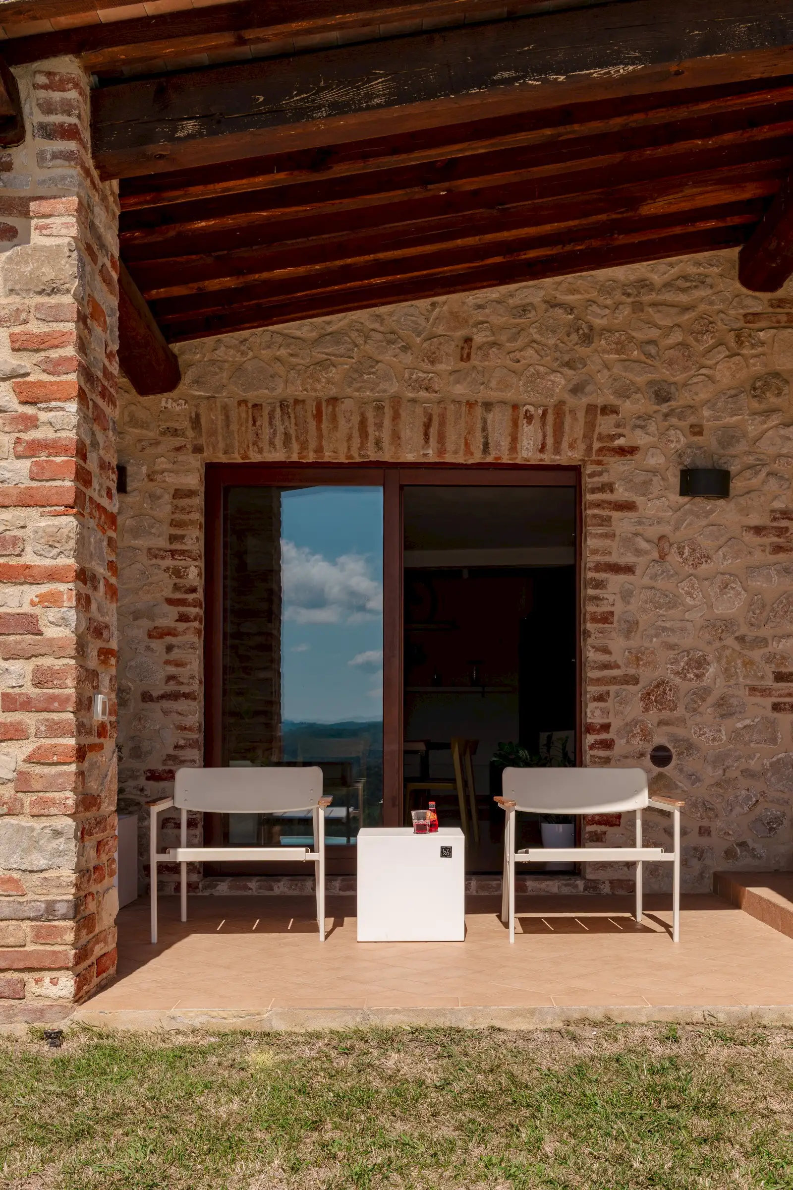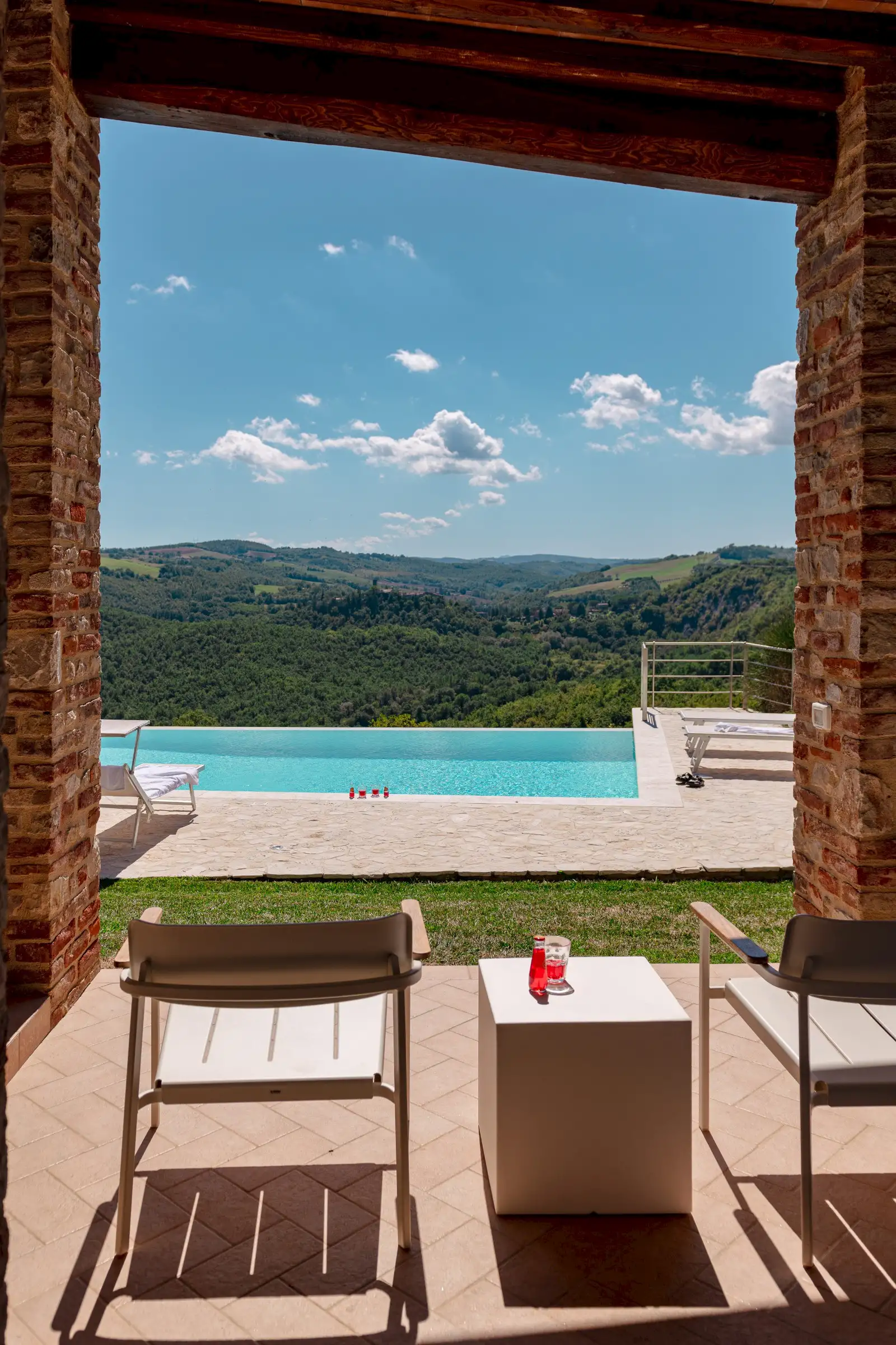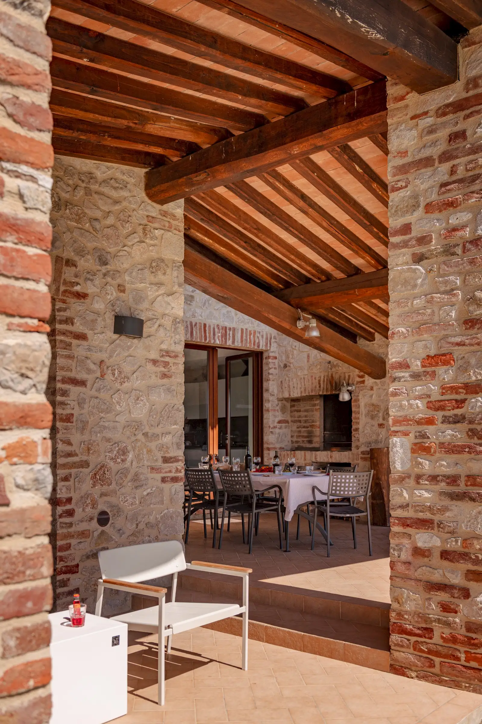 Podere Sassone is a newly built, four-bedroom, five-bathroom country villa. Designed by a well-known modern architect, it sits on the site of a 17th century farmhouse in the countryside near Marsciano.