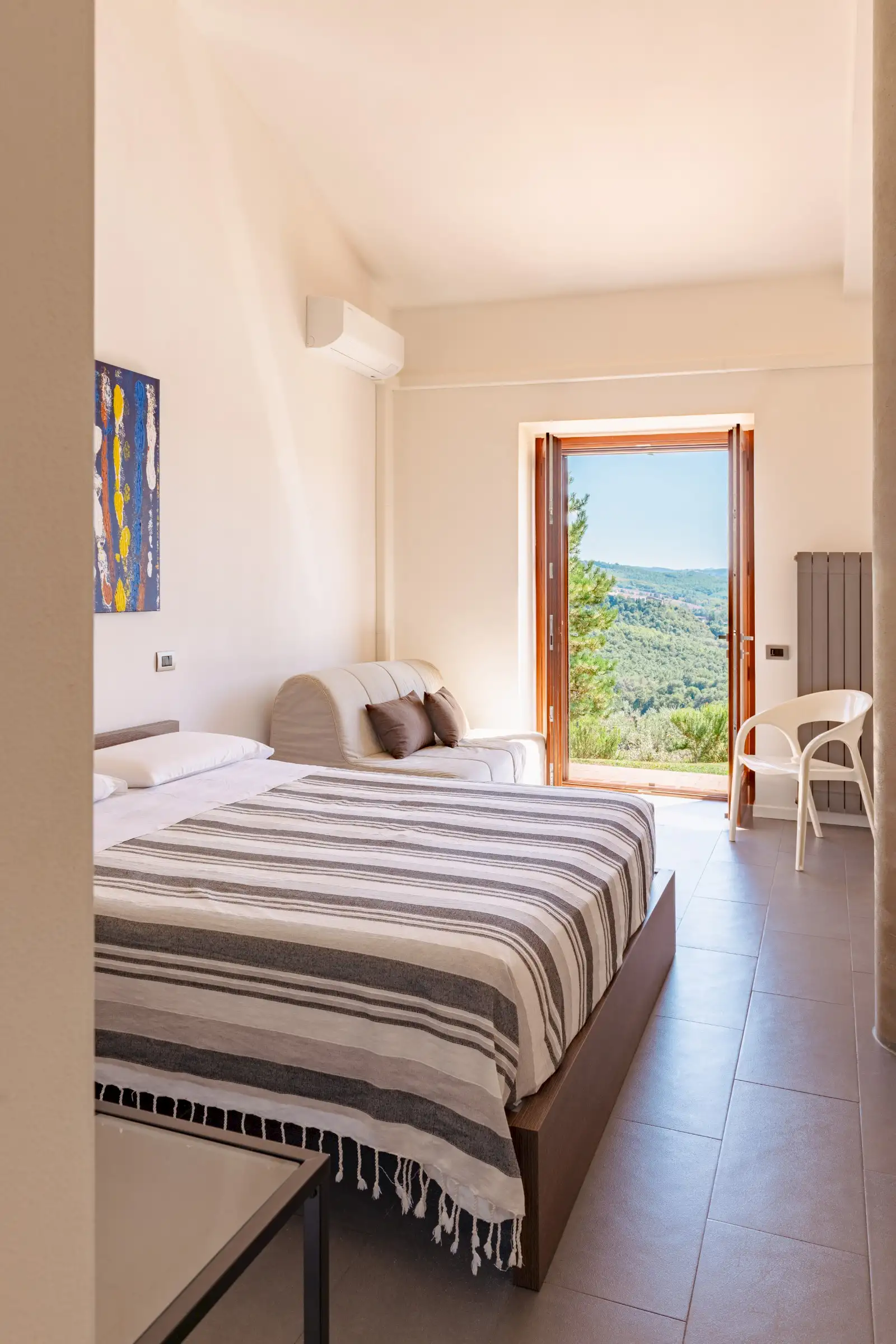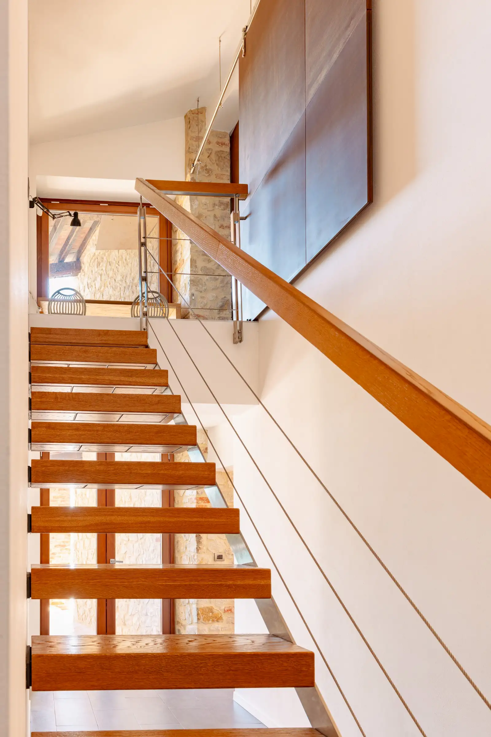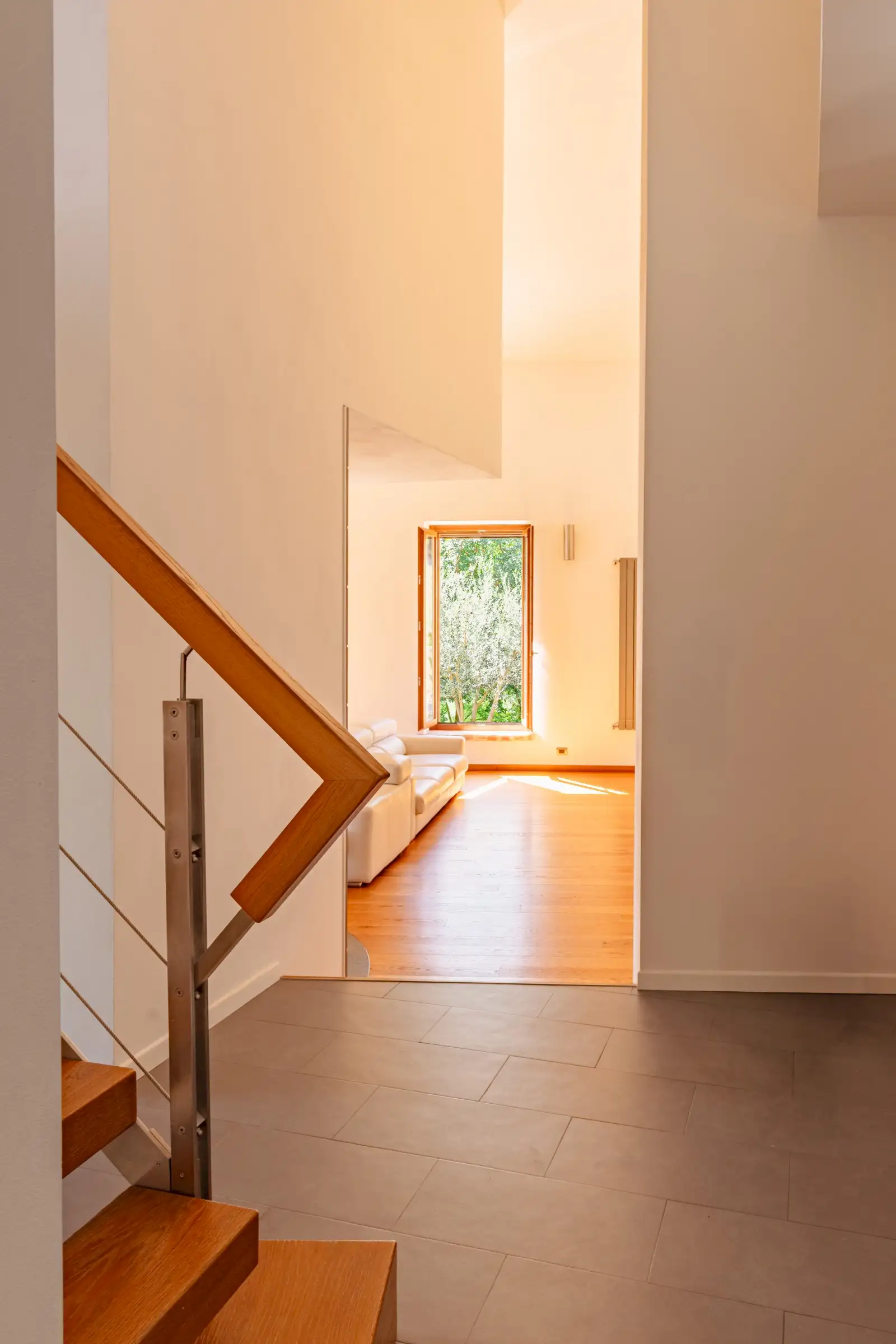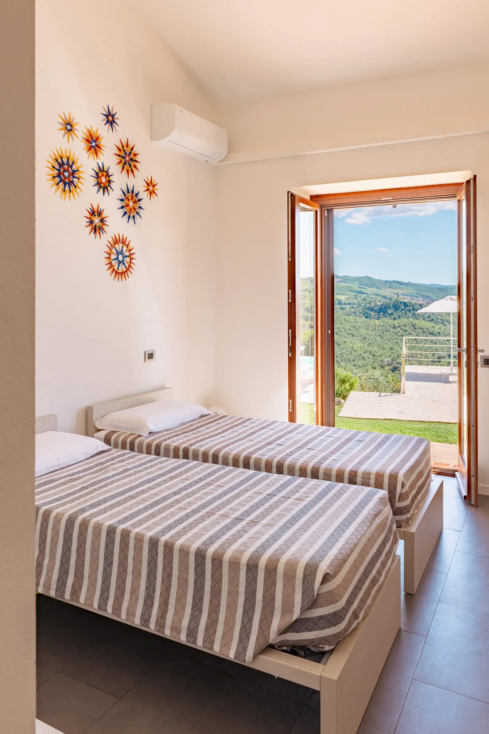 The house respects traditional Umbrian architecture while the interior, with its double-height reception room, is finished in a light, modern style. Each detail has been carefully considered and the sight lines through the property offer exceptional framed views of the surrounding landscape. Three of the bedrooms are on the ground floor with doors to the terrace, while the principal suite is on the first floor.