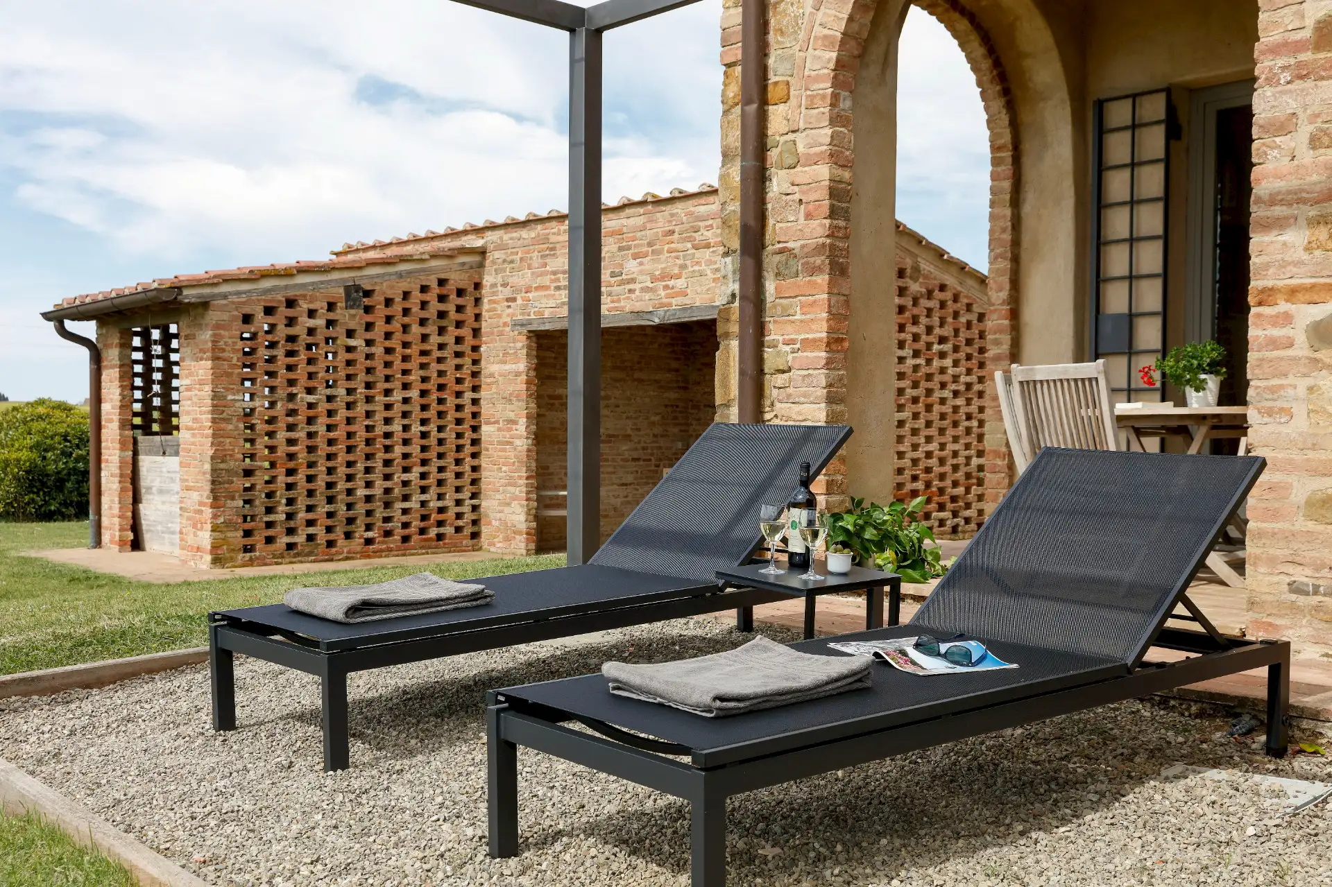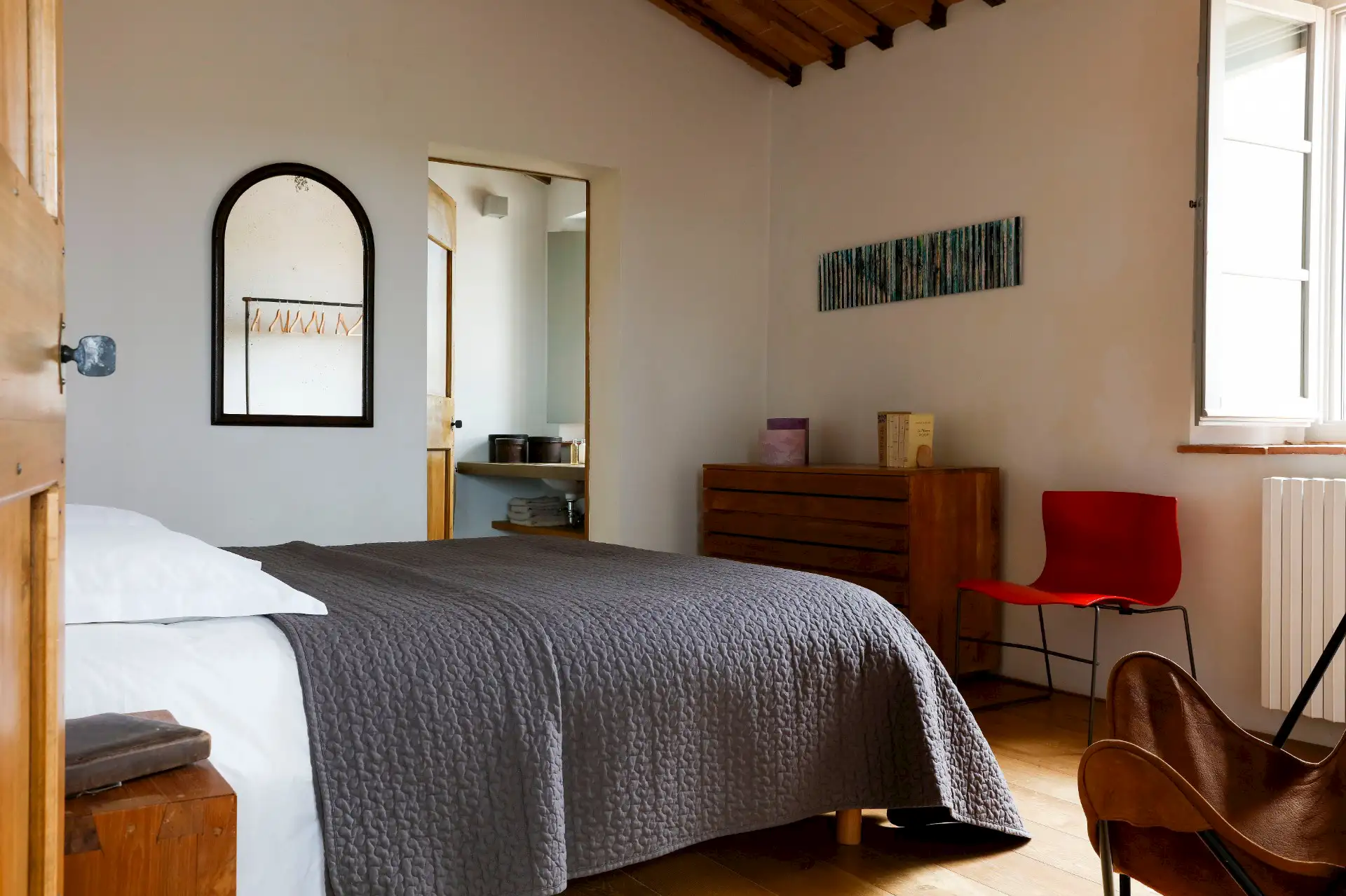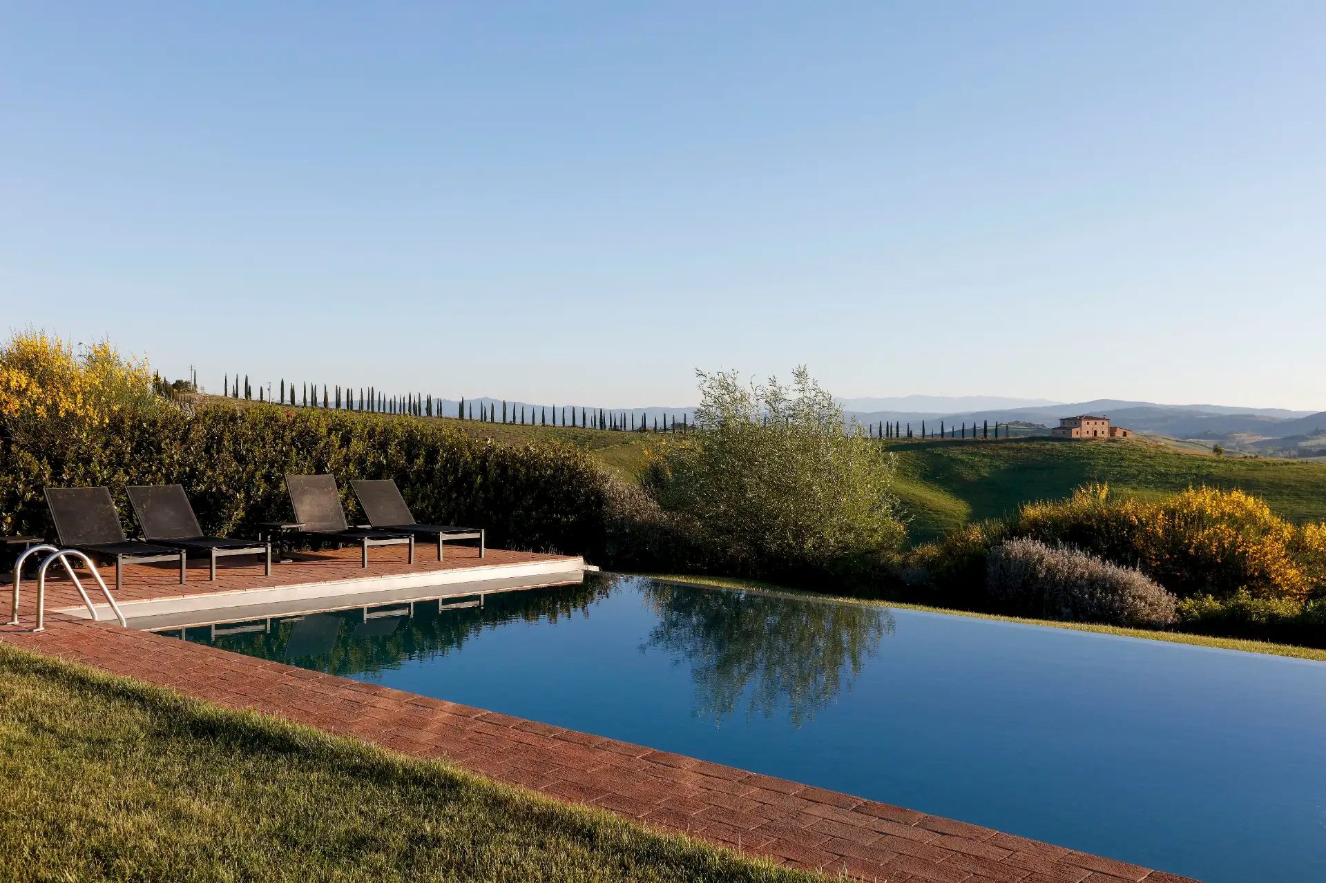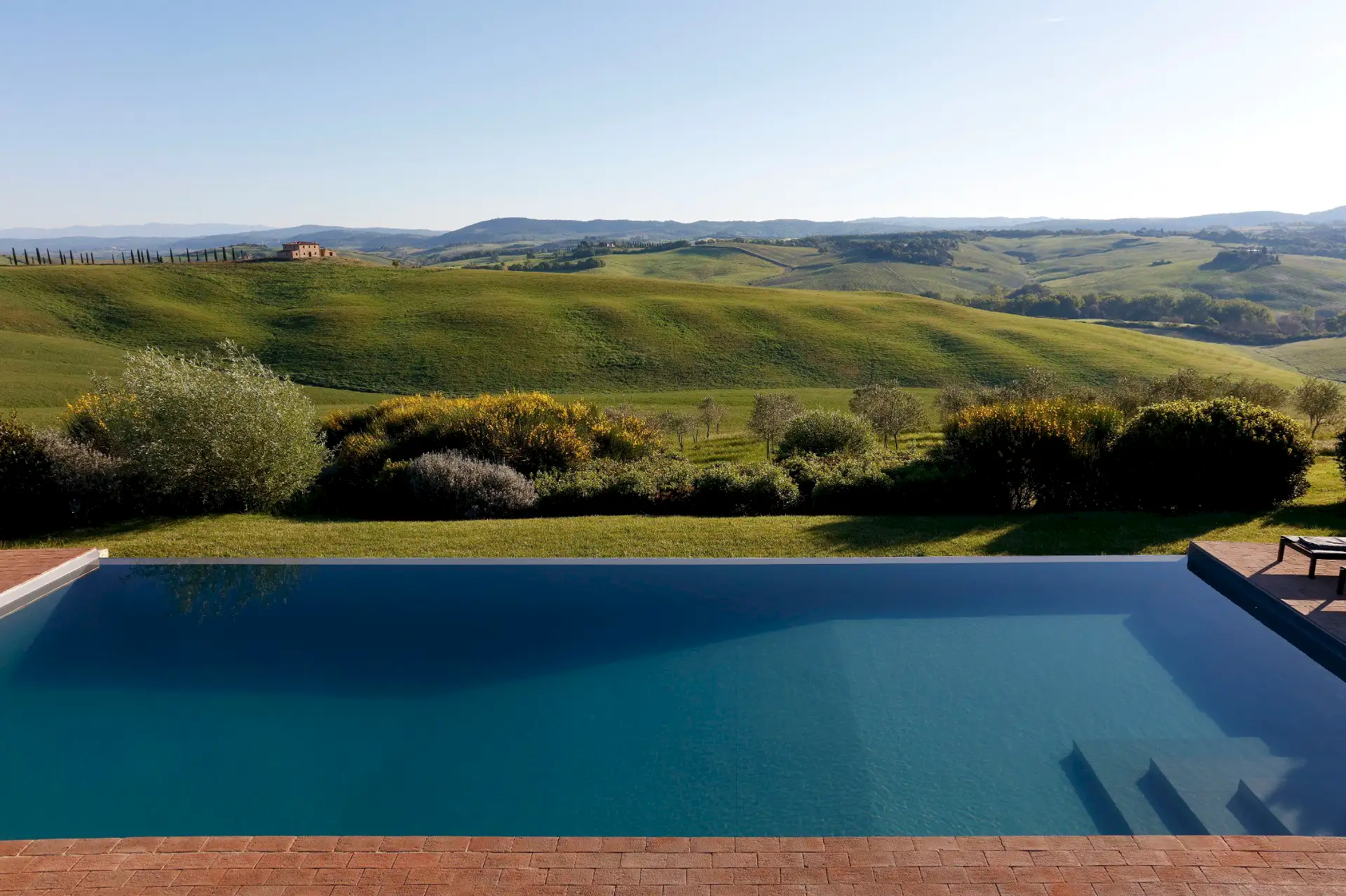 Villa D'Orcia is an old farm for 22 guests, located in the heart of Tuscany near Asciano. Dating back from the middle of the 19th century, it was abandoned in the fifties and remained a ruin until 2002. The farm was reconstructed in the original rural Tuscan style found in the ”Crete Senesi” area, and offers the opportunity to spend dream holidays. The luxurious interior of minimalist architecture perfectly matches the simplicity of the old Tuscan farm style.