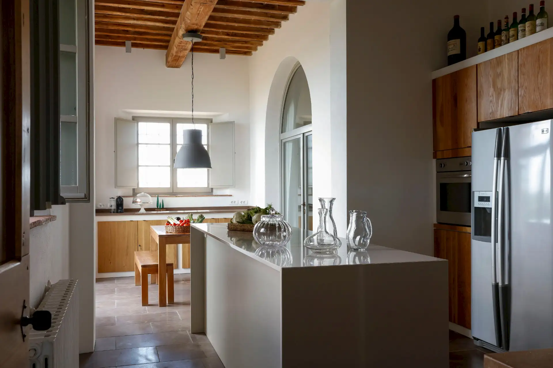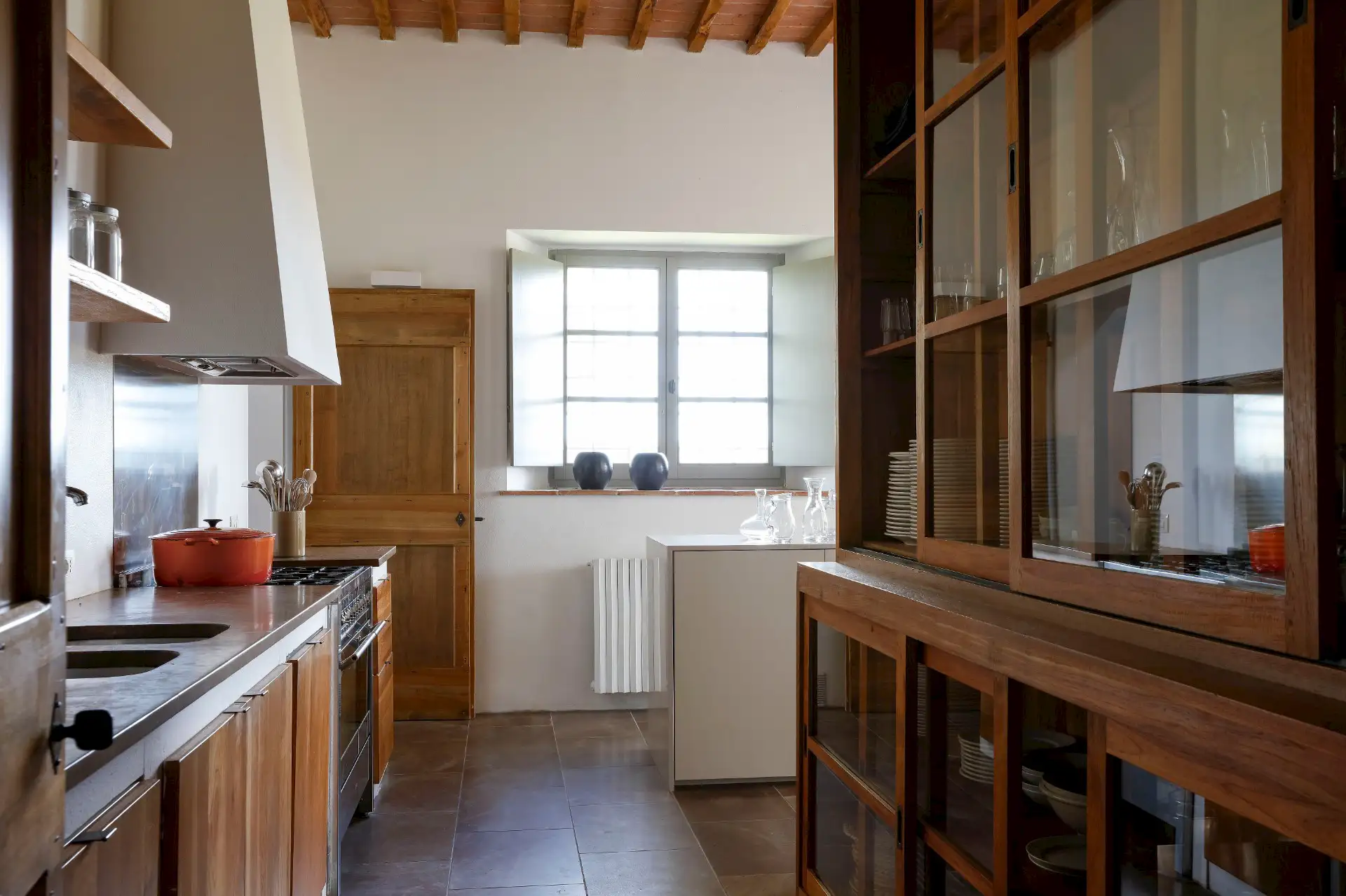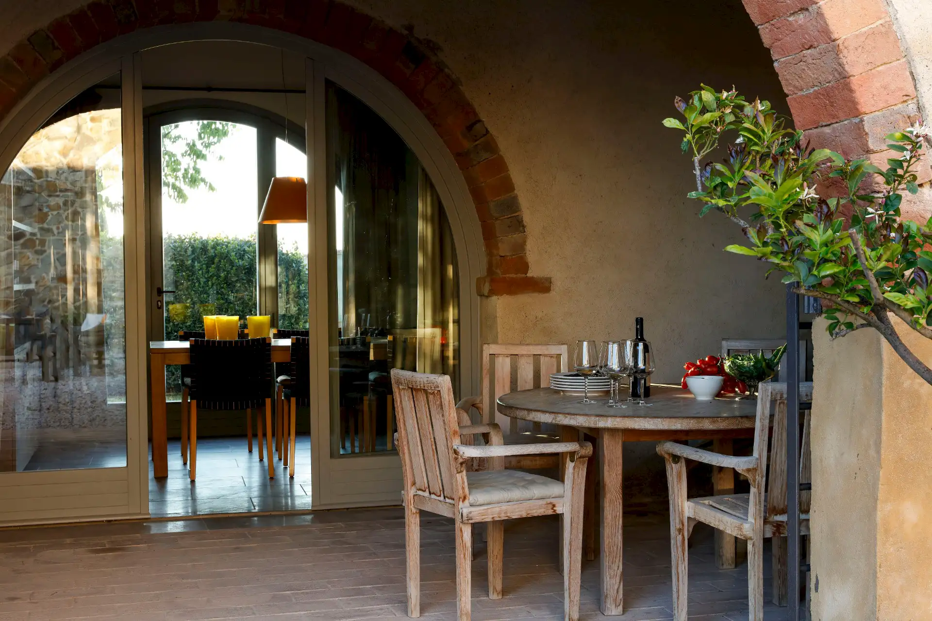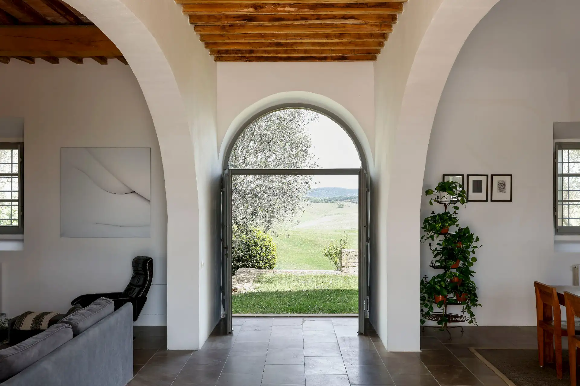 Villa D'Orcia is an old farm for 22 guests, located in the heart of Tuscany near Asciano. Dating back from the middle of the 19th century, it was abandoned in the fifties and remained a ruin until 2002. The farm was reconstructed in the original rural Tuscan style found in the ”Crete Senesi” area, and offers the opportunity to spend dream holidays. The luxurious interior of minimalist architecture perfectly matches the simplicity of the old Tuscan farm style.