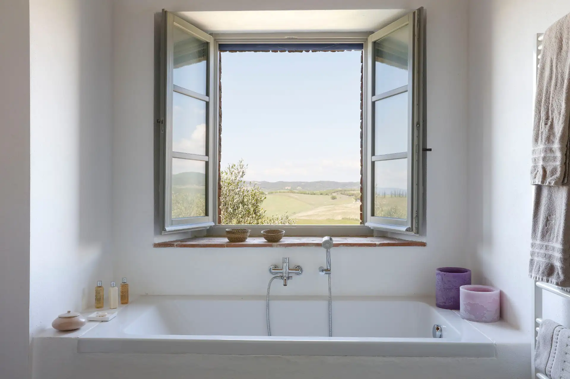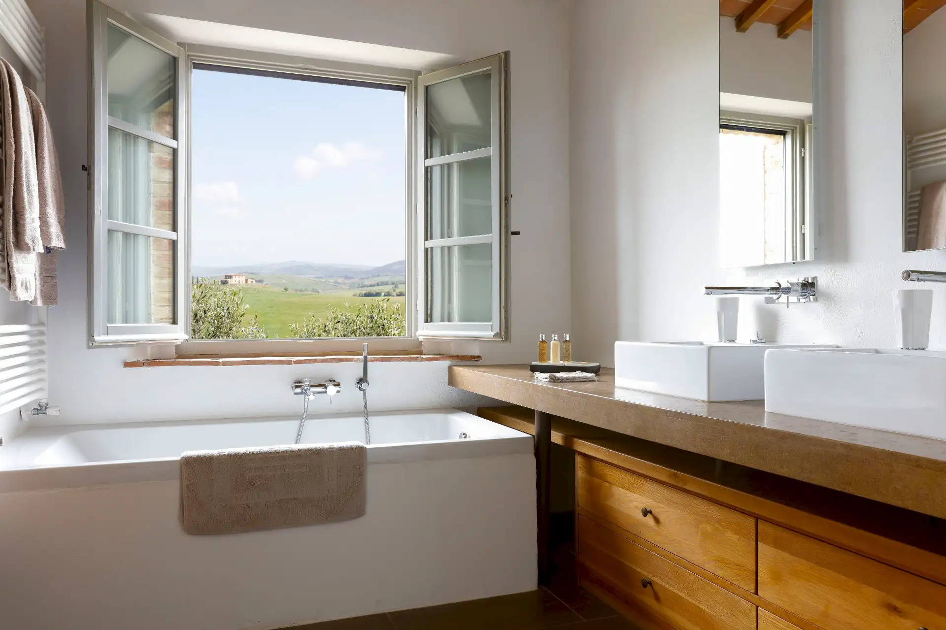 Villa D'Orcia is devided in 4 units for optimal privacy. All rooms have double or twin beds, on demand, and ensuite bathrooms. Linen and towels are included.