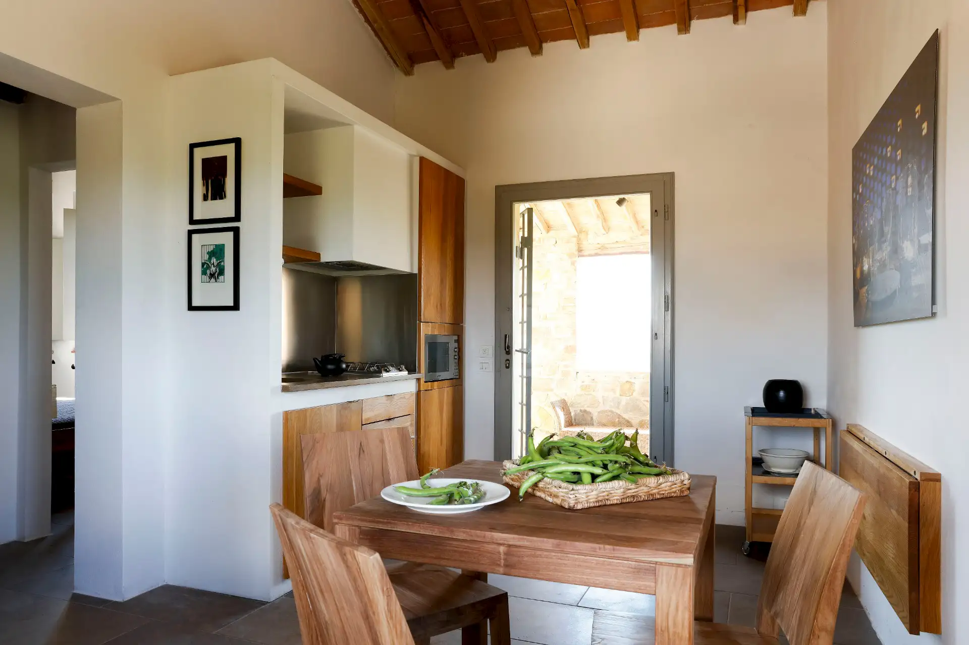 The guesthouse is located outside Asciano, close to the beautiful abbey of Monte Oliveto Maggiore and the charming hill top village of Chiusure, from which you can admire a breathtaking view of the territory. Another nearby village is San Giovanni d’Asso with its ‘Museo del Tartufo’ and the ‘Bosco della Ragnaia’ sculpture garden.