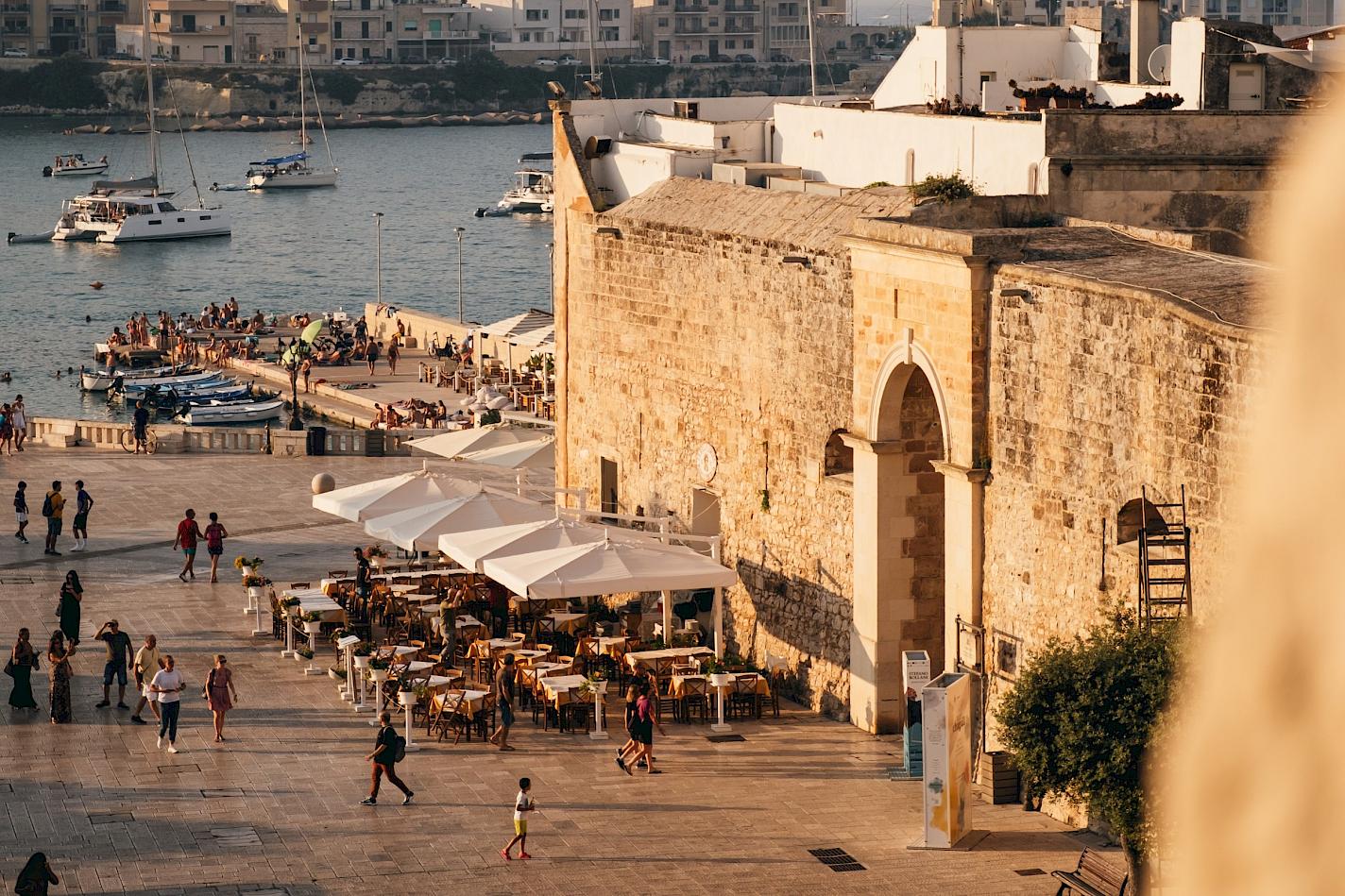 This charming town with its brightly painted houses is also called Porta d’Oriente. Enclosed within the walls that overlook the southern shore of its natural harbour, it is Italy’s easternmost town and the first port of call from Greece and Albania. That also means it is the first town in Italy to greet sunrise on New Year’s Day and the celebrations are suitably lively. If you can tear yourself away from the sparkling clarity of the sea, the cathedral and the Aragonese castle deserve a visit.