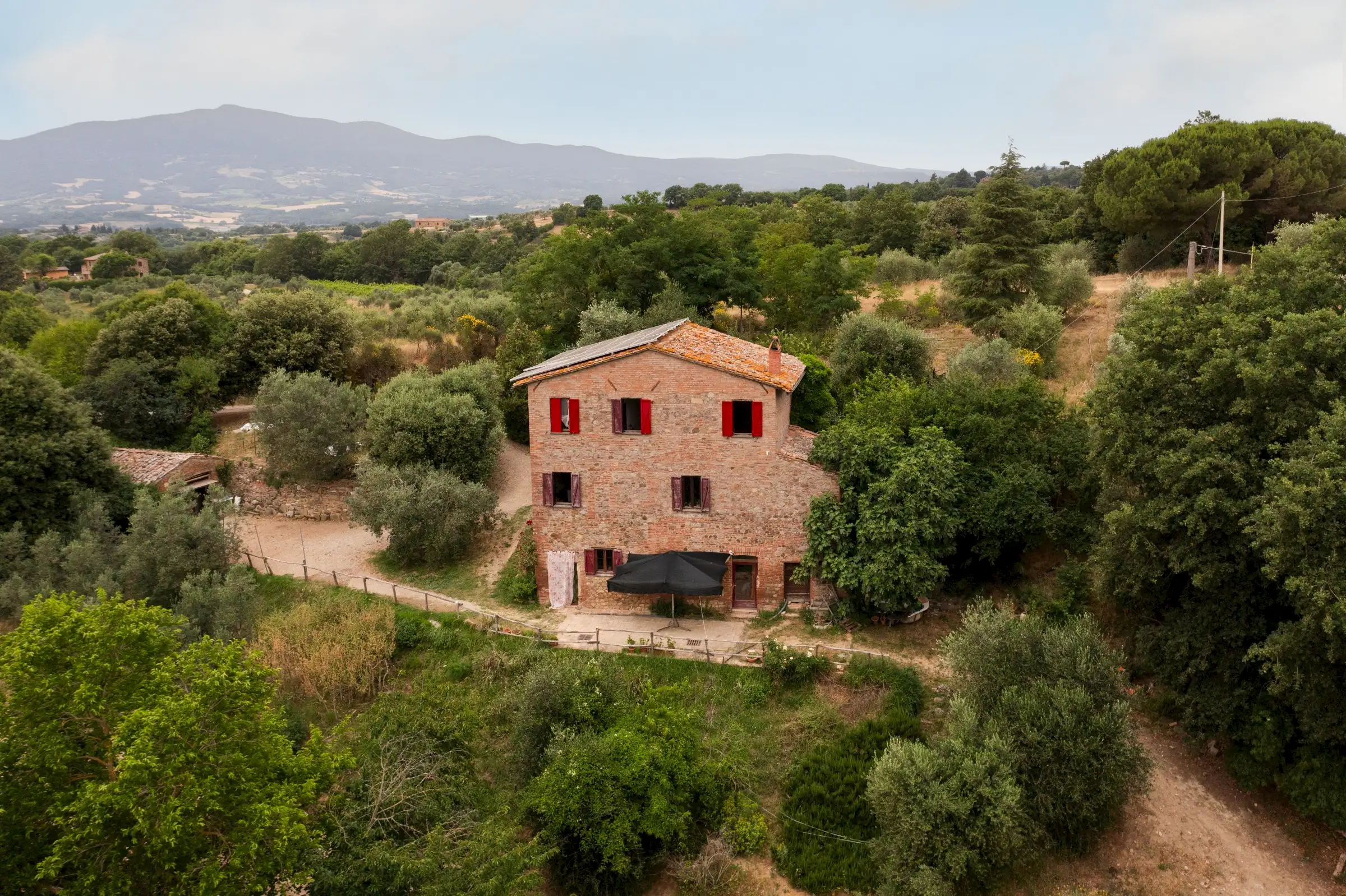 Acquaiola is a five-bedroom, three-storey farmhouse in an exquisite rural setting just moments from the medieval hilltop town of Città della Pieve.