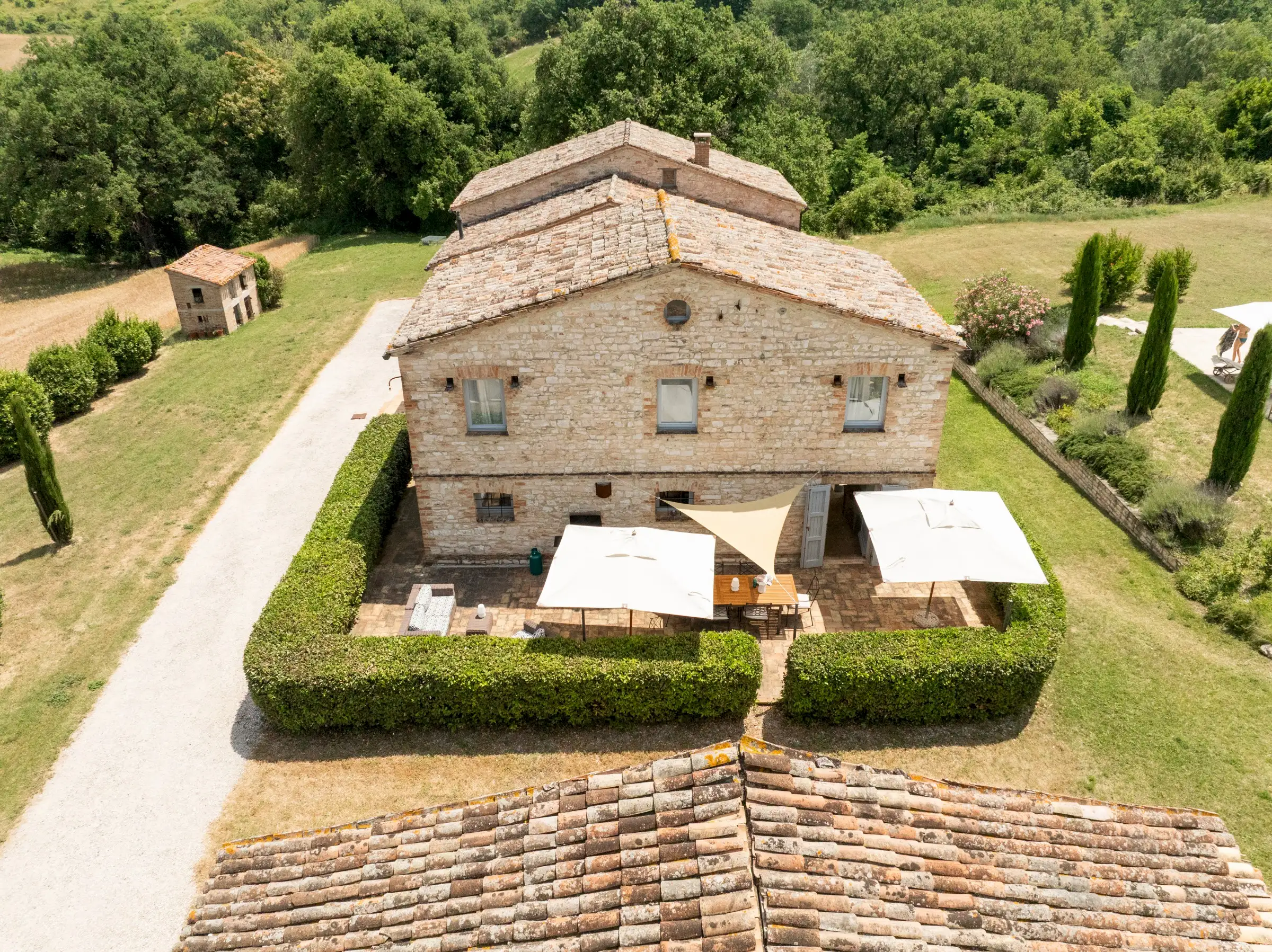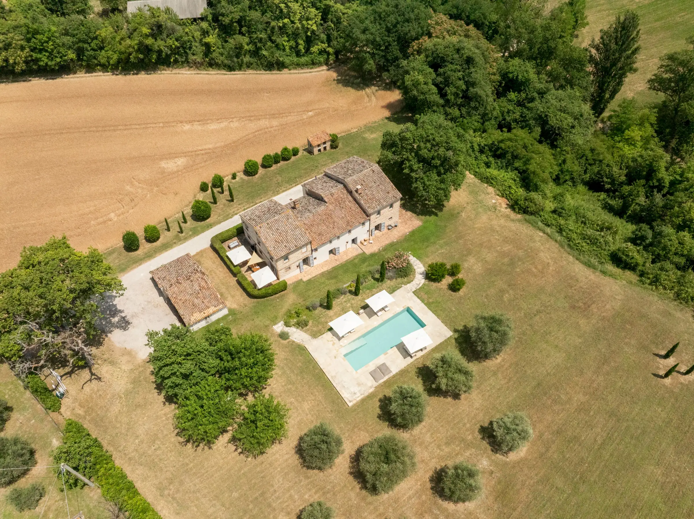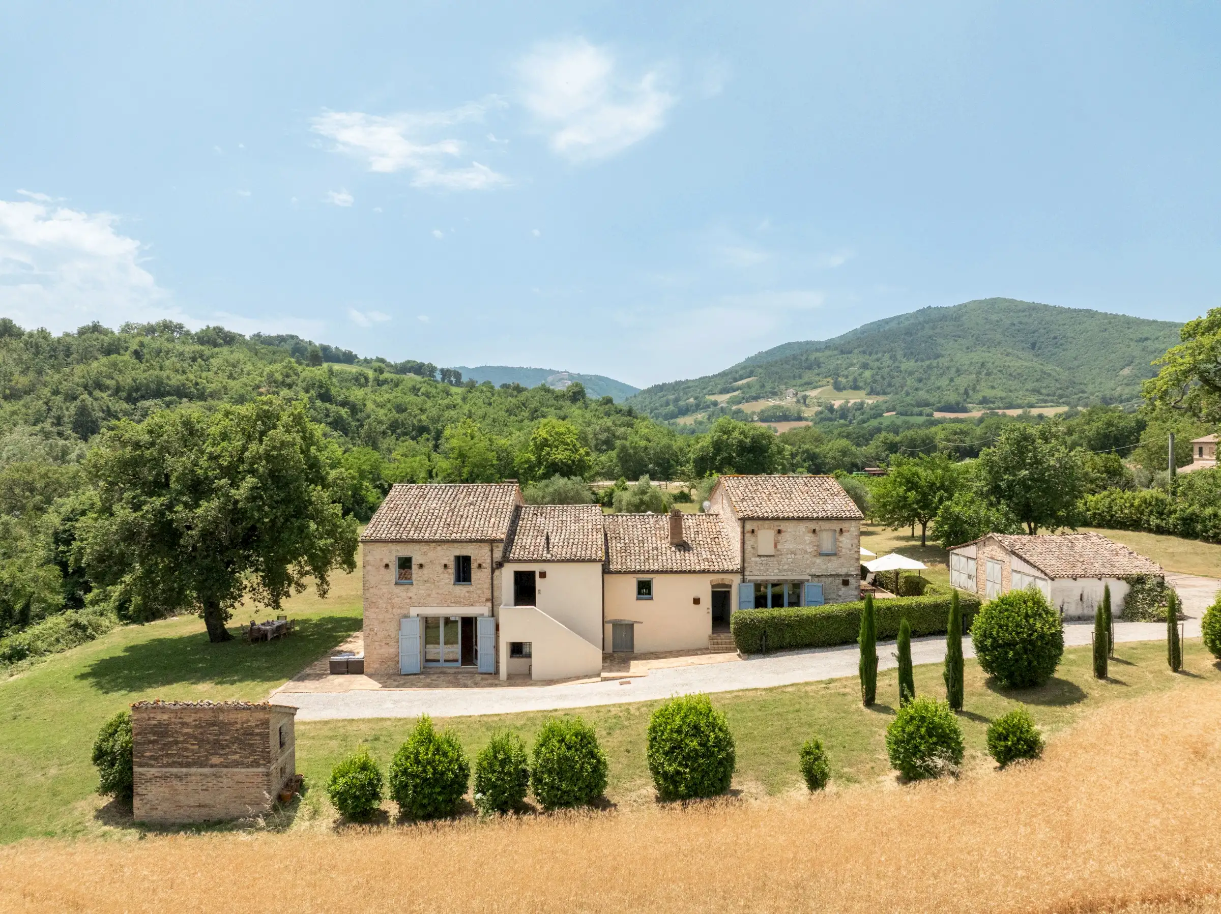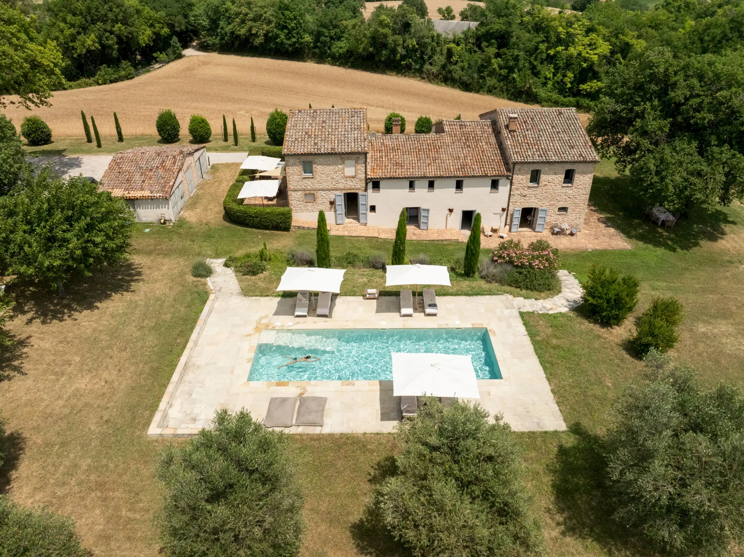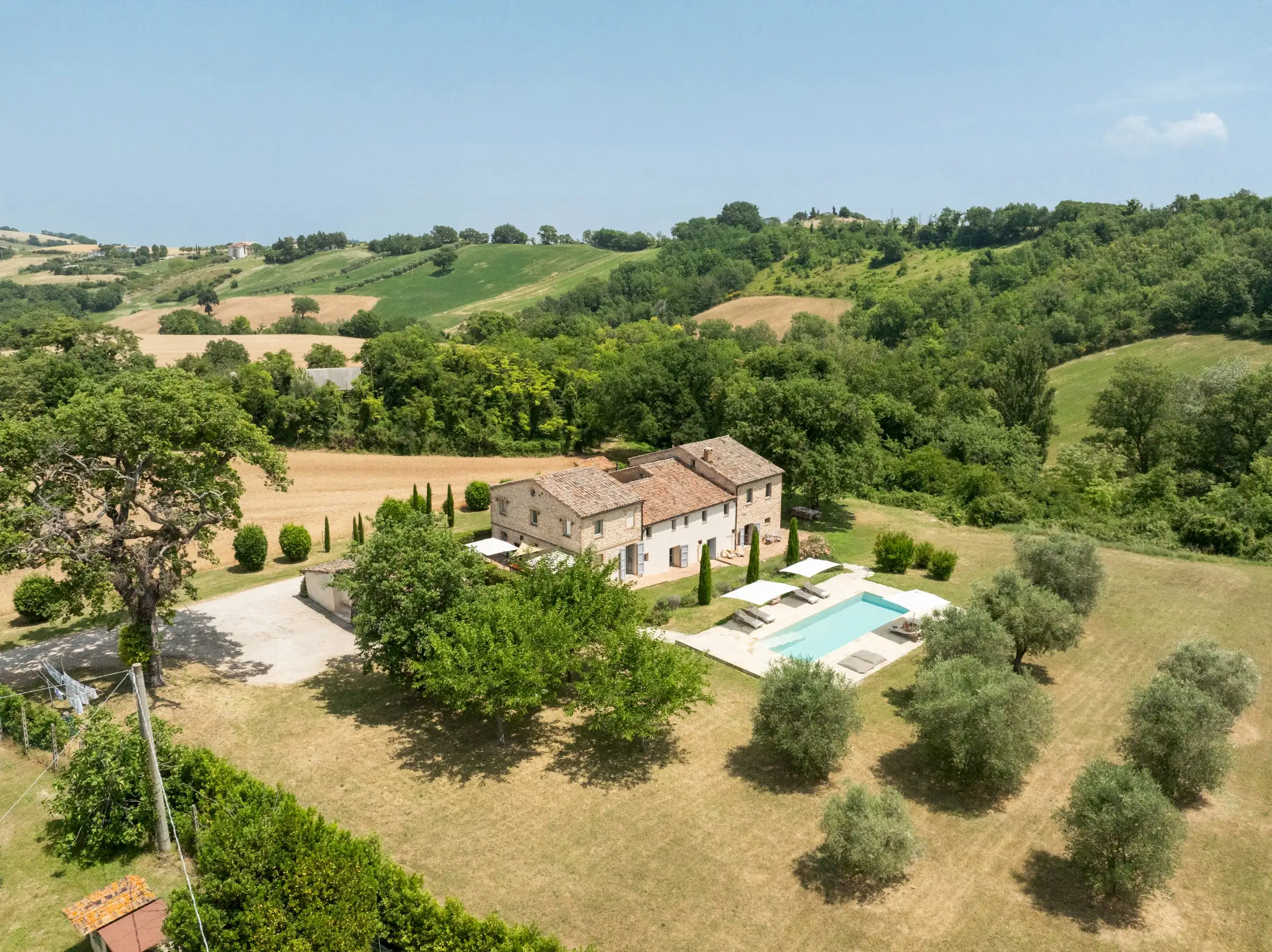 Casa Conelle is in a rural location, just a few kms from Arcevia, where there are basic services. A paved road leads to a gated, private gravel driveway to the house. There are neighbouring properties, but privacy is guaranteed.