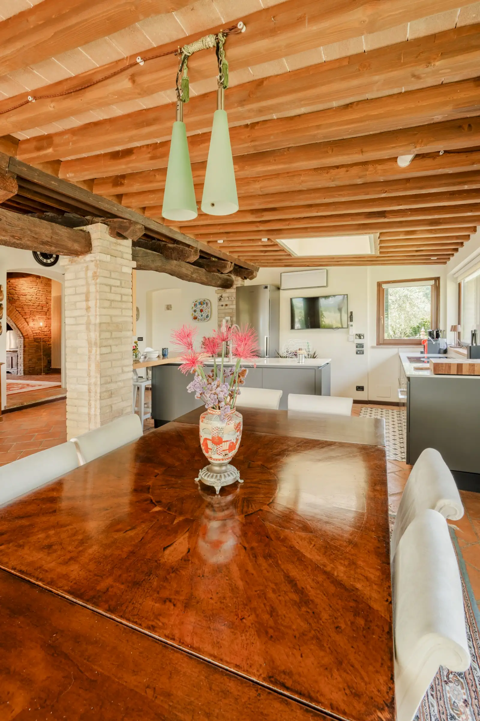 The estate consists of two farmhouses set in private gardens, each with its own separate outdoor pool. The villa was probably rebuilt at the end of the 1700s on an earlier Benedictine settlement dating back to the 1200s. Both properties have been sensitively renovated in 2016 and 2020, with the latest renovation in 2024, retaining original features such as cotto floors, exposed stone walls and chestnut roof beams. There is a sense of elegant yet cosy grandeur thanks to the large archways that link the ground-floor rooms, the graceful flow of space and the new picture windows that enhance the building by bringing the fabulous views up close.