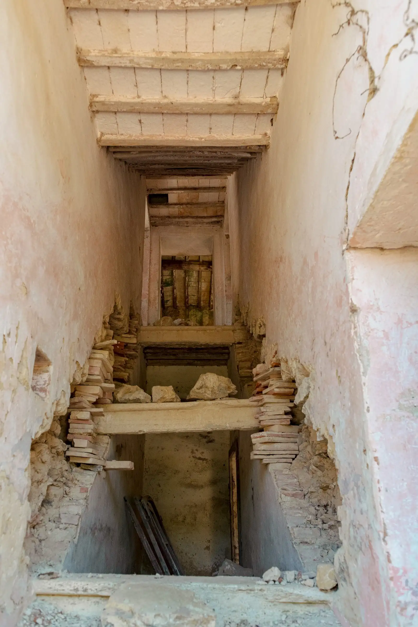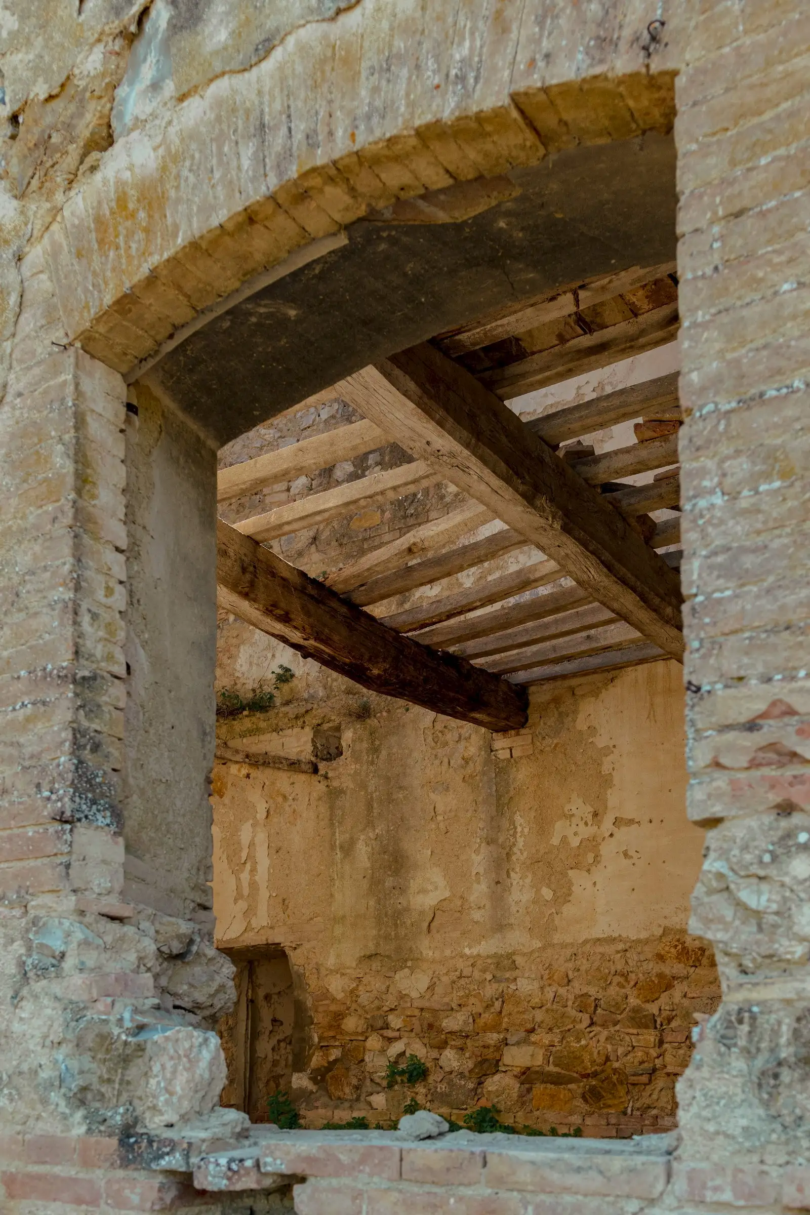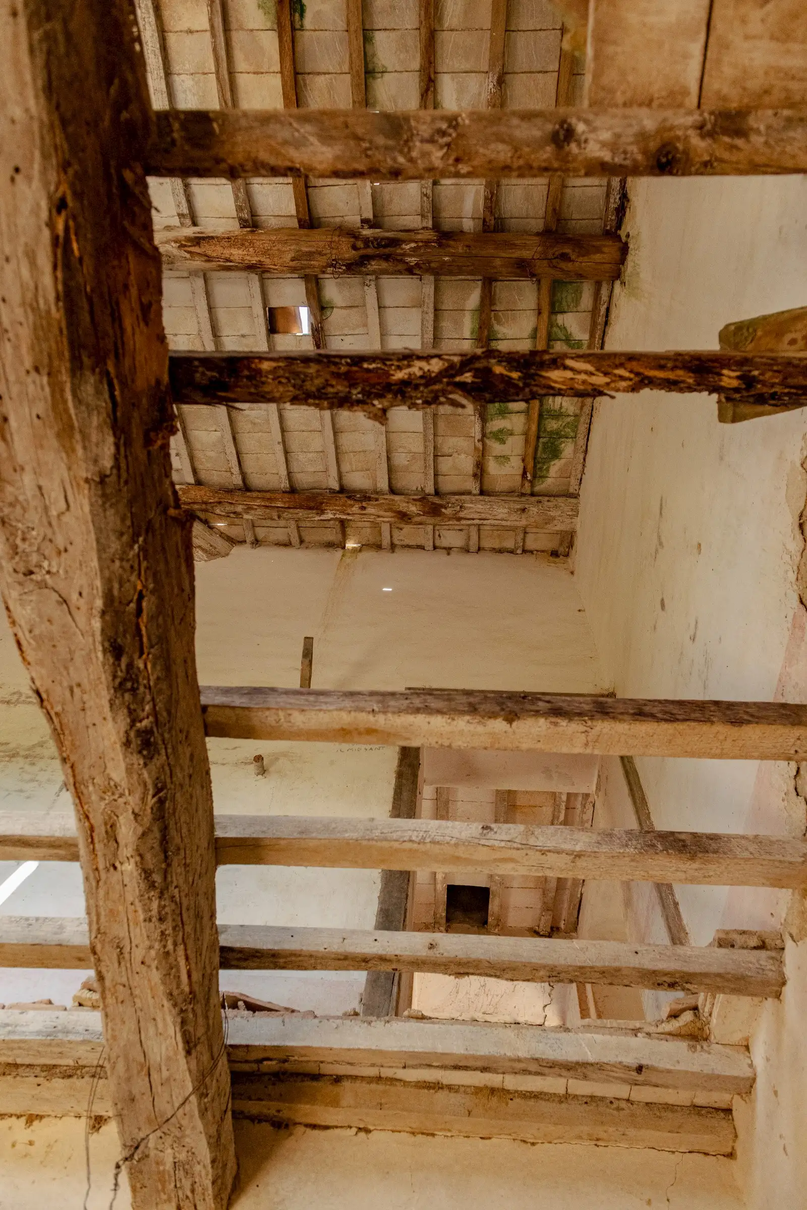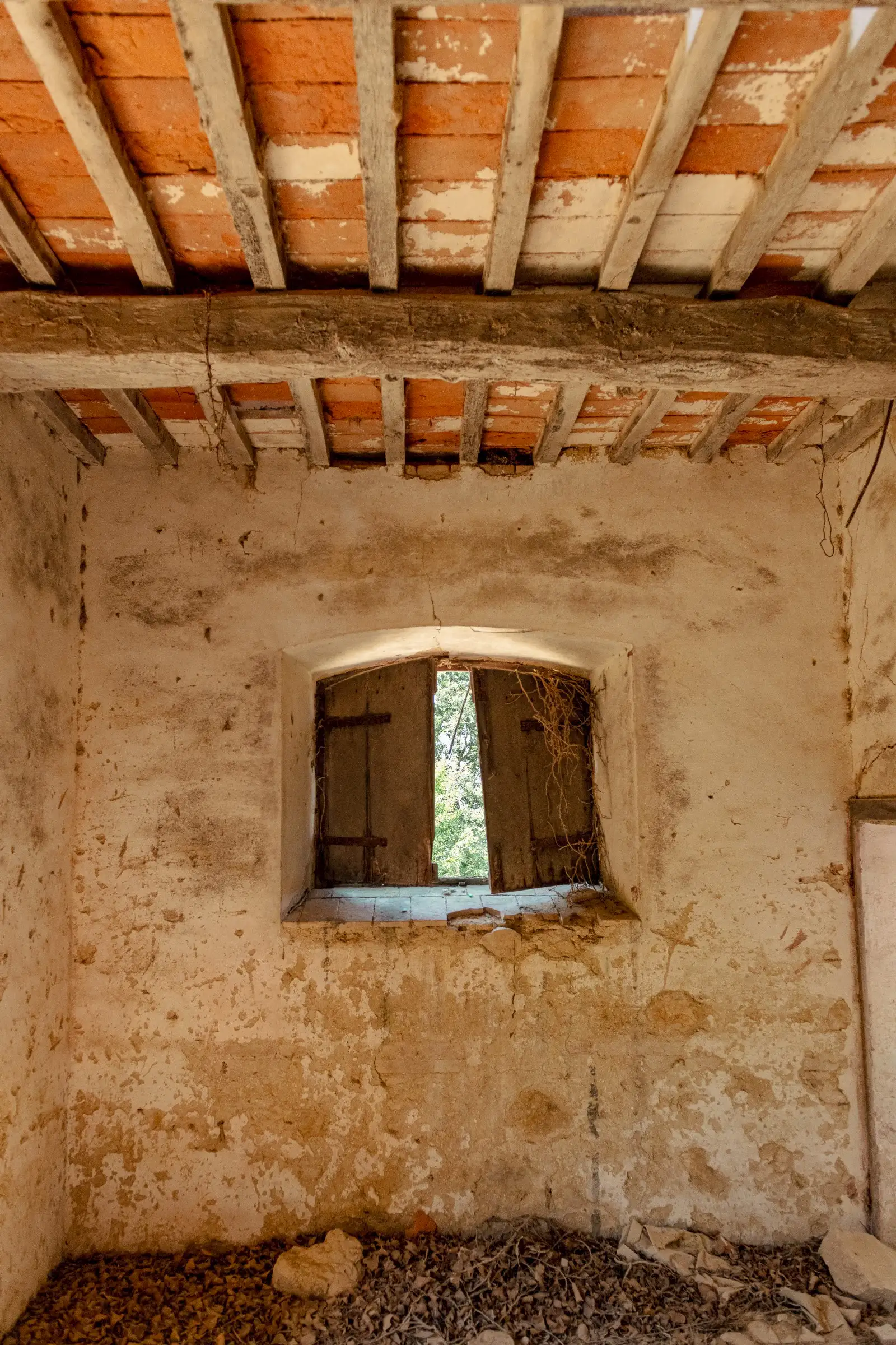 The property has the characteristics of ancient farmhouses, with exposed wooden beams, and needs to be completely renovated.