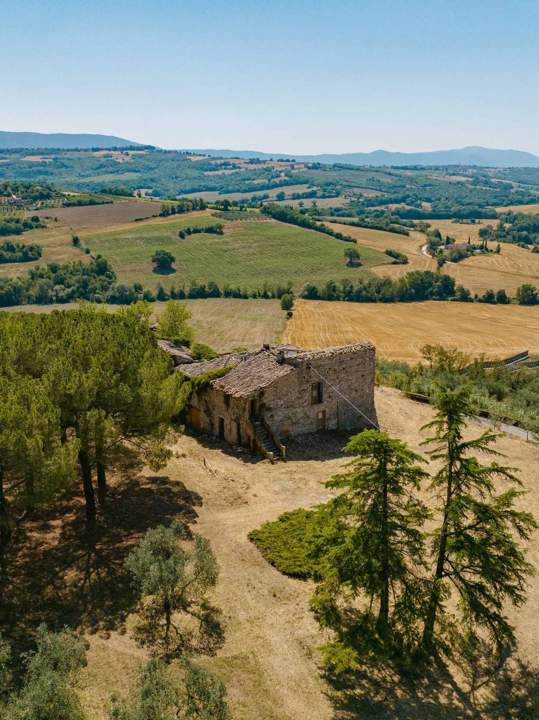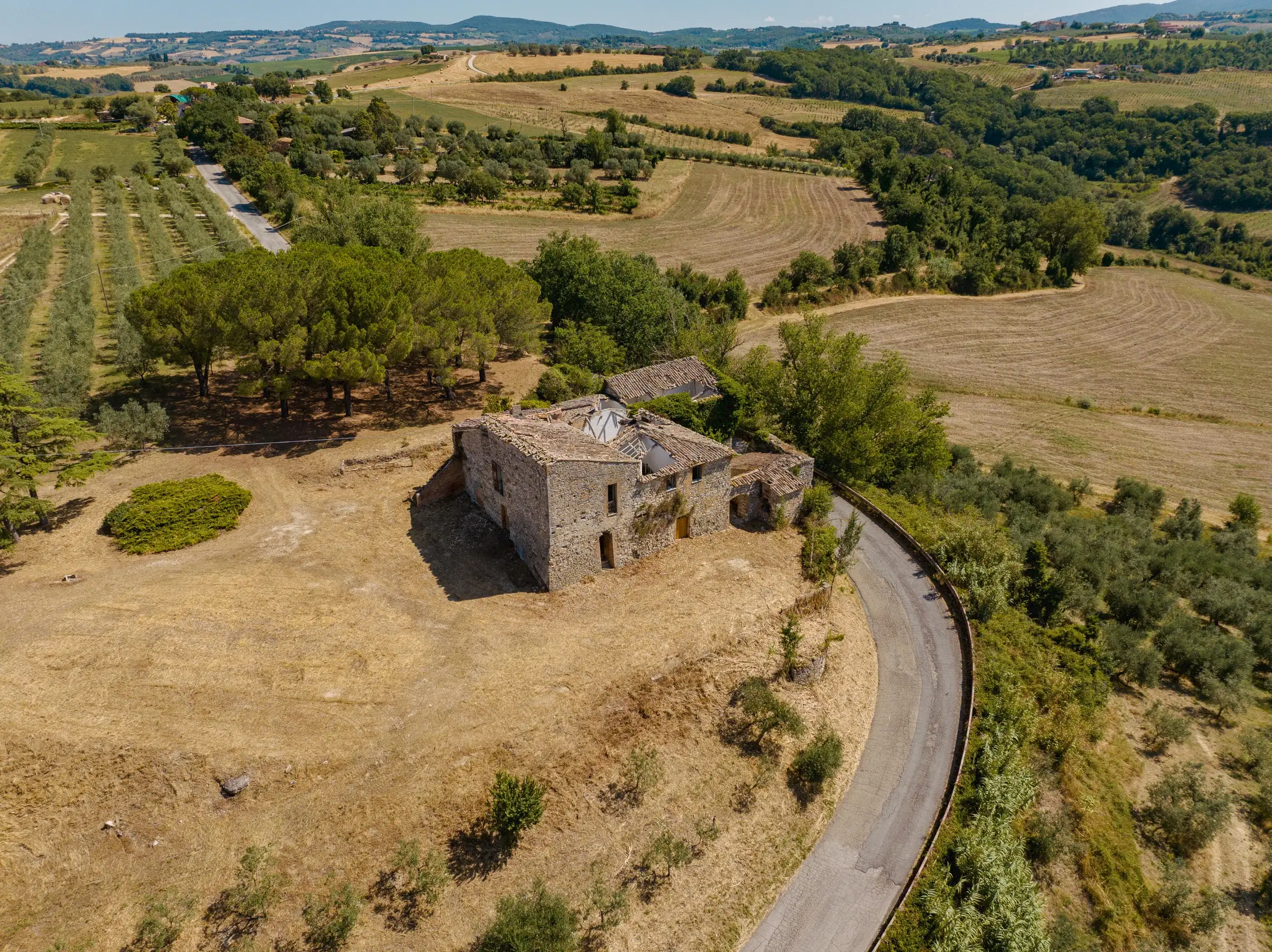 Part of the ruin dates back to Roman time, that with the passing of time, has been extended to a rural farmhouse, and that now can be restored into a unique property with easy acccess, enjoying great views on Todi, inlcuding a private olive grove