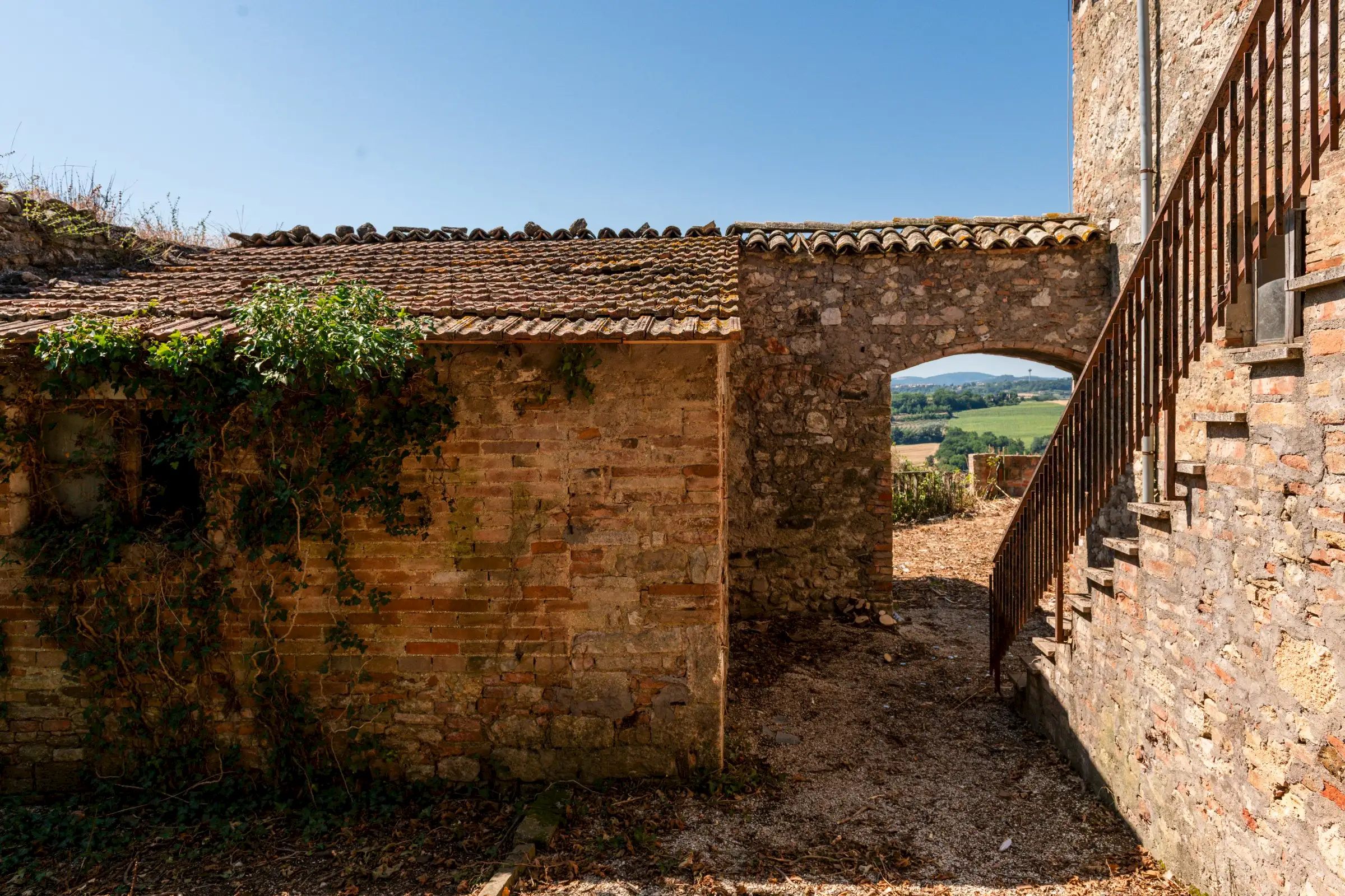 The property has the characteristics of a small village, with an internal courtyard. Some of the walls date back to Roman times, showcasing the evolution of the structure over the years. It was likely once used as a farmhouse.