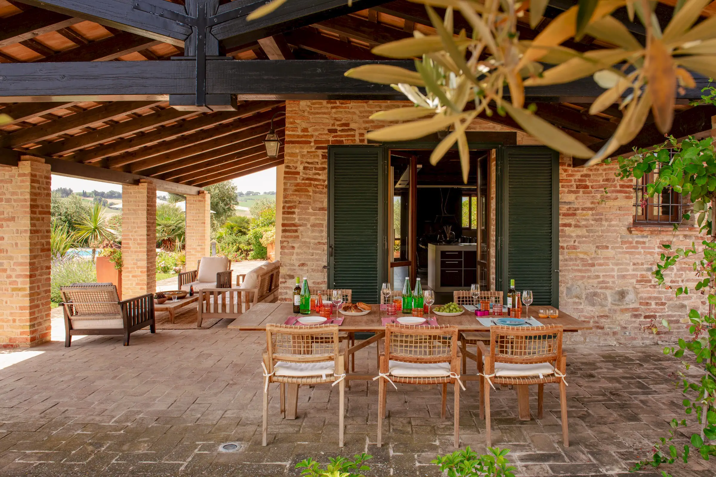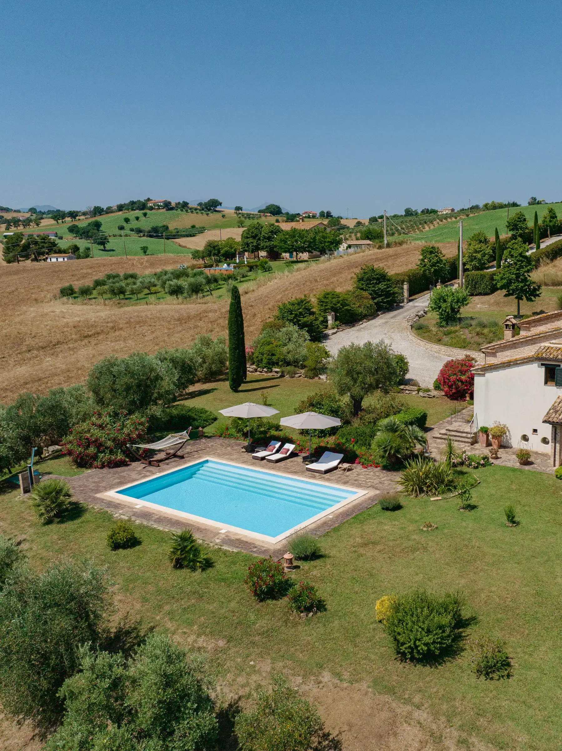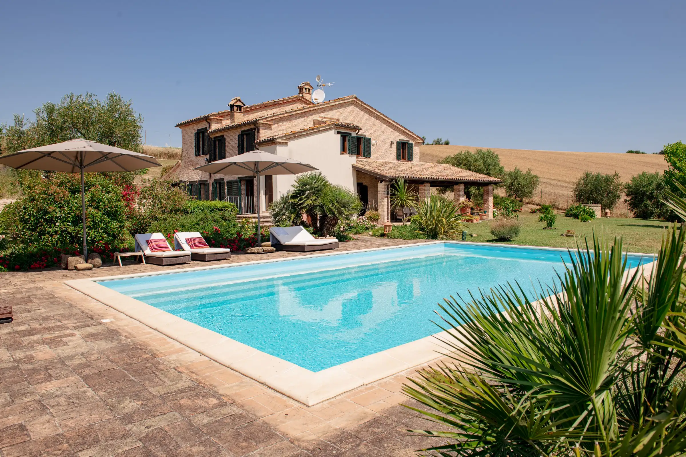 This traditional Marche farmhouse with original features has been beautifully renovated and maintained and, with its large garden and pool, is a delightful family villa.