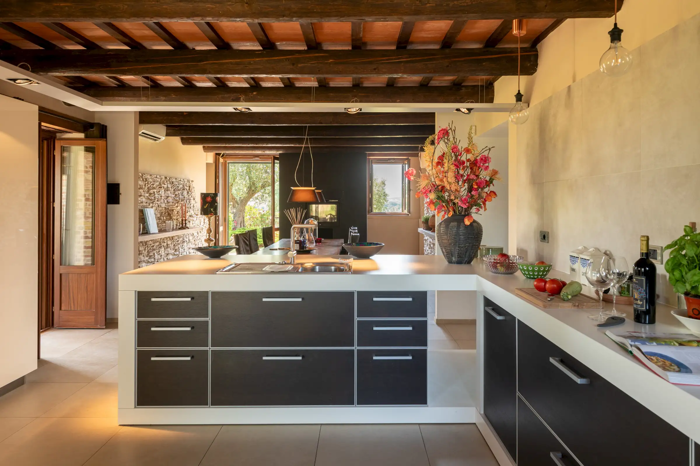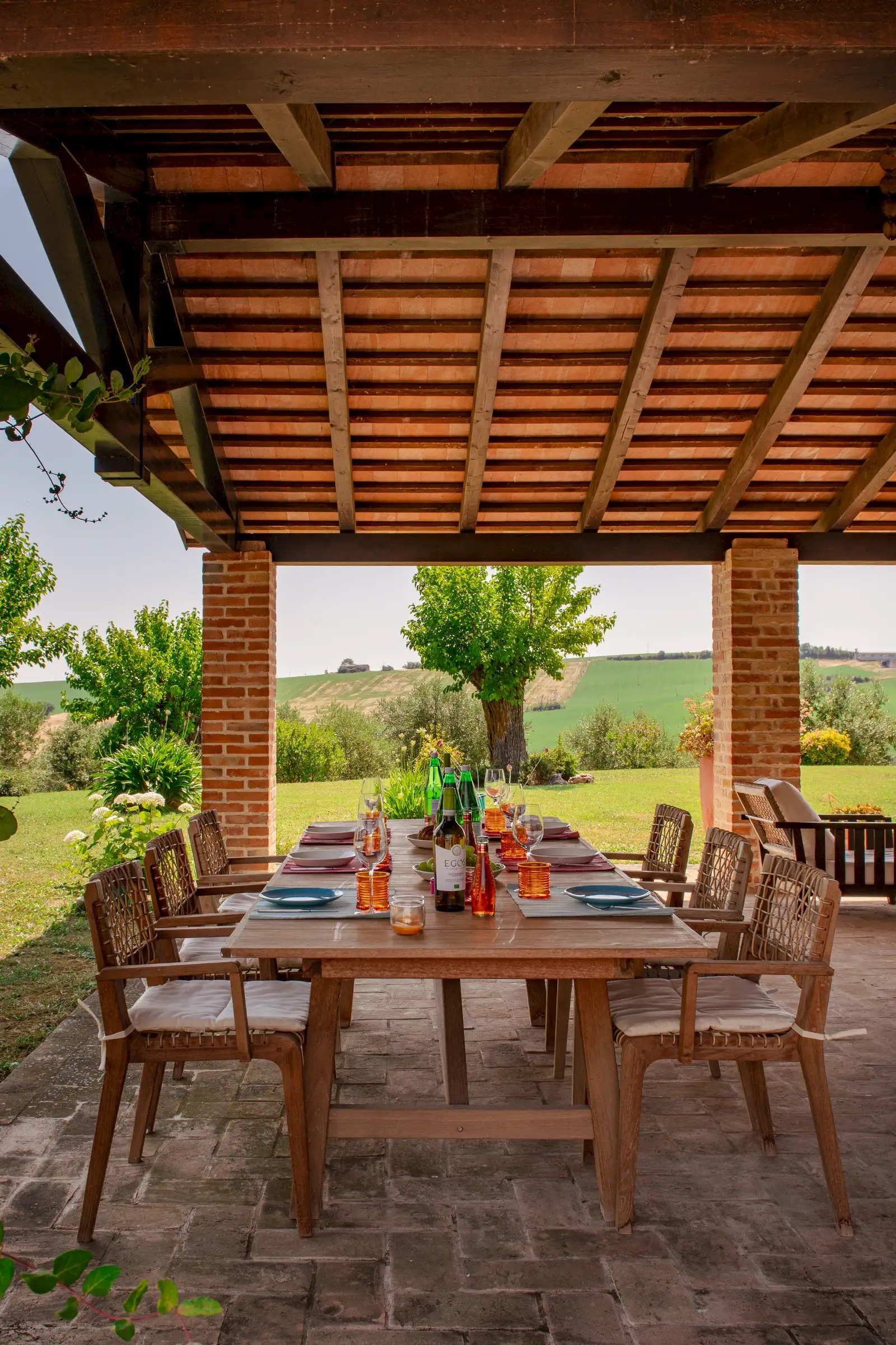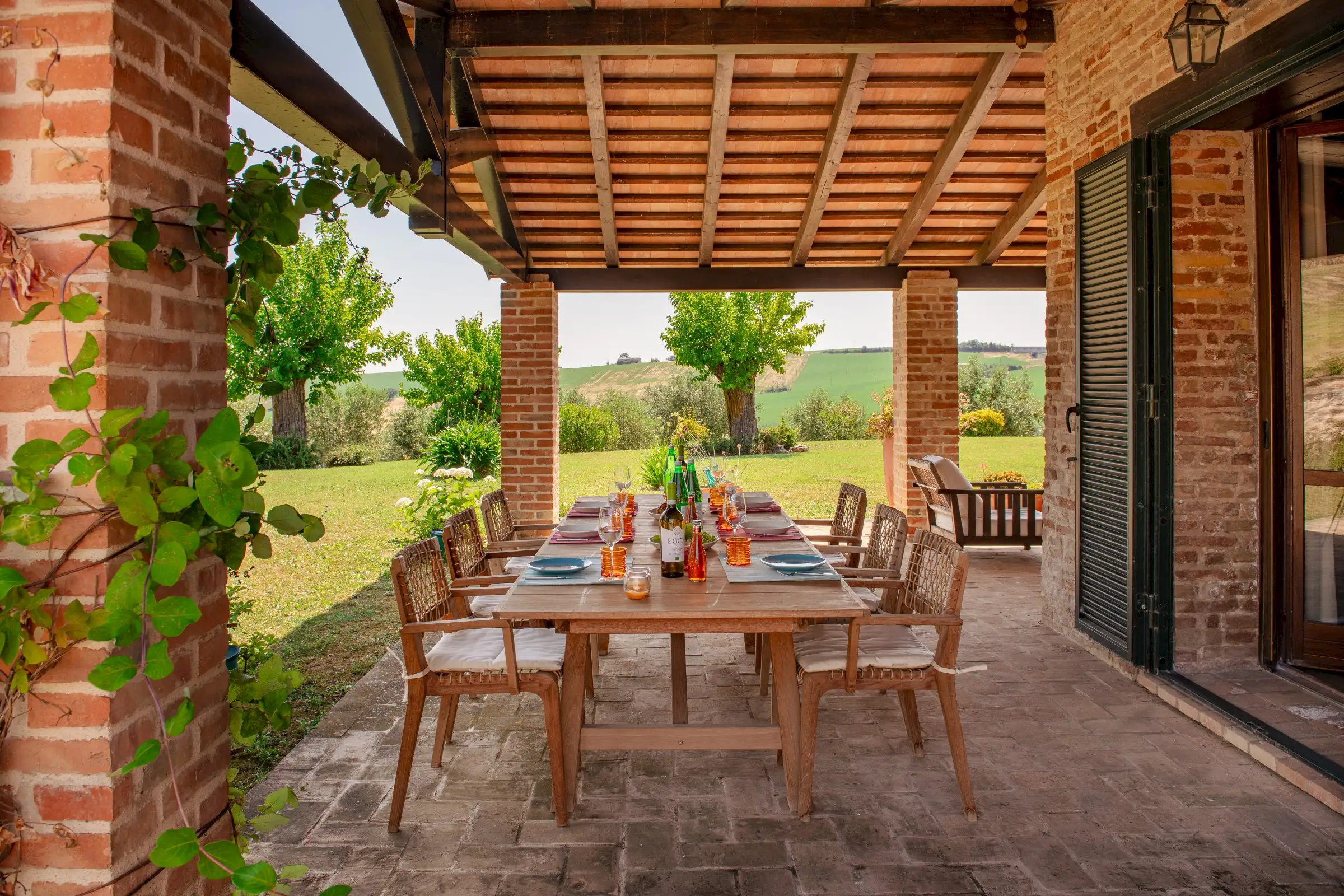 This traditional Marche farmhouse with original features has been beautifully renovated and maintained and, with its large garden and pool, is a delightful family villa.
