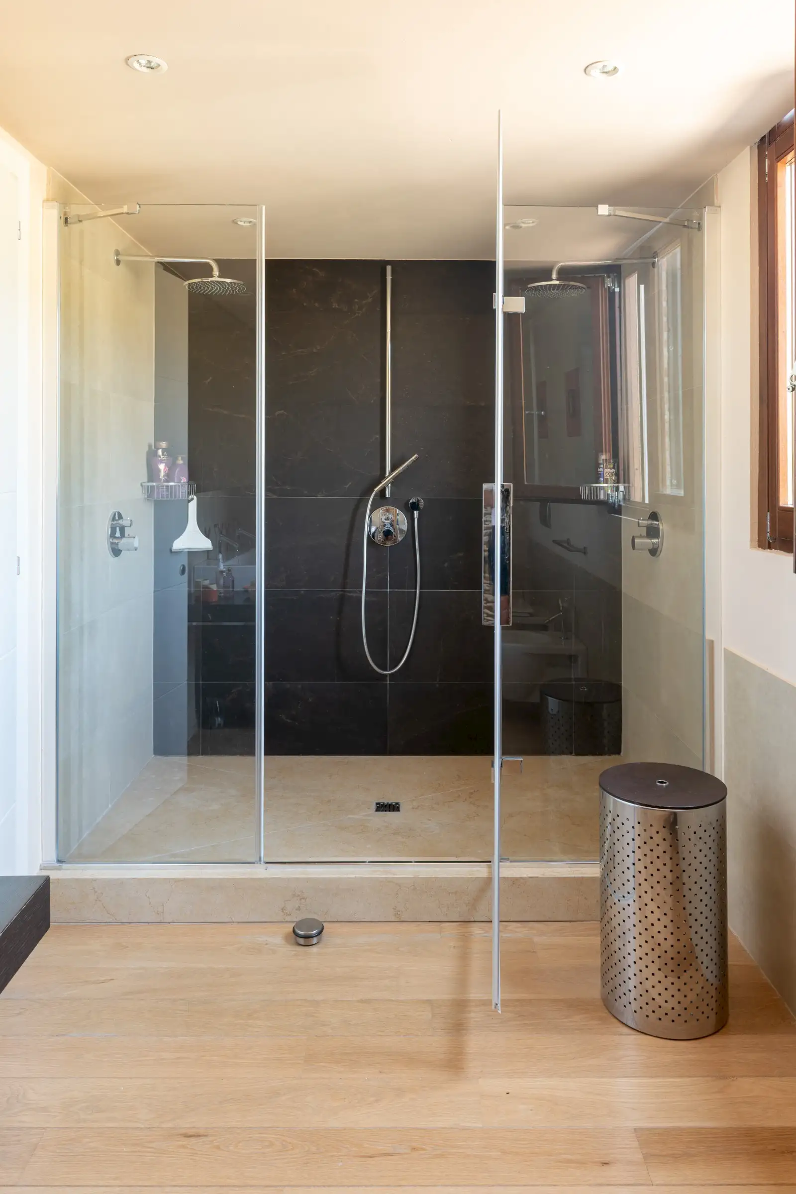 There are three spacious bathrooms with walk-in showers. There is also a stand-alone bath in the upstairs bedroom of the family suite.