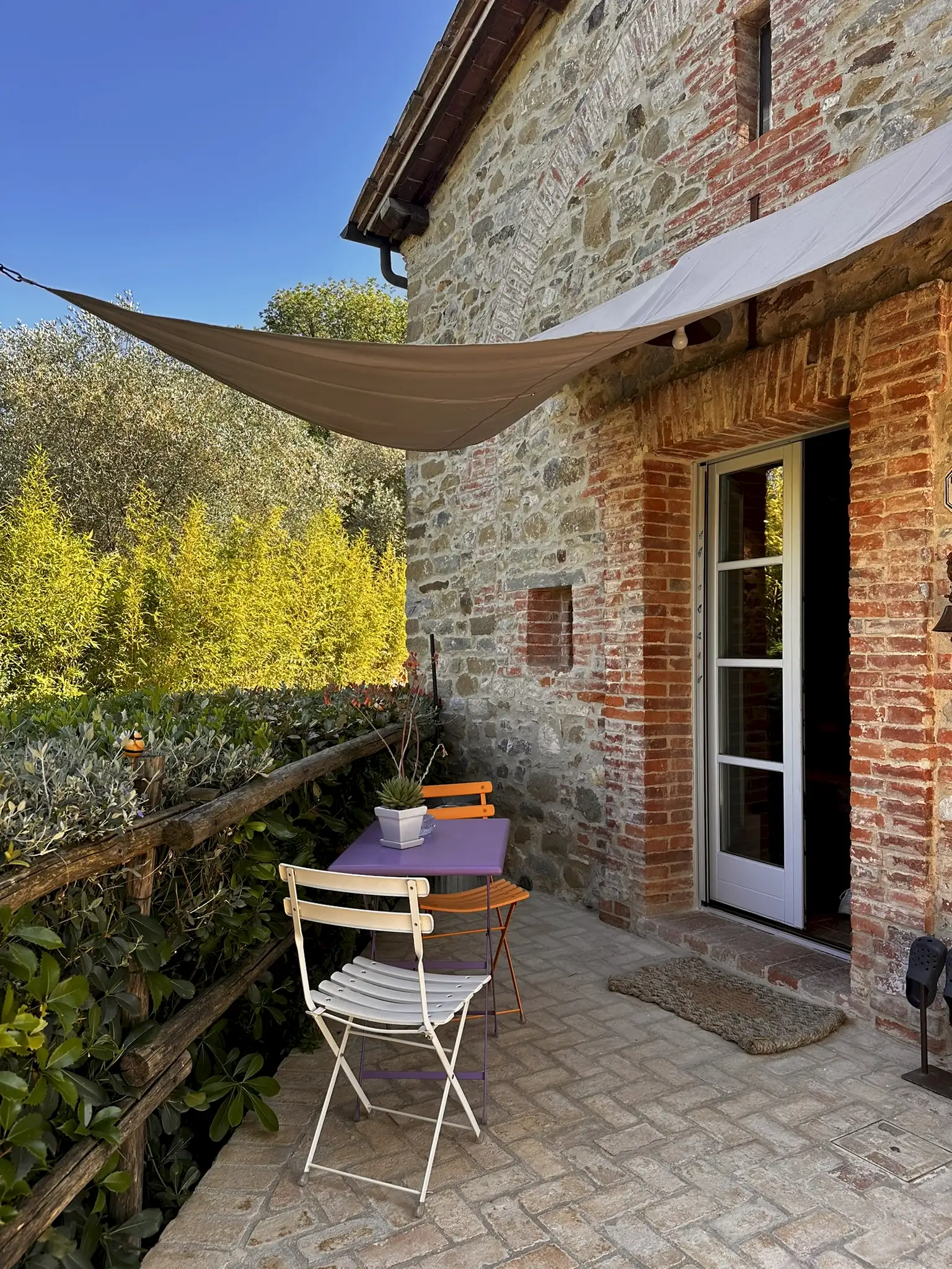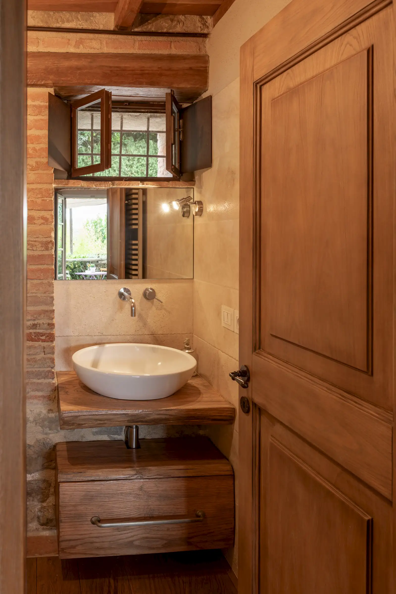La Casina is a delightful stone and brick cottage for two in a tiny rural rural neighbourhood not far from Tavernelle. A former chapel, the cottage was fully restored in 2019, retaining original details in the stonework while the interior was renovated using beautiful, handcrafted local materials.