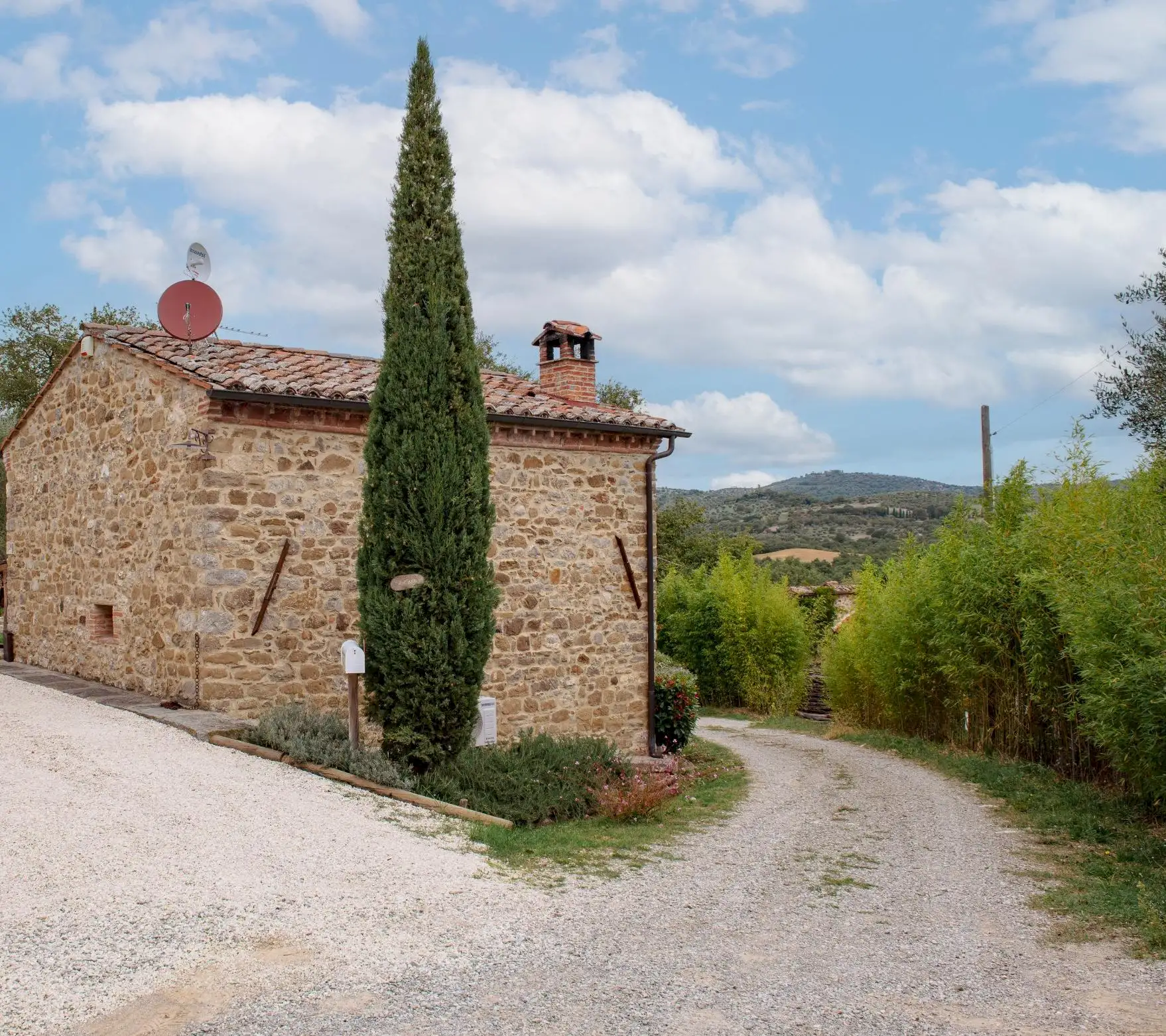 Approached along a gravel lane, the house is near to a handful of other properties yet private, surrounded by the rolling Umbrian countryside, woods and olive groves, and just a short car journey from the nearest shops.