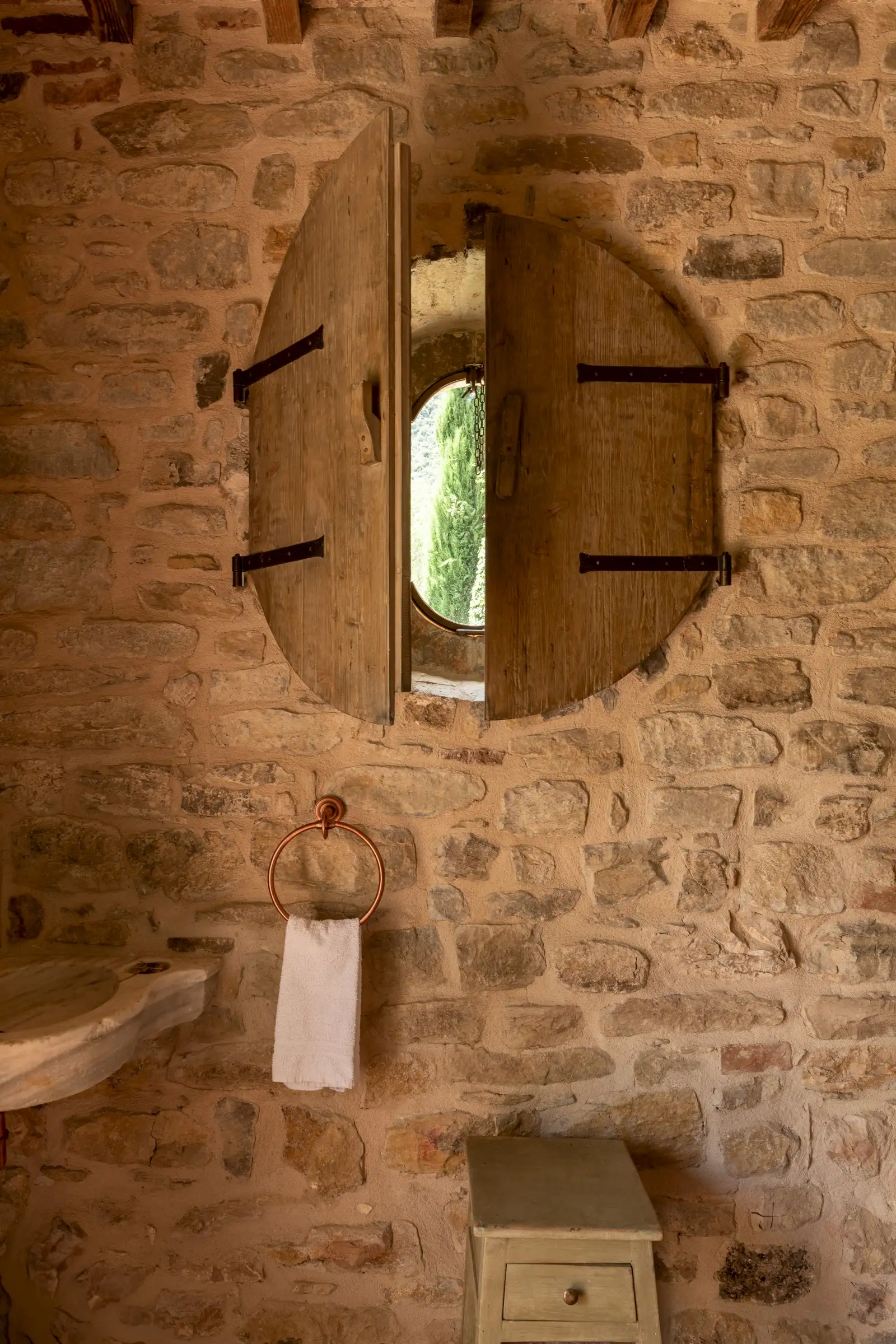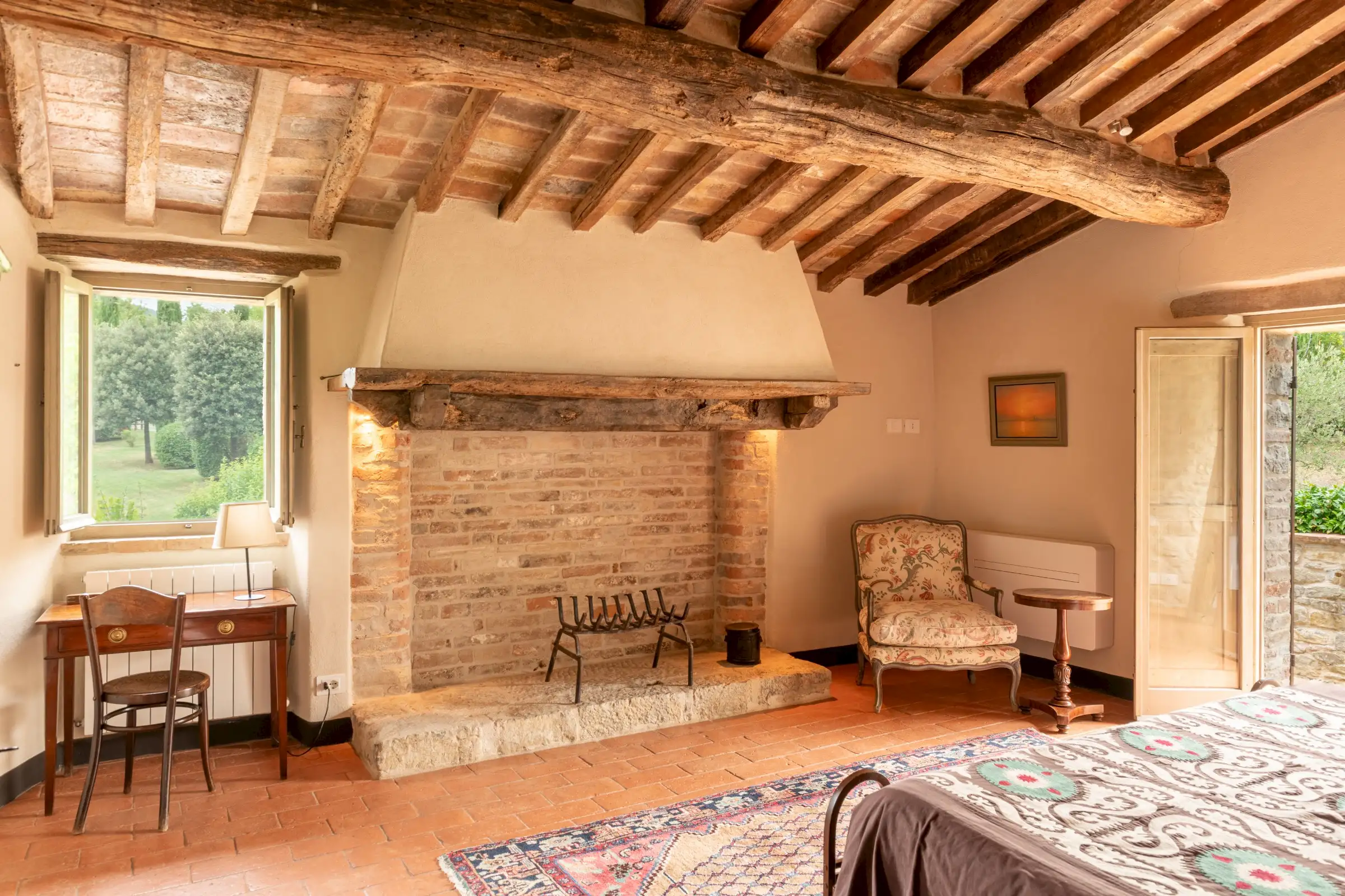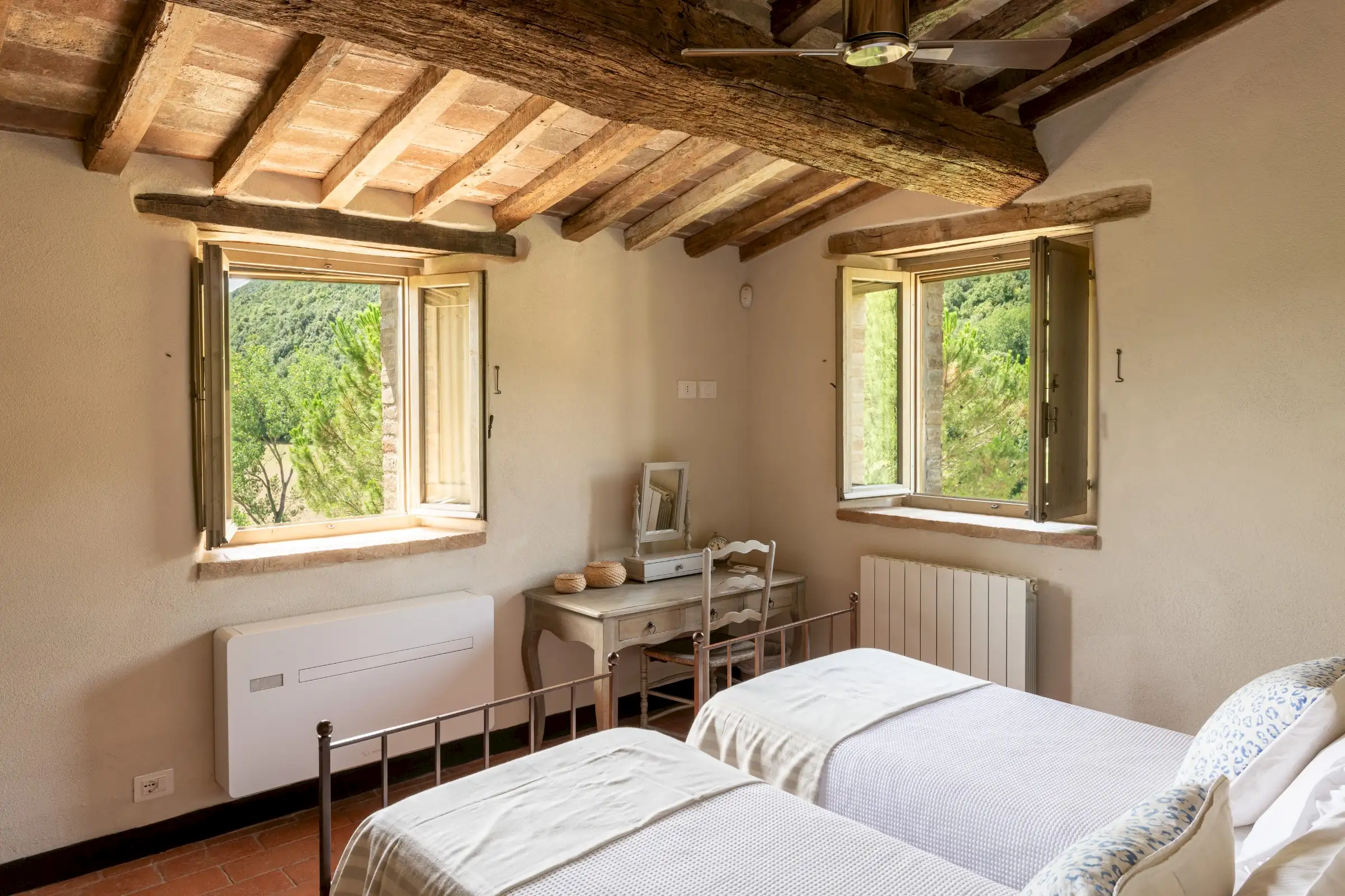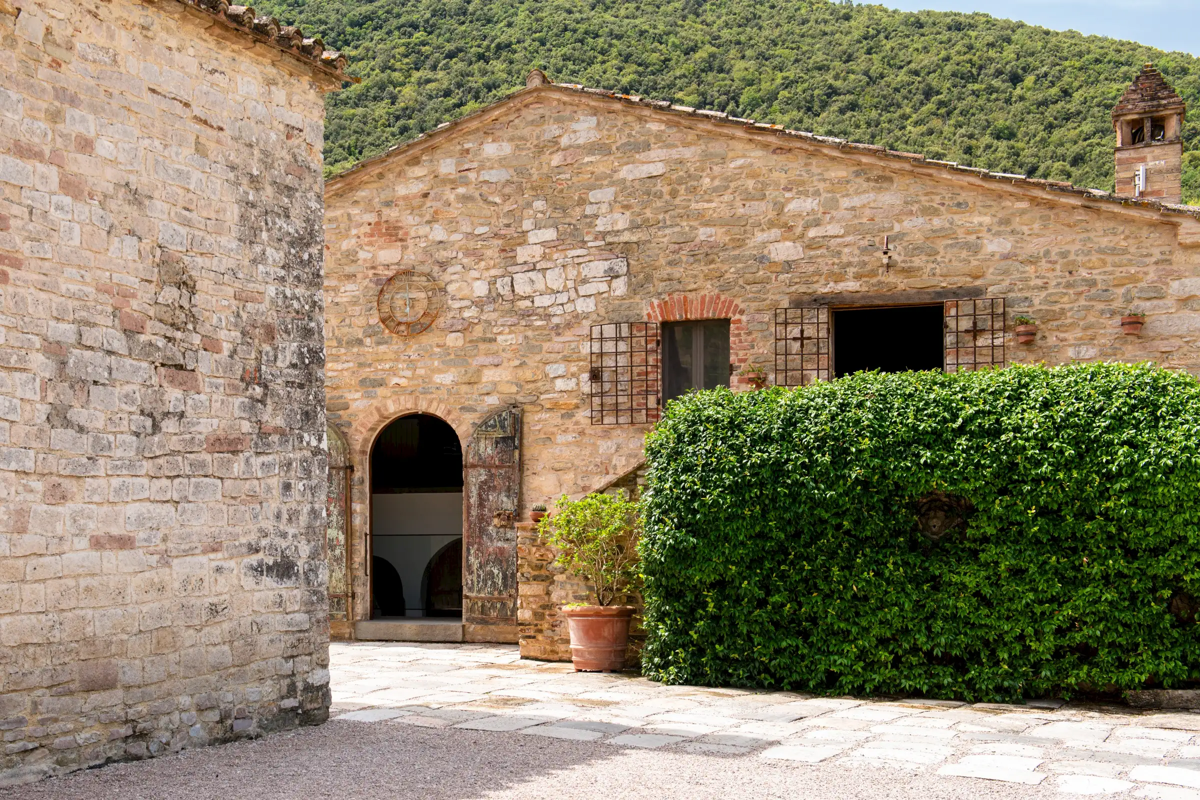 The current owners took on this once-abandoned valley in 2014 and carried out a full renovation of the buildings. The estate is now thriving and includes some other well-restored private properties at comfortable distance from La Chiesetta, olive groves, vineyards, truffle wood and a winery.