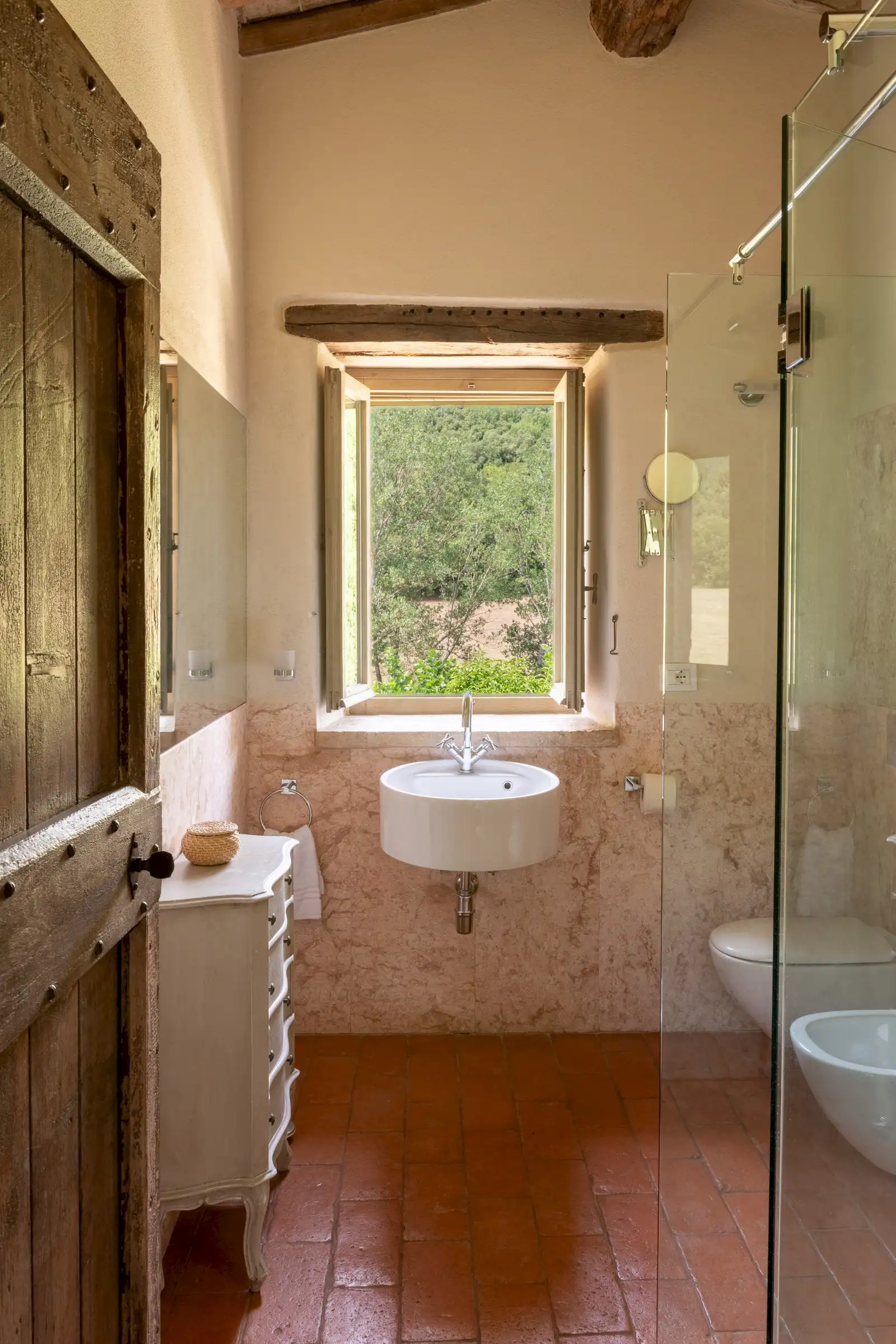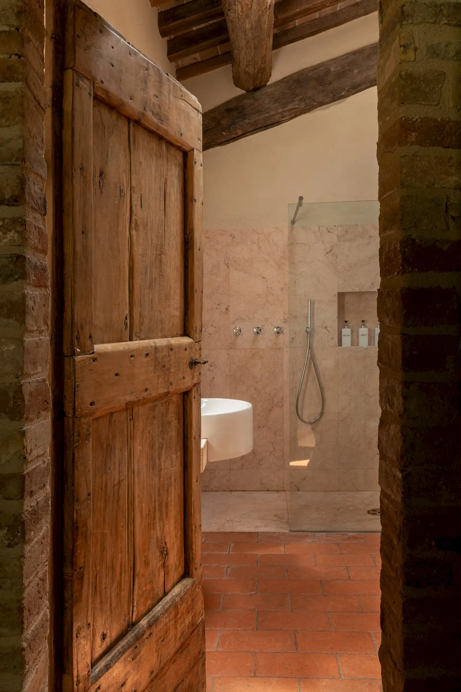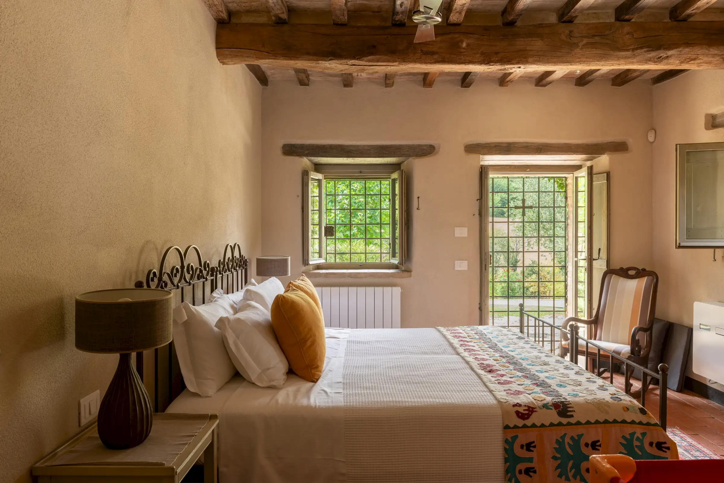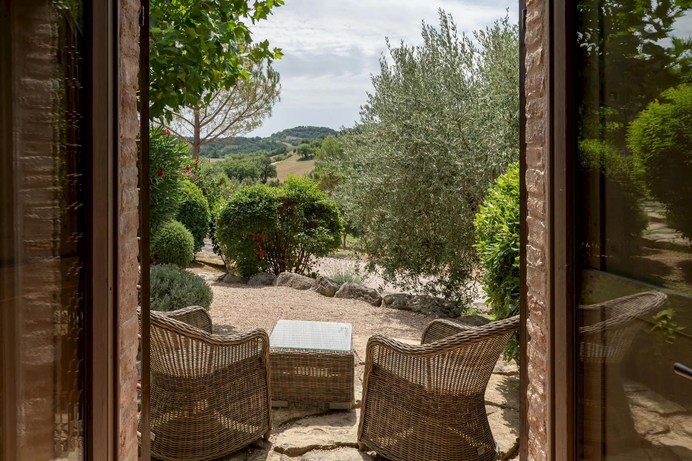 The current owners took on this once-abandoned valley in 2014 and carried out a full renovation of the buildings. The estate is now thriving and includes some other well-restored private properties at comfortable distance from La Chiesetta, olive groves, vineyards, truffle wood and a winery.