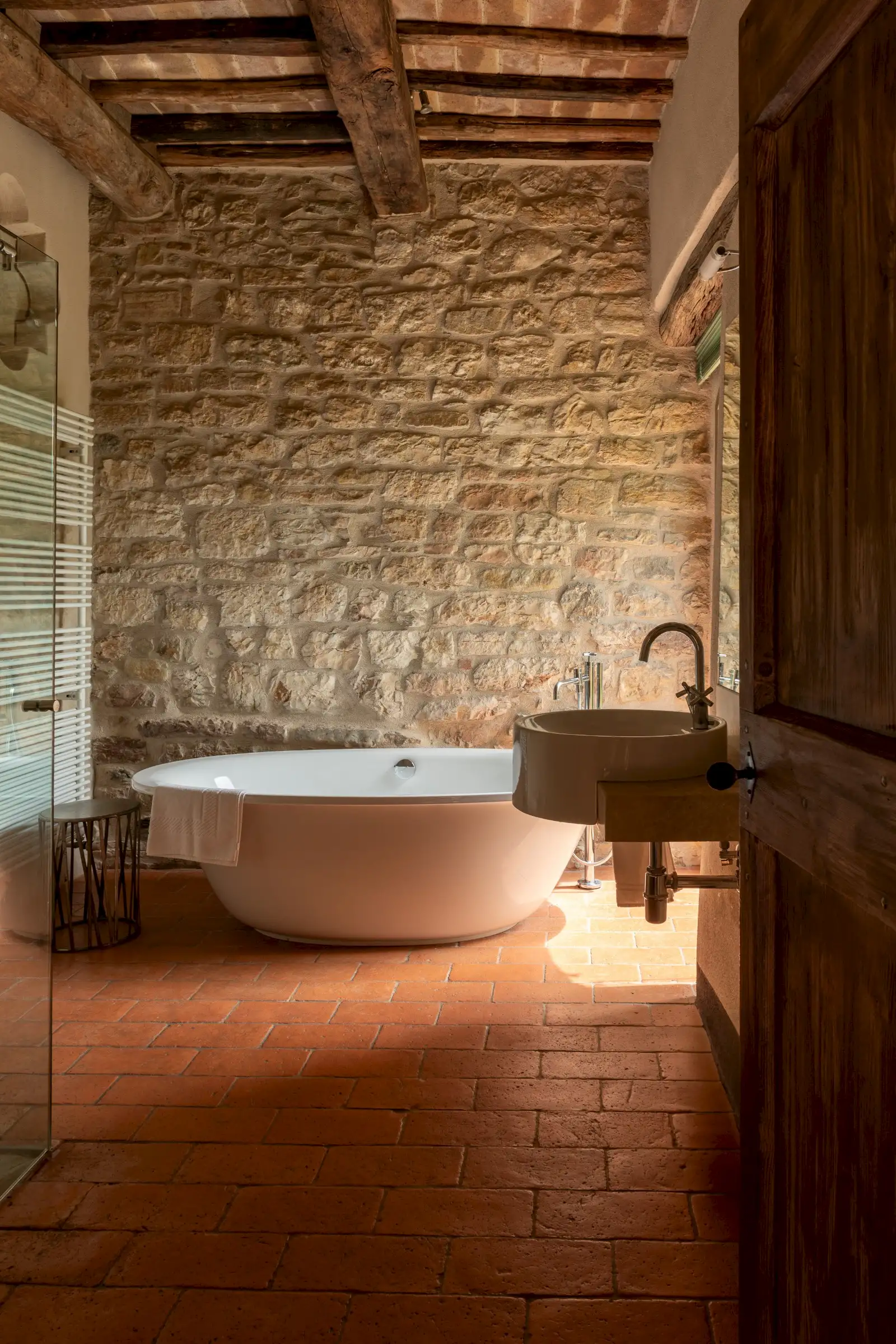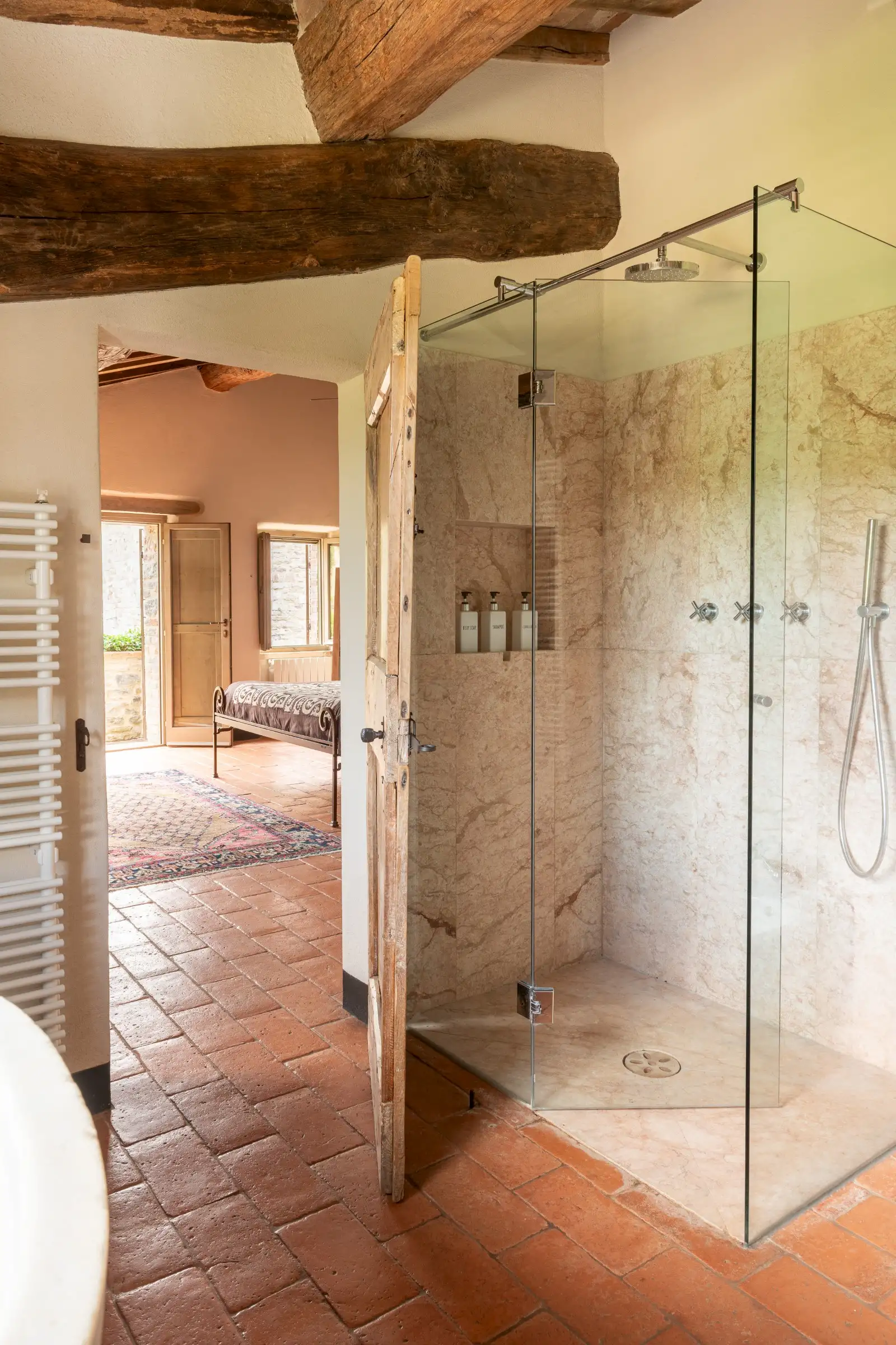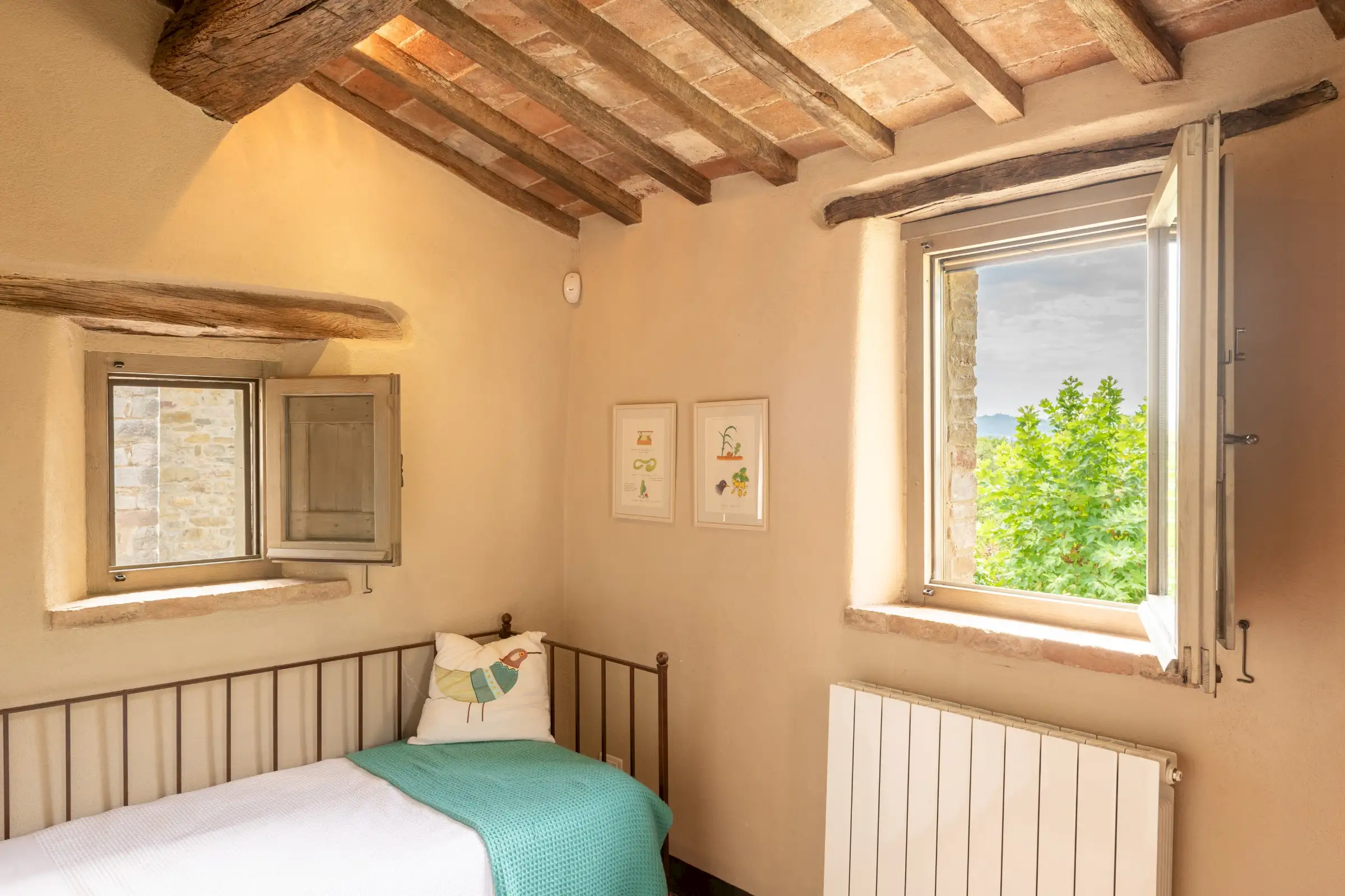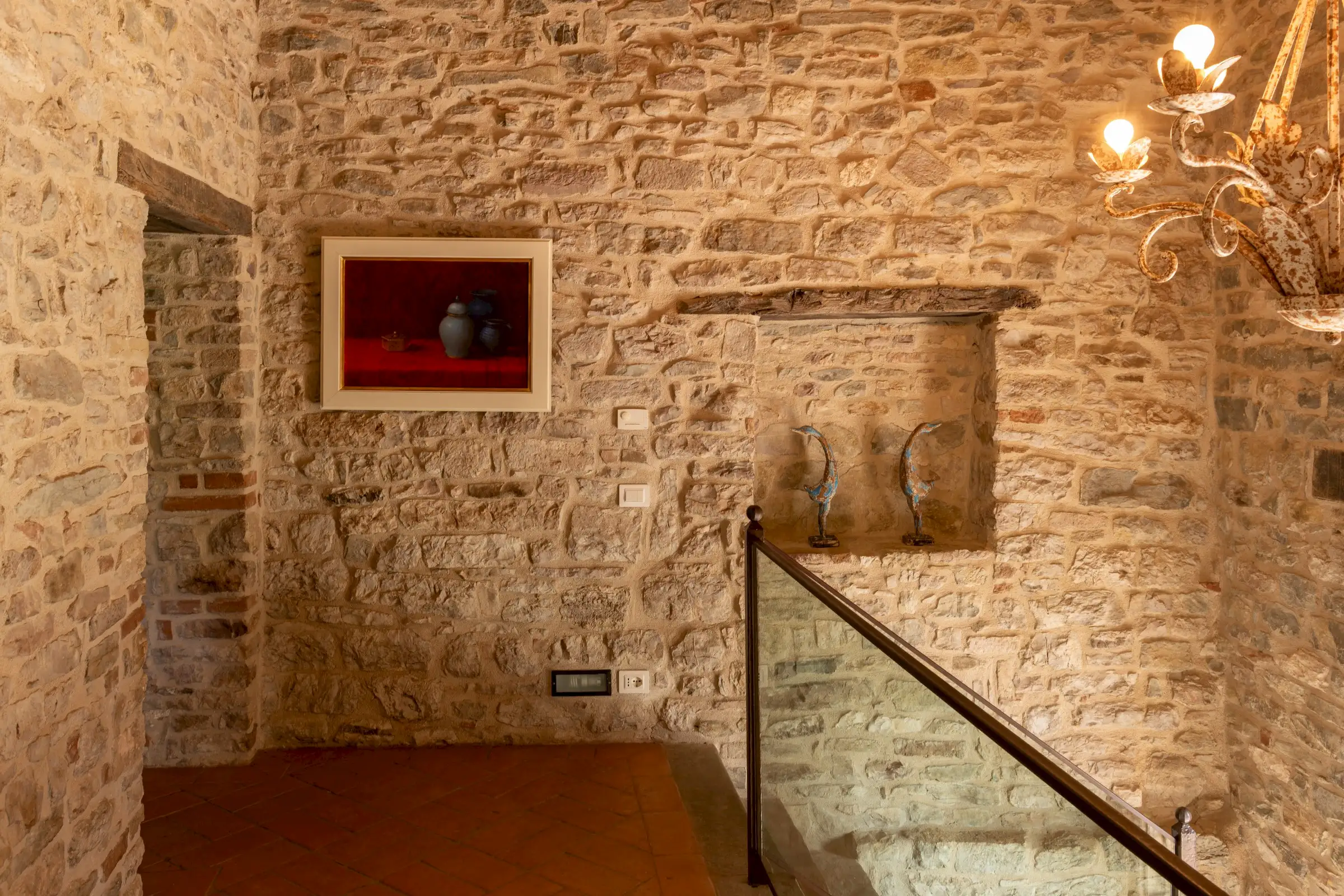 The current owners took on this once-abandoned valley in 2014 and carried out a full renovation of the buildings. The estate is now thriving and includes some other well-restored private properties at comfortable distance from La Chiesetta, olive groves, vineyards, truffle wood and a winery.