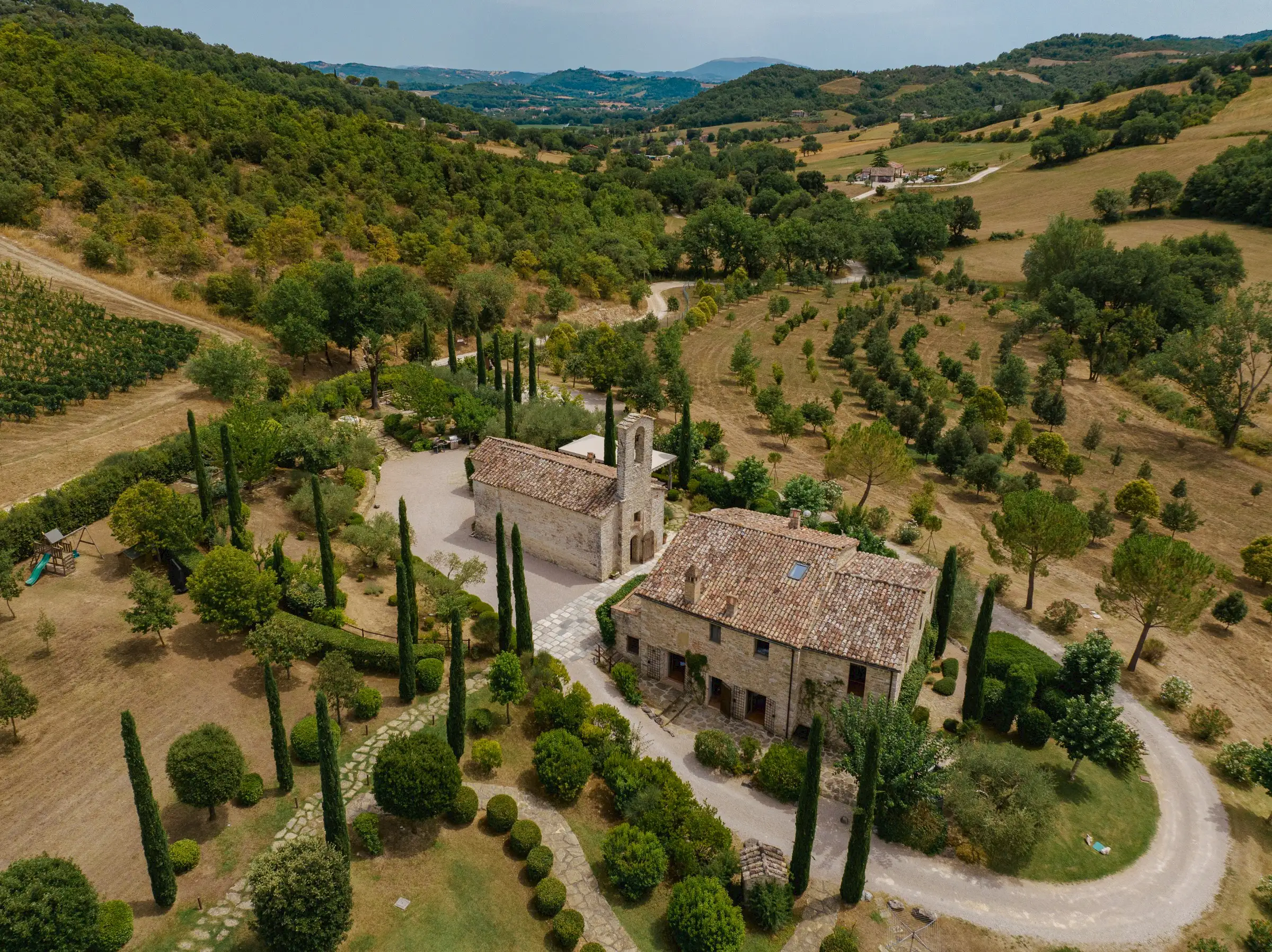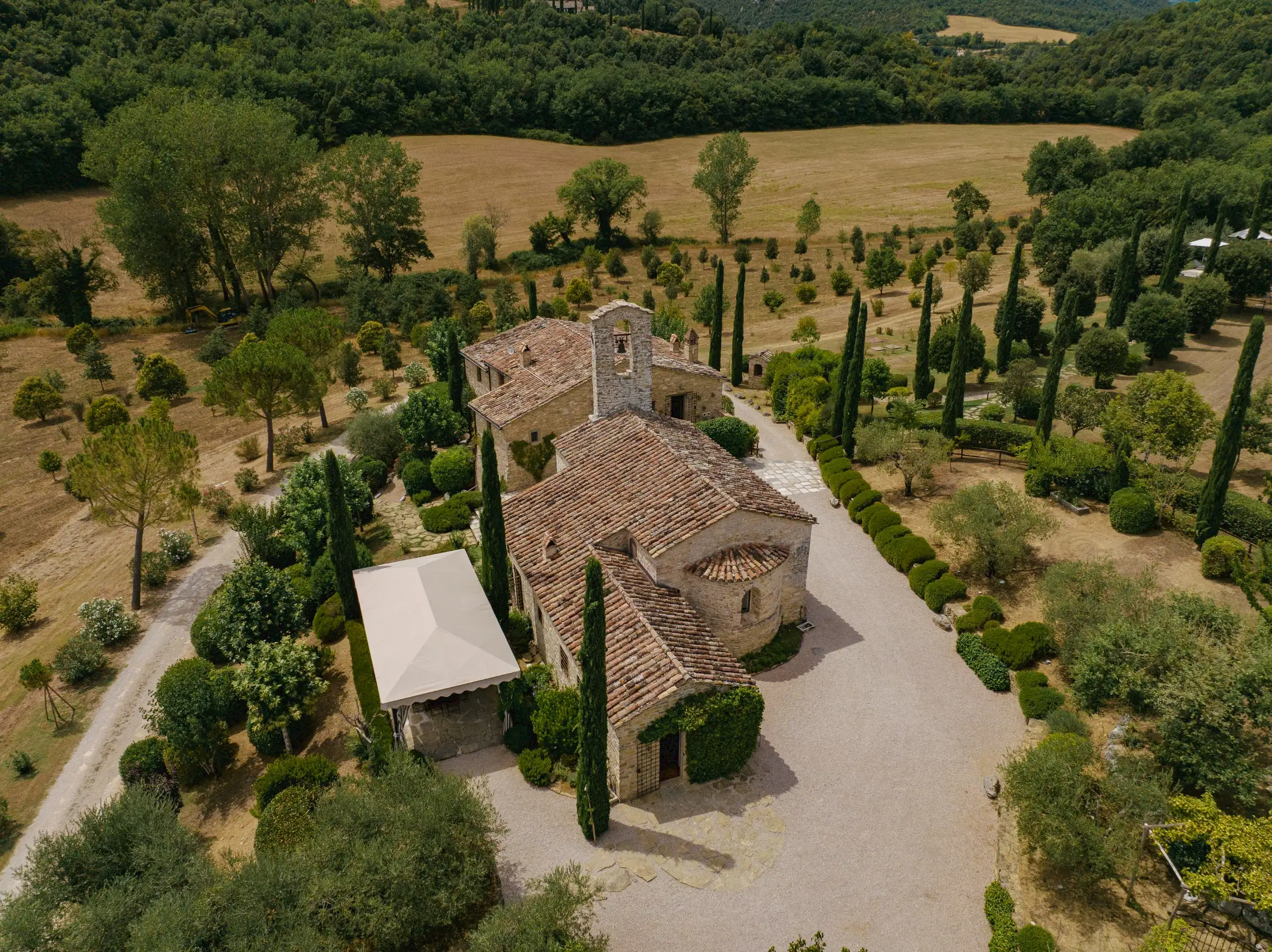 A pretty 11th century church provides the focal point of this stunning property that is equally suited to a private family villa or a picture-perfect events location.