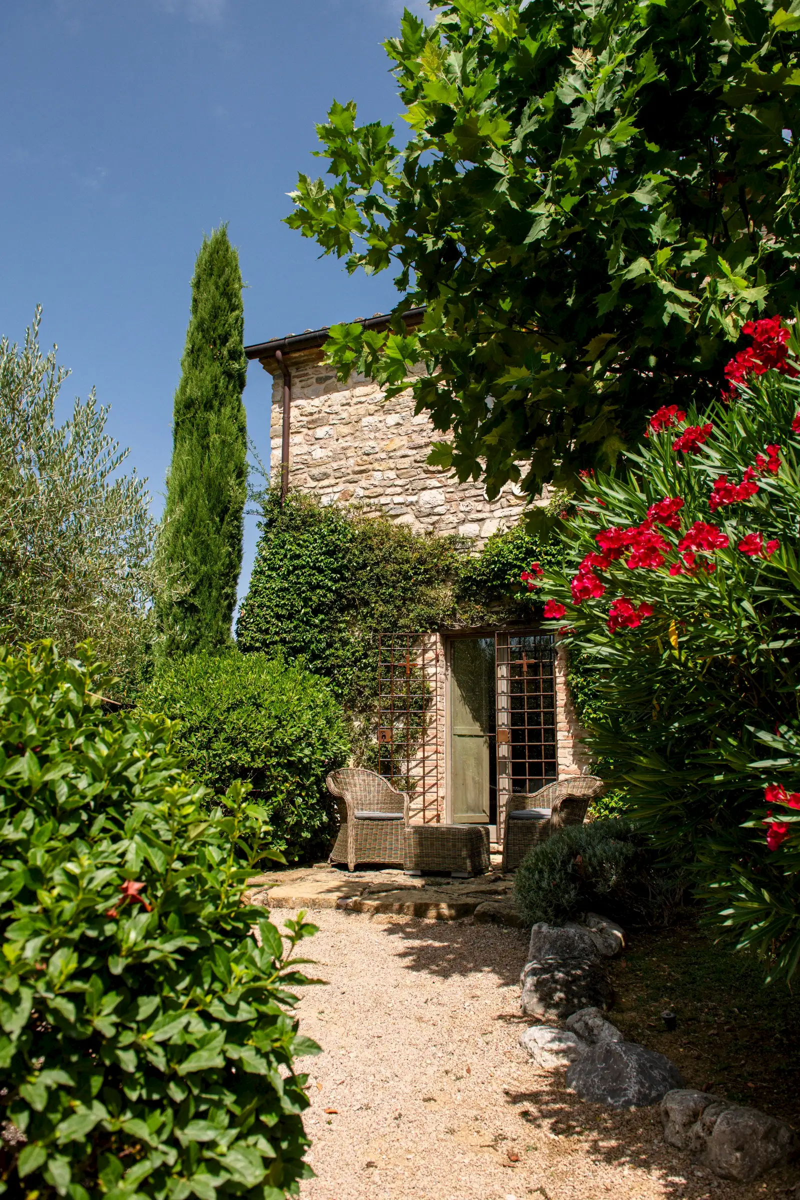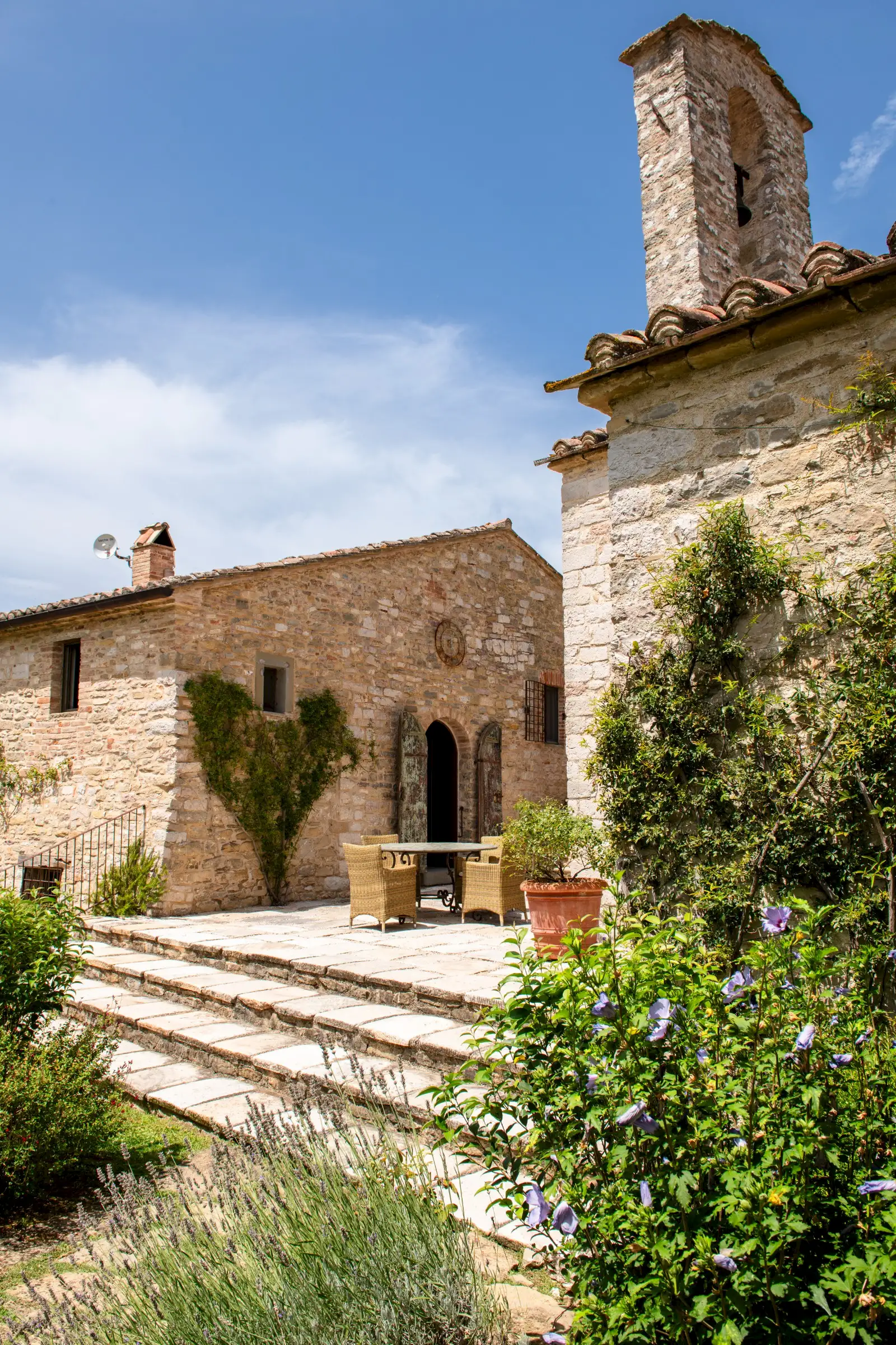 La Chiesetta is an irresistibly charming former chapel, dating back to the 11th century, and an accompanying farmhouse, nestled within a wine estate in the rolling hills just 20 minutes north of Perugia.