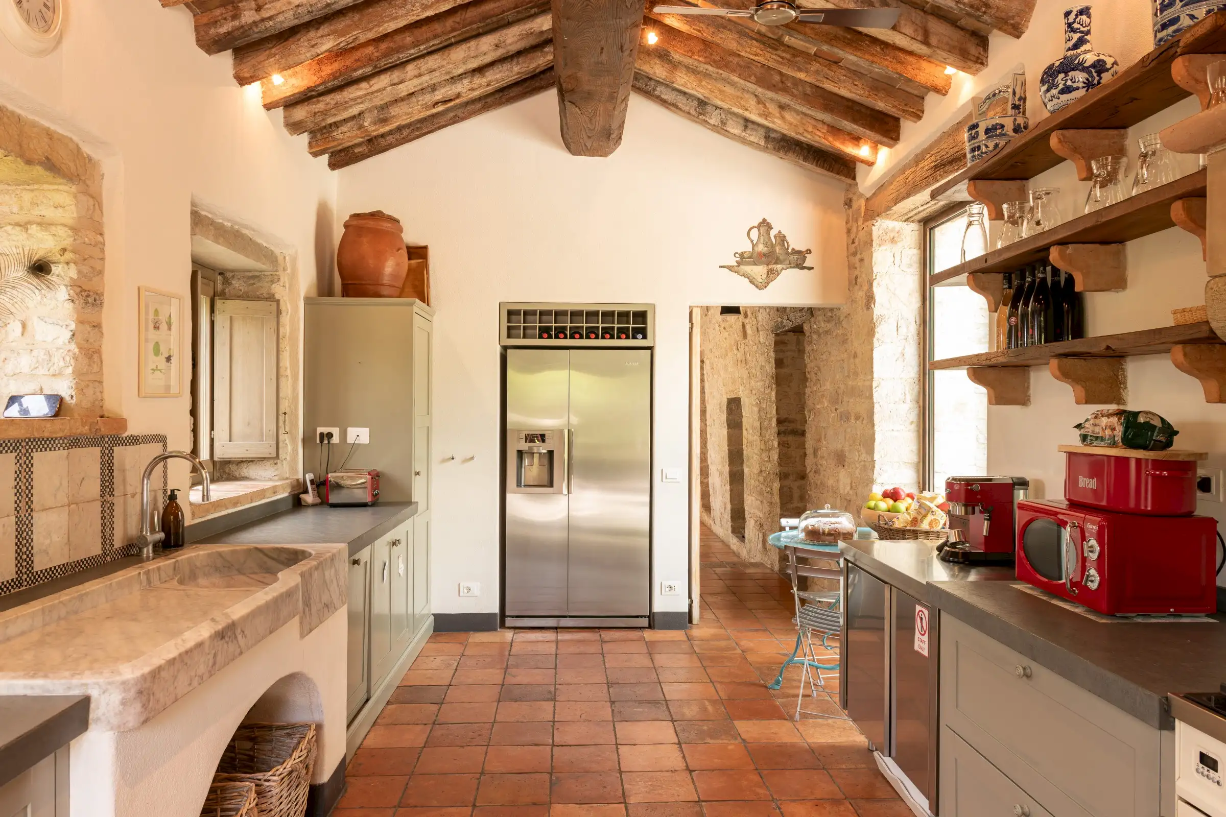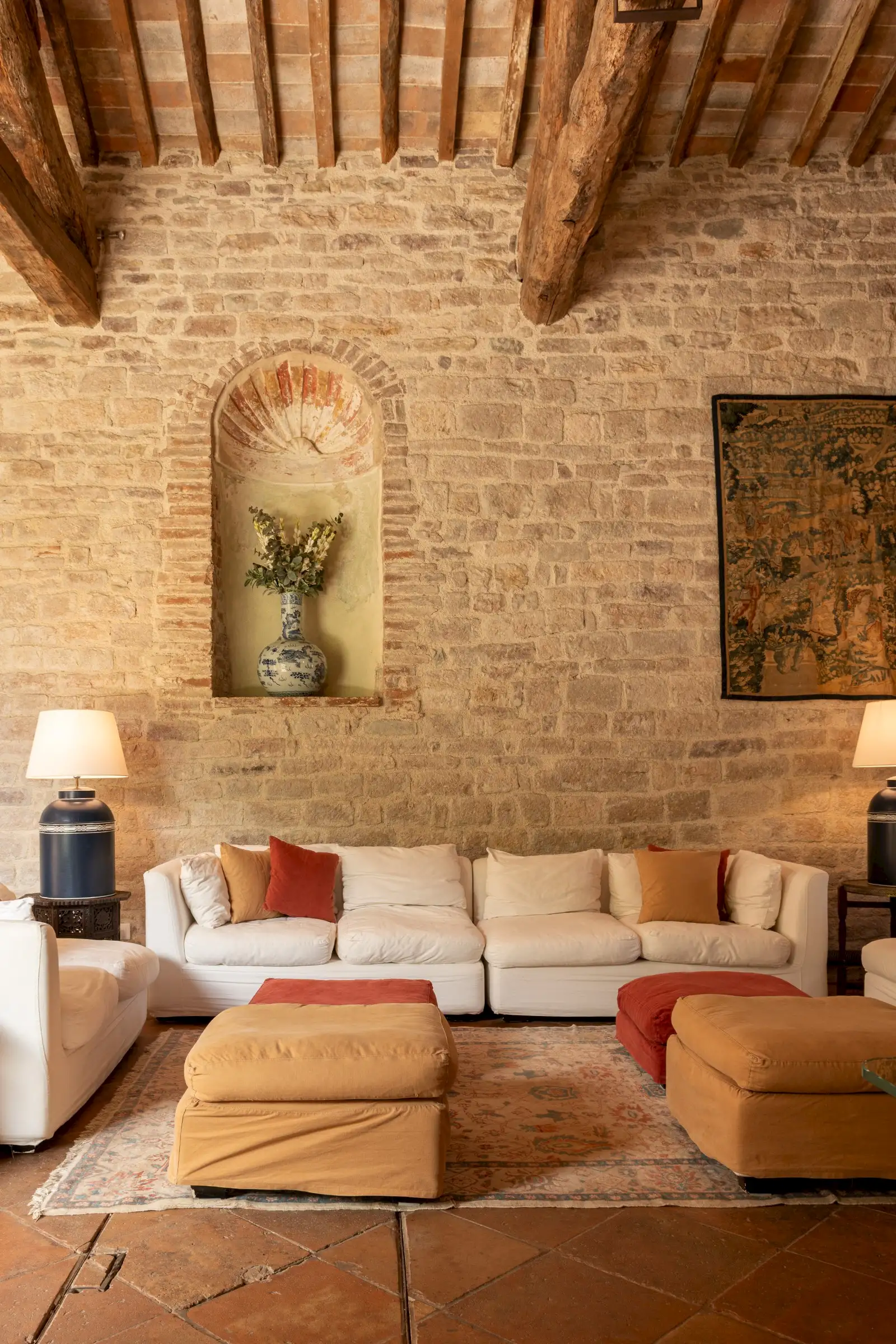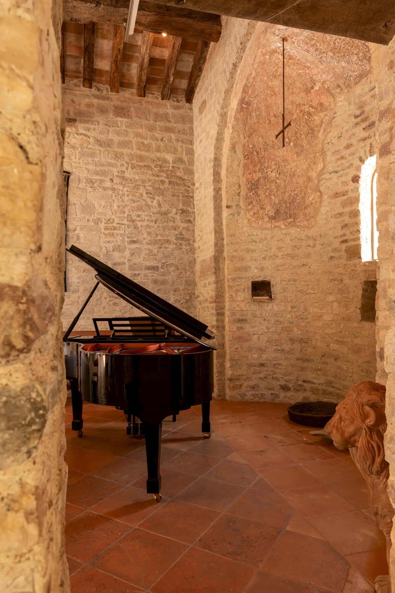 La Chiesetta is a large family home that also lends itself perfectly to weddings, concerts or any other big gathering, thanks to its captivating mix of grandeur, warmth and charm. The chapel’s pale stone walls and magnificent beamed roof offer an incredible venue space.