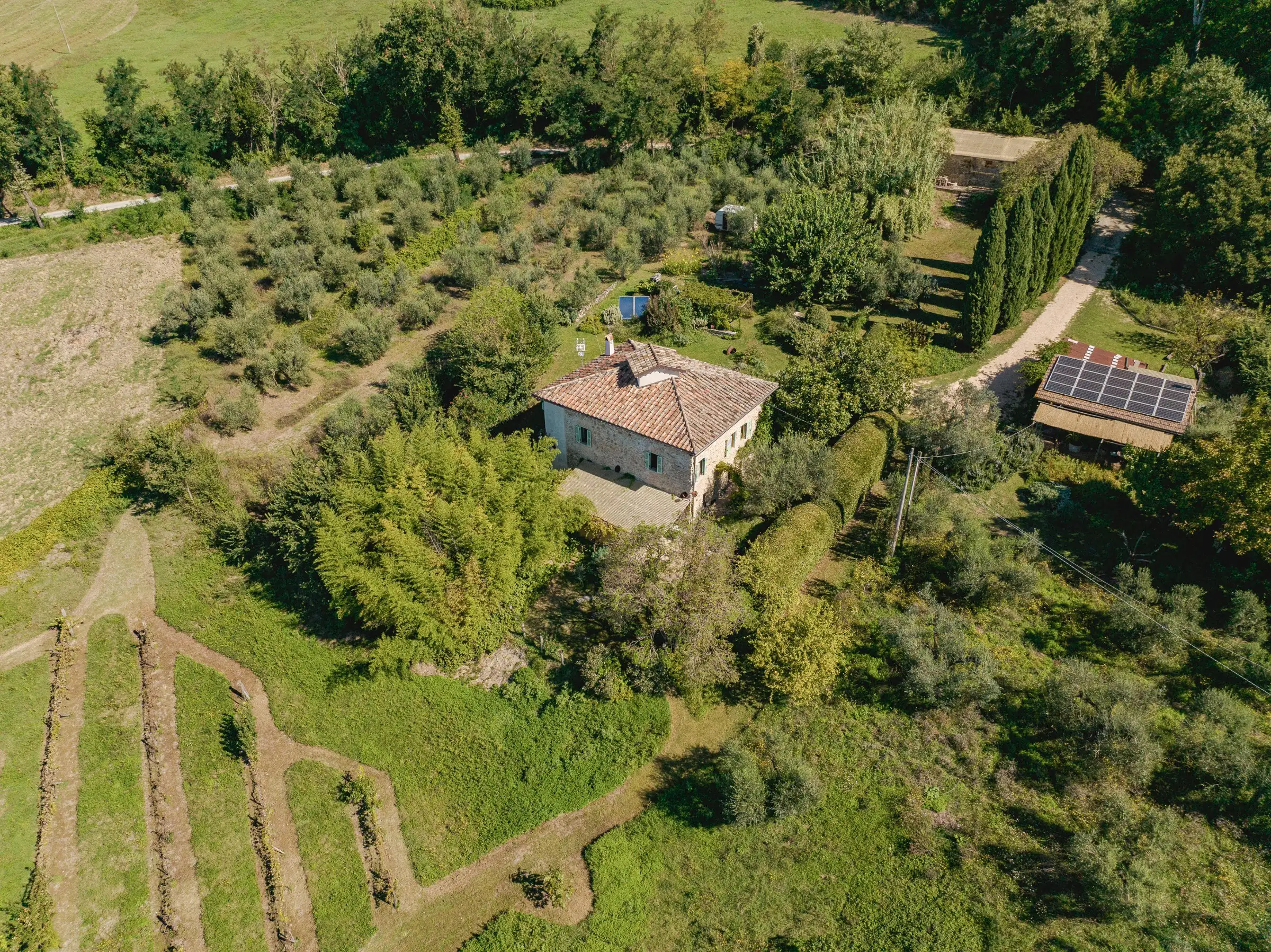 There is the possibility of further enlarging the residential spaces by restoring the annexes, which, in their current state are already very rich in charm with nude colour palette stone walls.