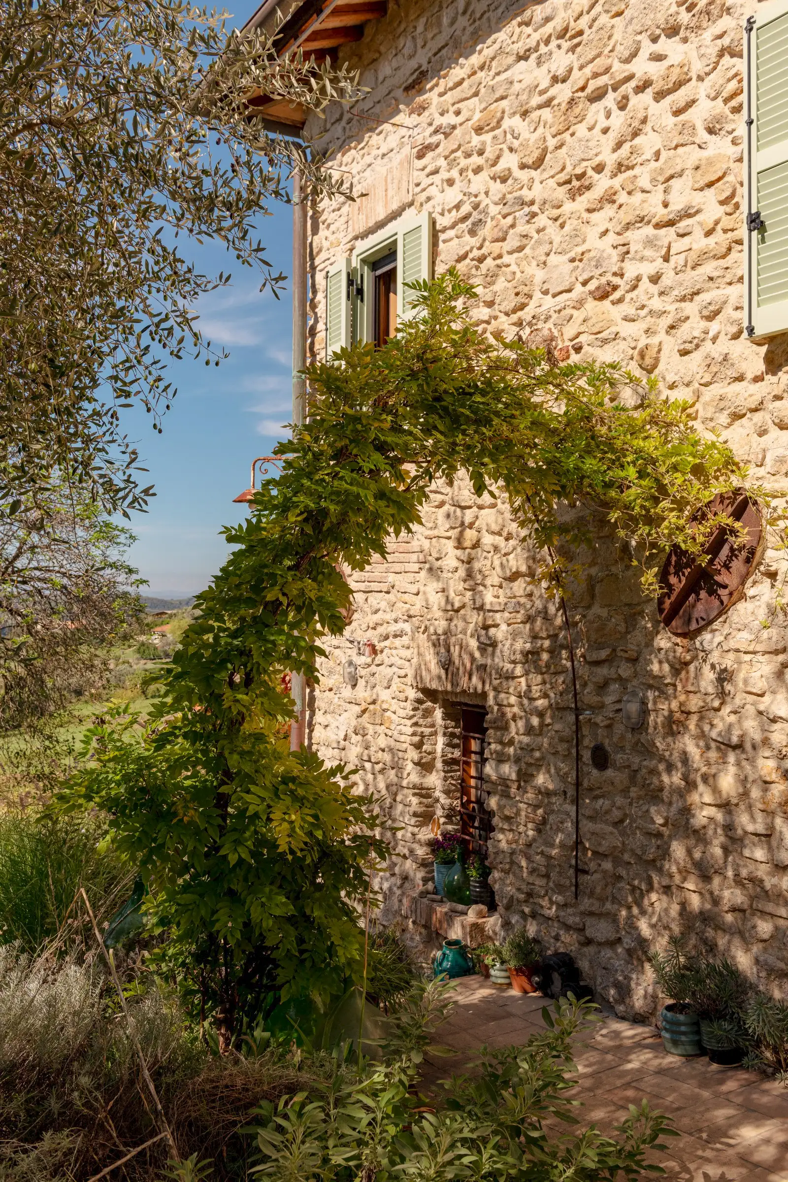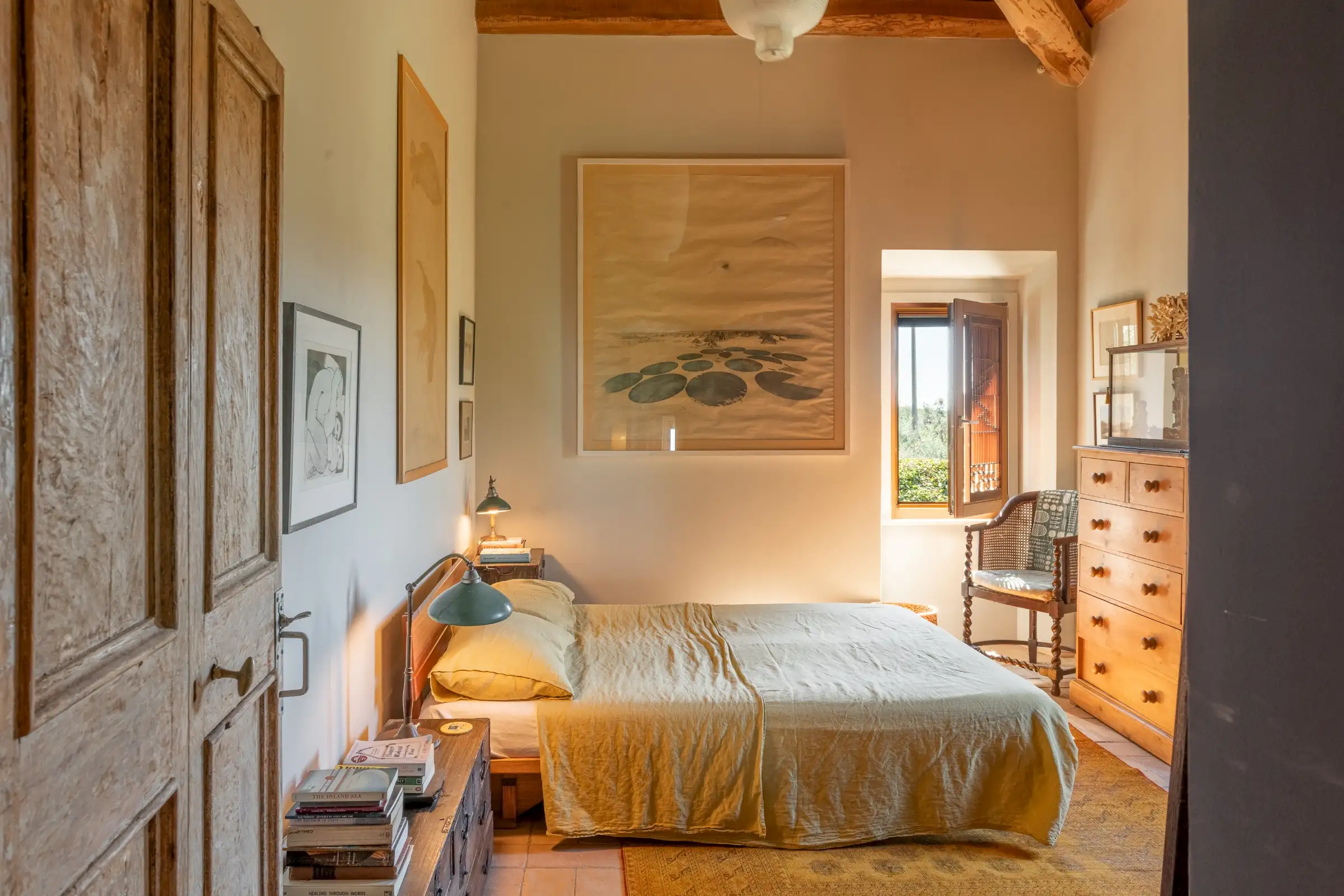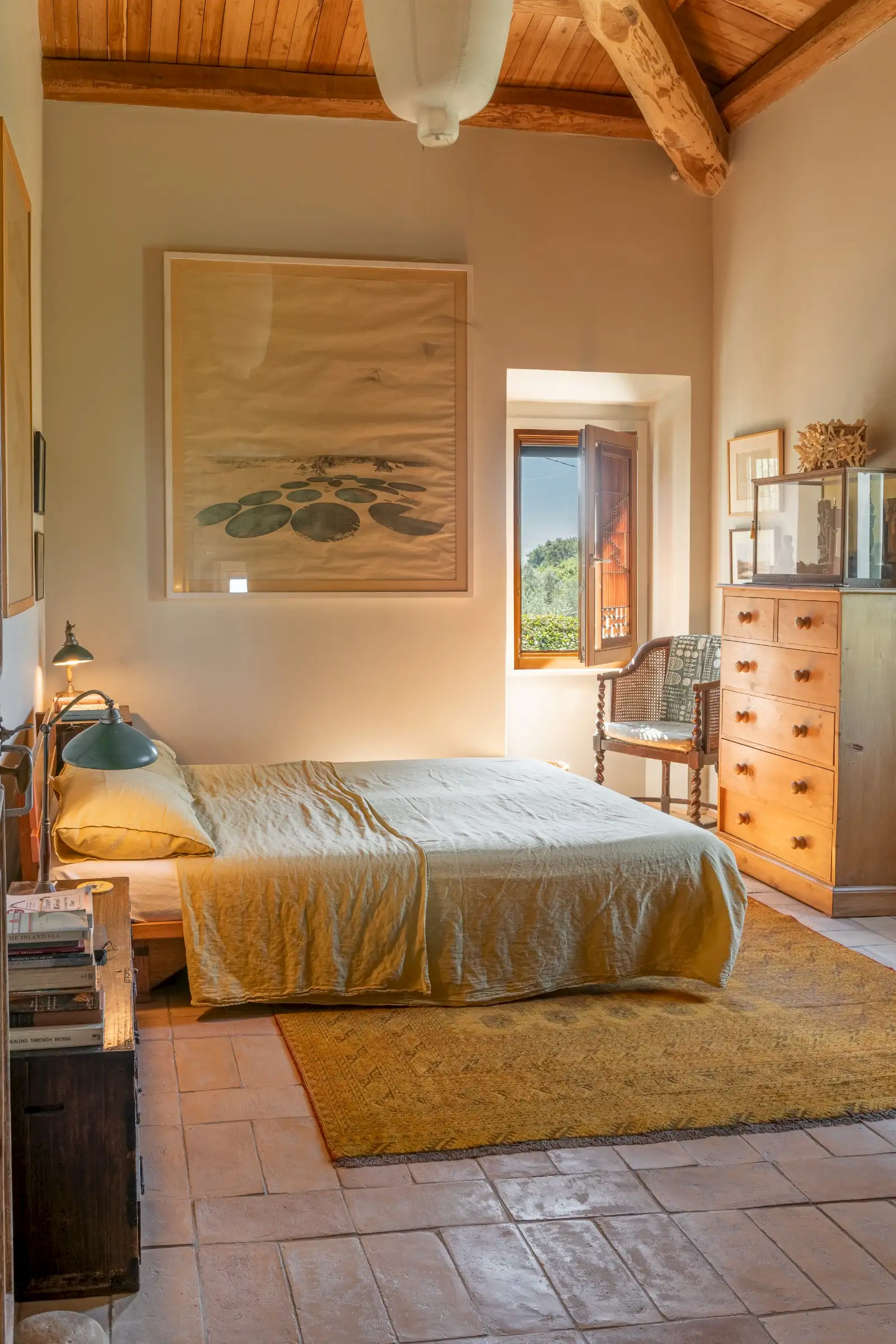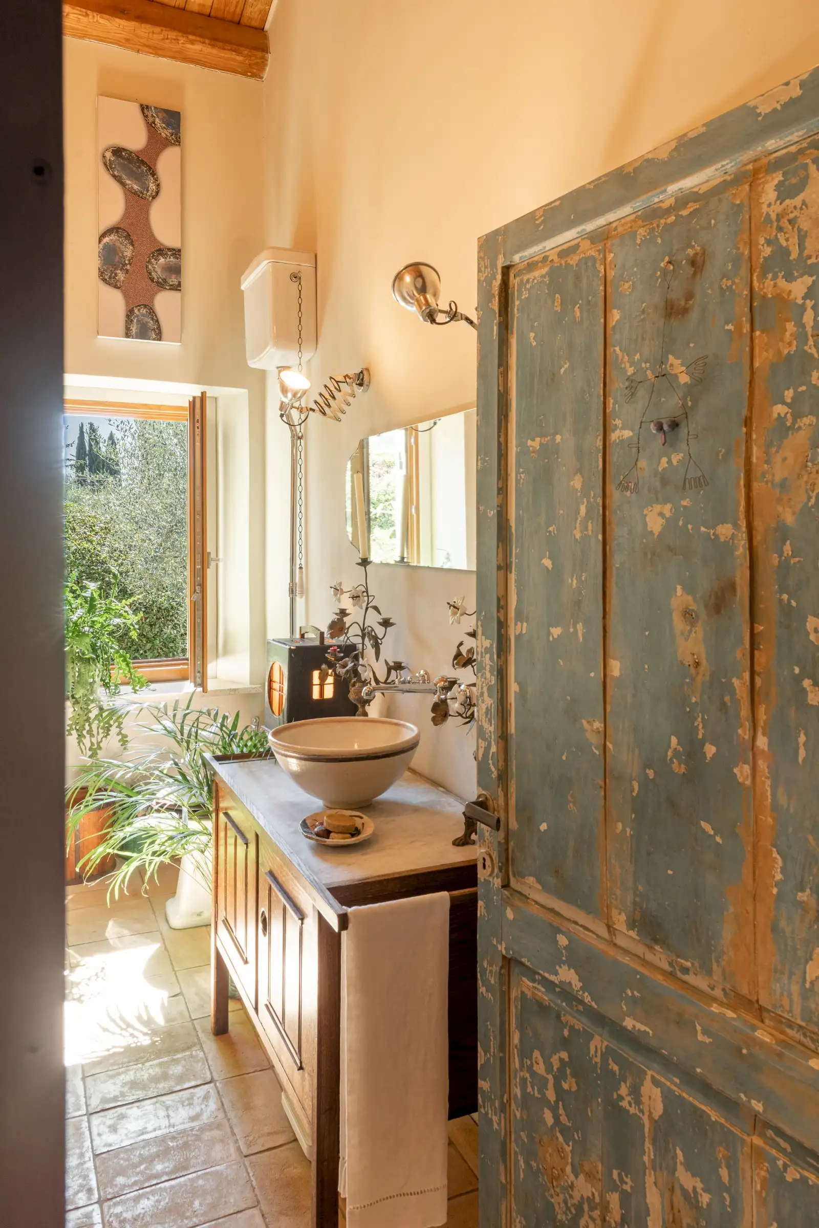 La Palombara fits squarely into this approach, telling a layered story that adds depth where a modern look of restoration might have been dominating. Spread over two floors, the home’s internal flow—and its easy dialogue between indoors and out—underscores the simple truth: La Palombara is a lovely house, perfect for both summer and winter. Cozy interiors, warm natural materials, and an emphasis on proportions define the aesthetic; vintage pieces are integrated seamlessly into the overall design, as well as old original materials, carefully selected and wisely used.