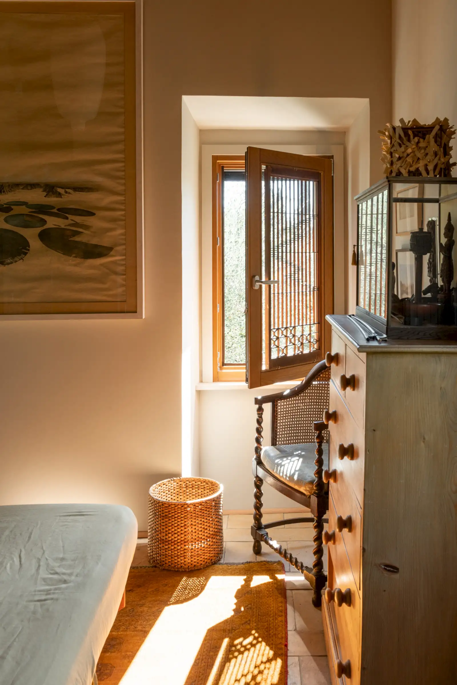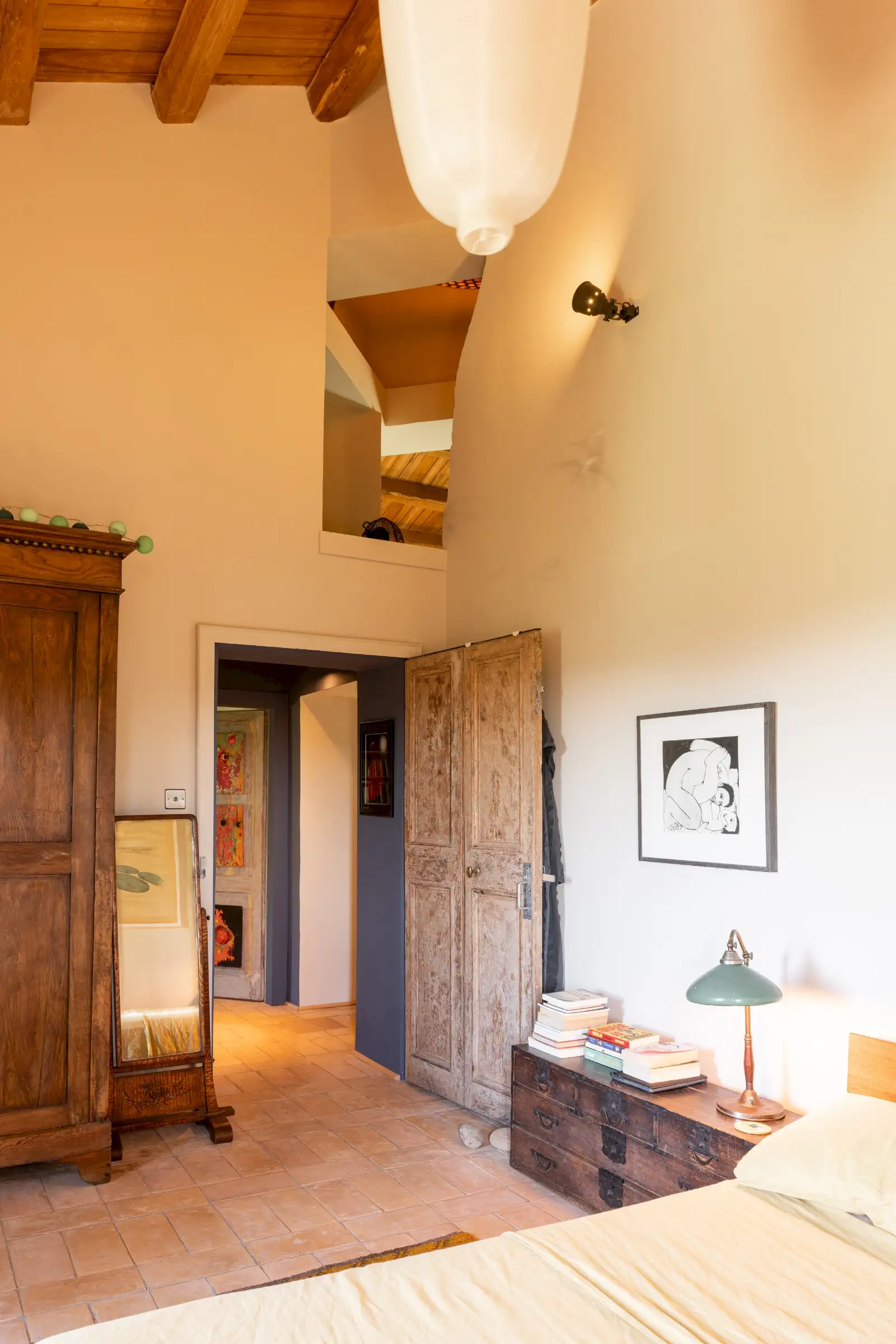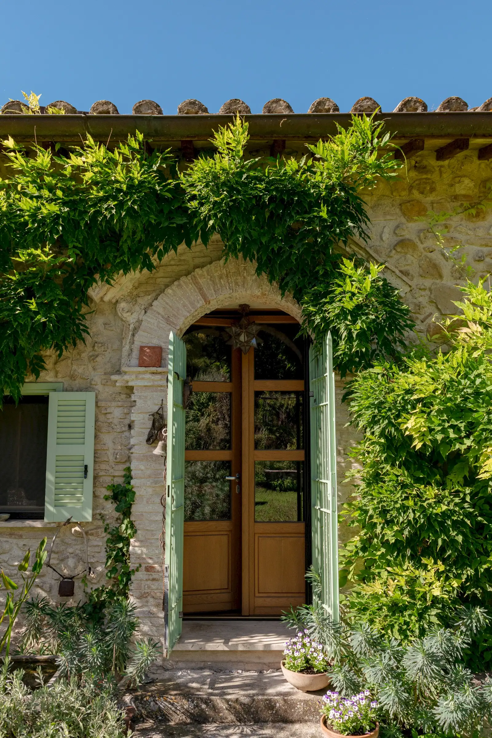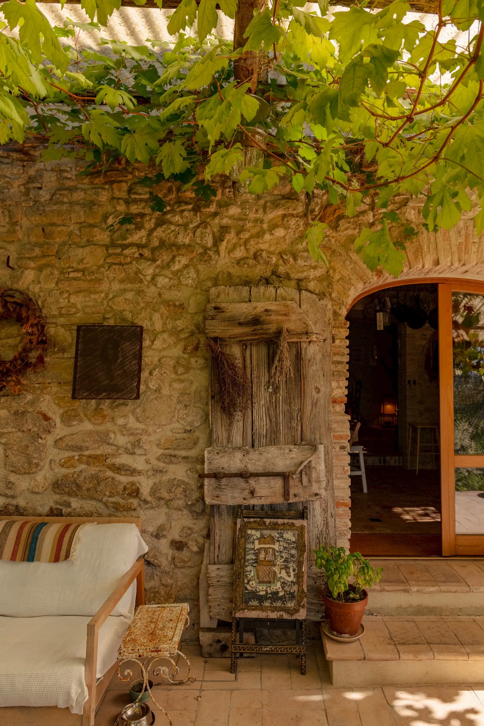 La Palombara fits squarely into this approach, telling a layered story that adds depth where a modern look of restoration might have been dominating. Spread over two floors, the home’s internal flow—and its easy dialogue between indoors and out—underscores the simple truth: La Palombara is a lovely house, perfect for both summer and winter. Cozy interiors, warm natural materials, and an emphasis on proportions define the aesthetic; vintage pieces are integrated seamlessly into the overall design, as well as old original materials, carefully selected and wisely used.