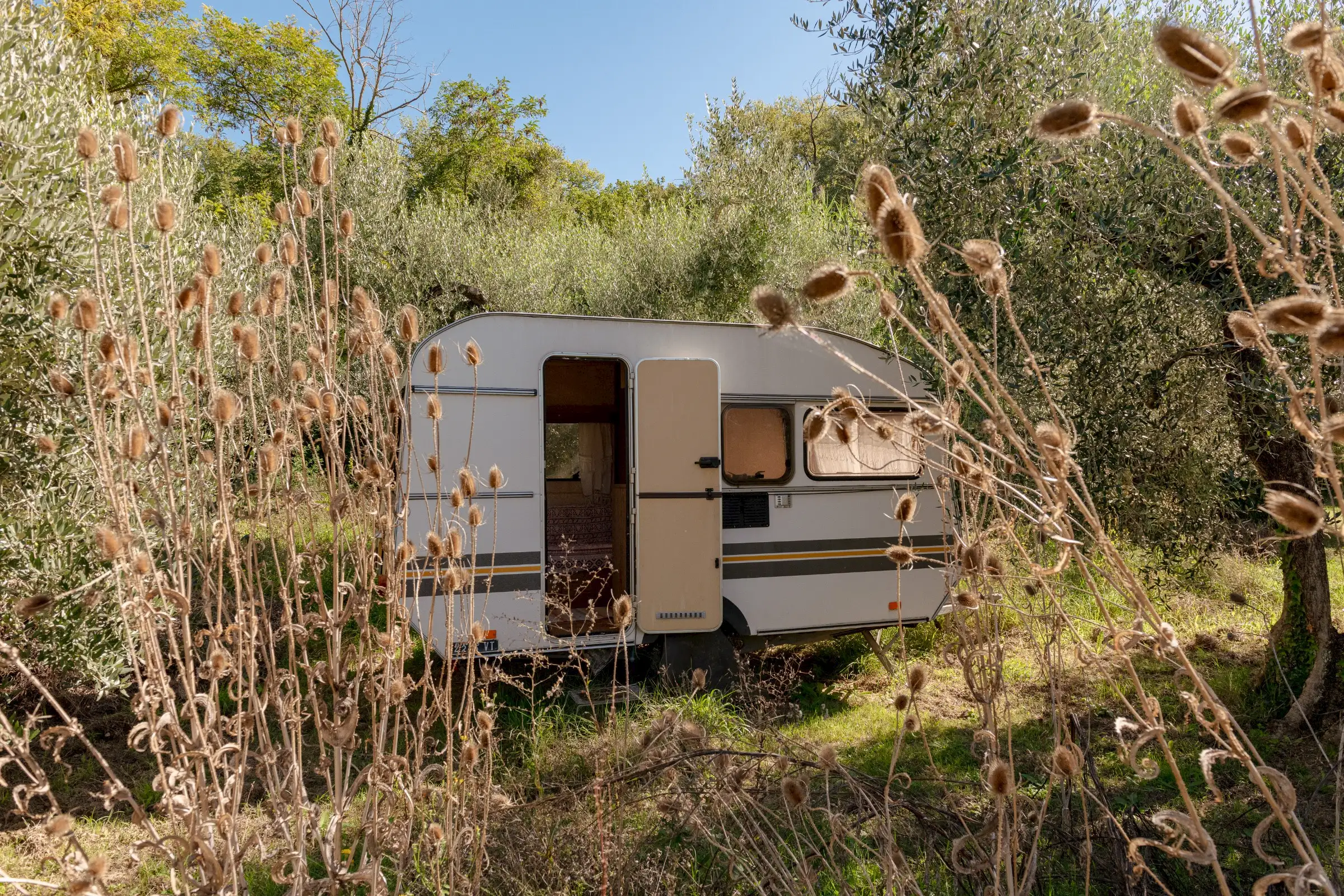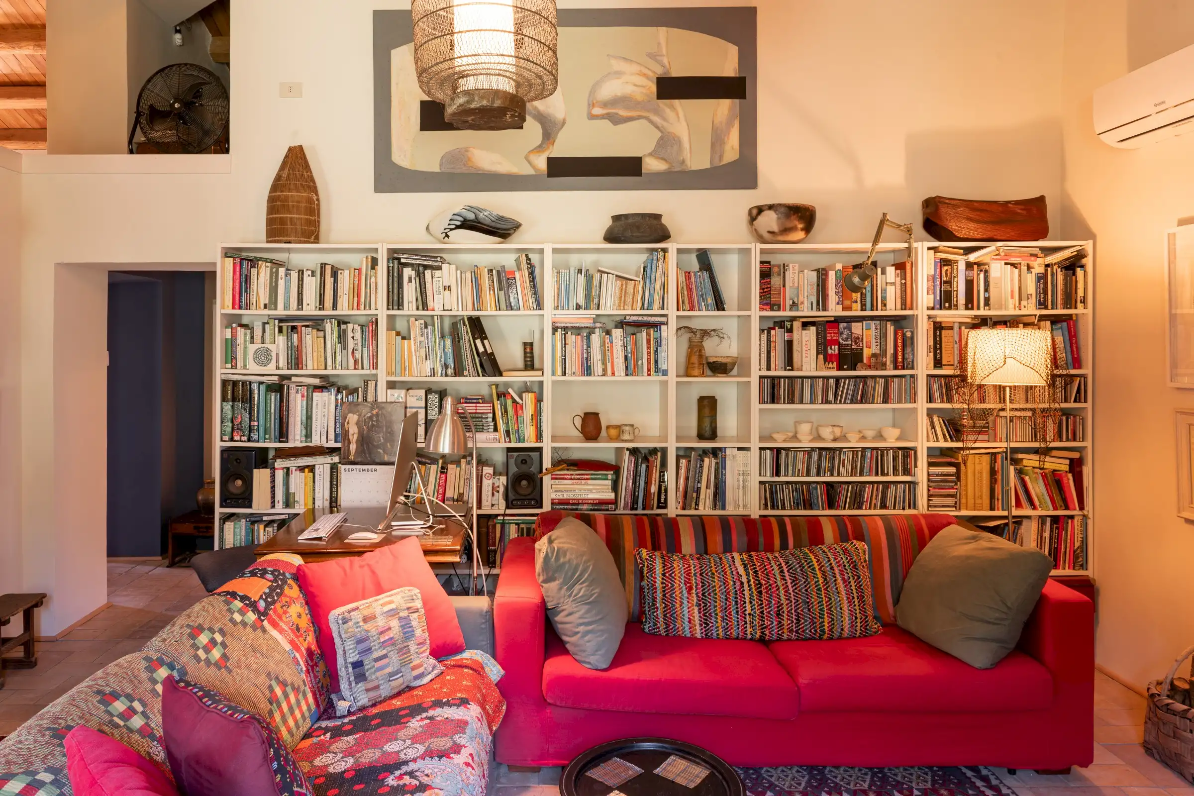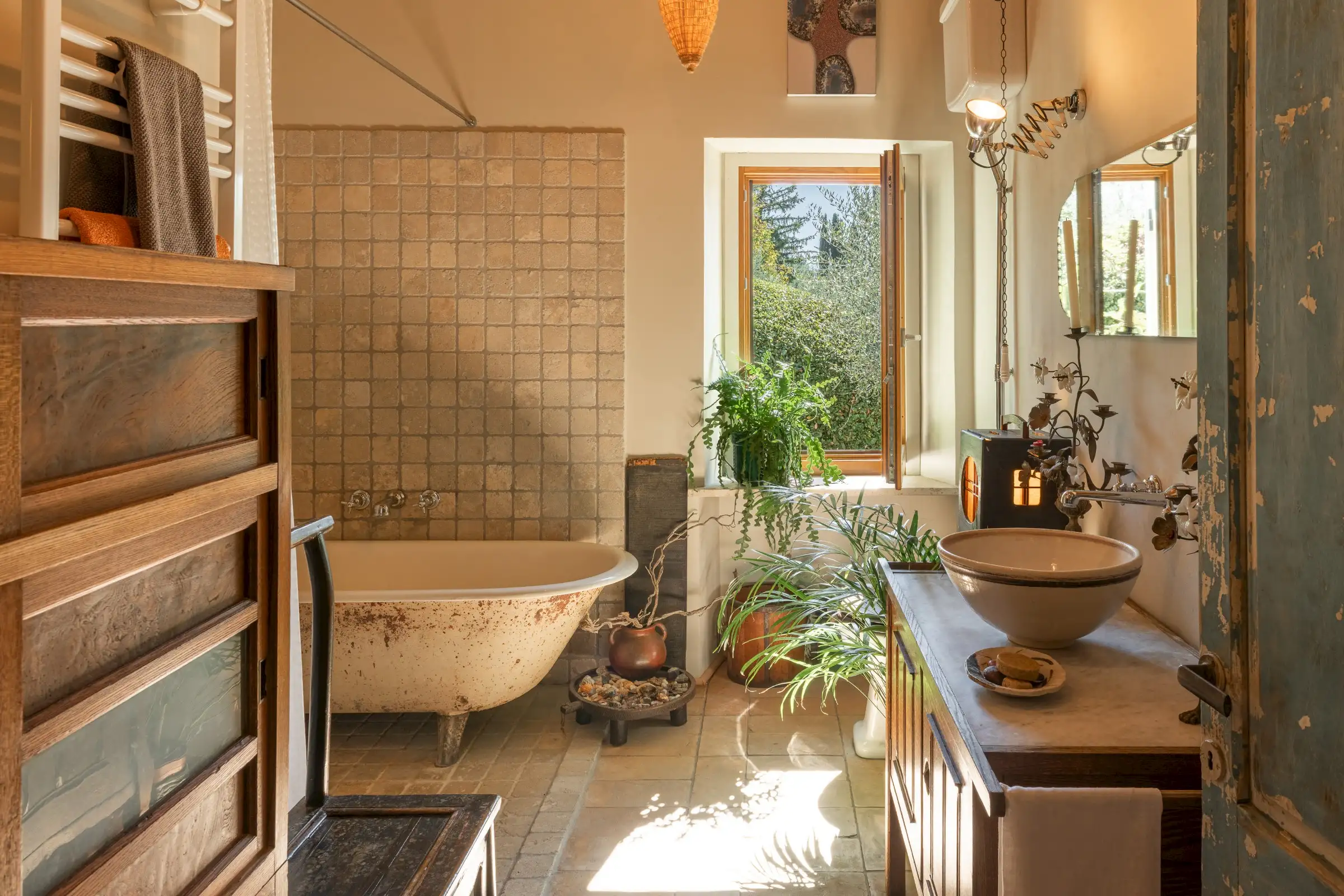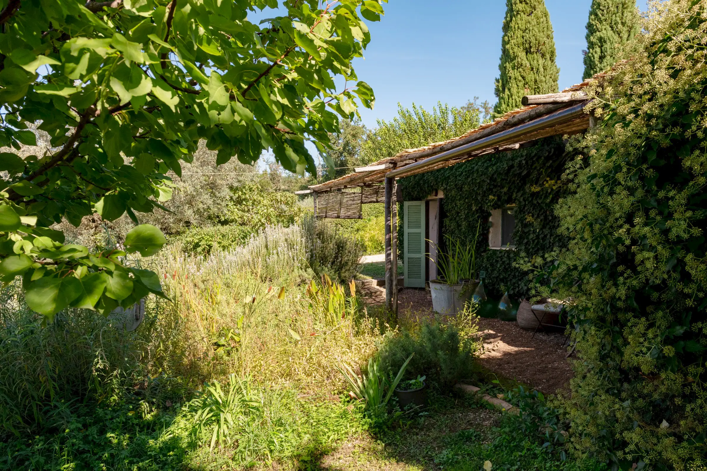 La Palombara fits squarely into this approach, telling a layered story that adds depth where a modern look of restoration might have been dominating. Spread over two floors, the home’s internal flow—and its easy dialogue between indoors and out—underscores the simple truth: La Palombara is a lovely house, perfect for both summer and winter. Cozy interiors, warm natural materials, and an emphasis on proportions define the aesthetic; vintage pieces are integrated seamlessly into the overall design, as well as old original materials, carefully selected and wisely used.