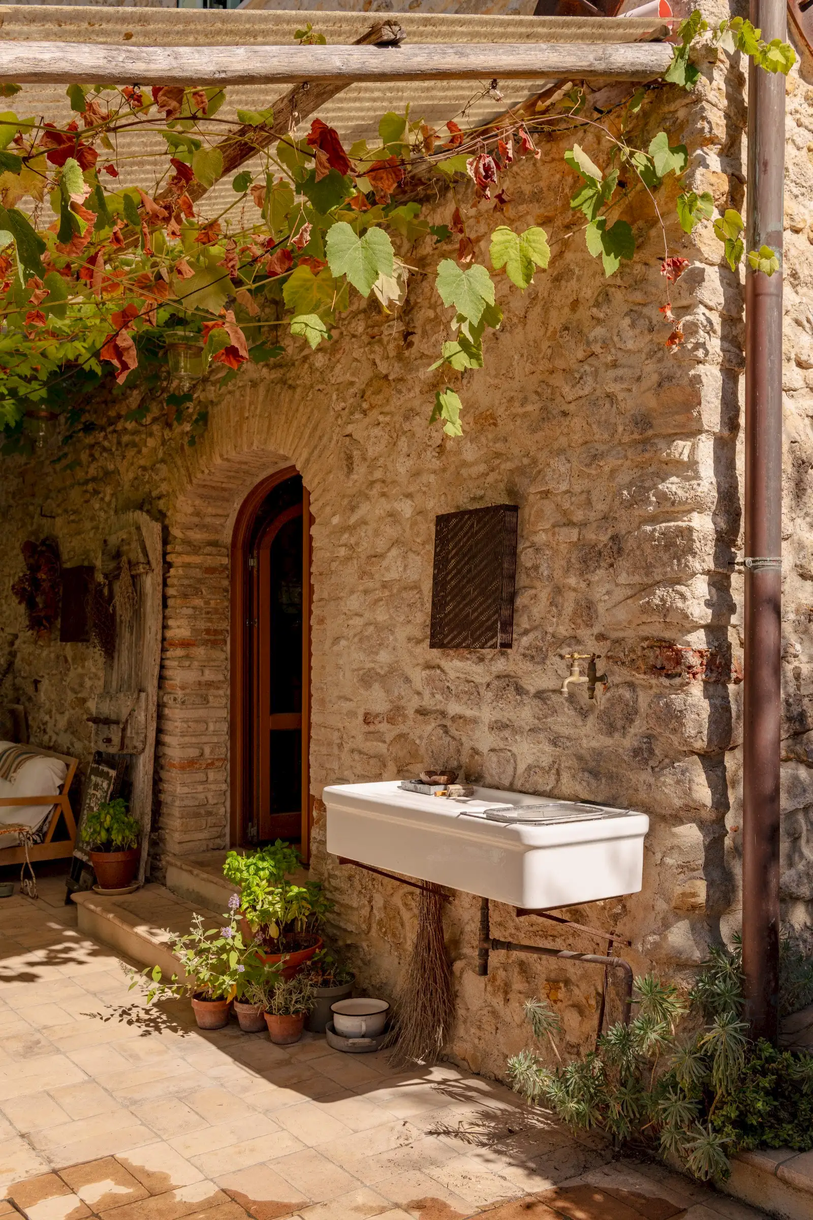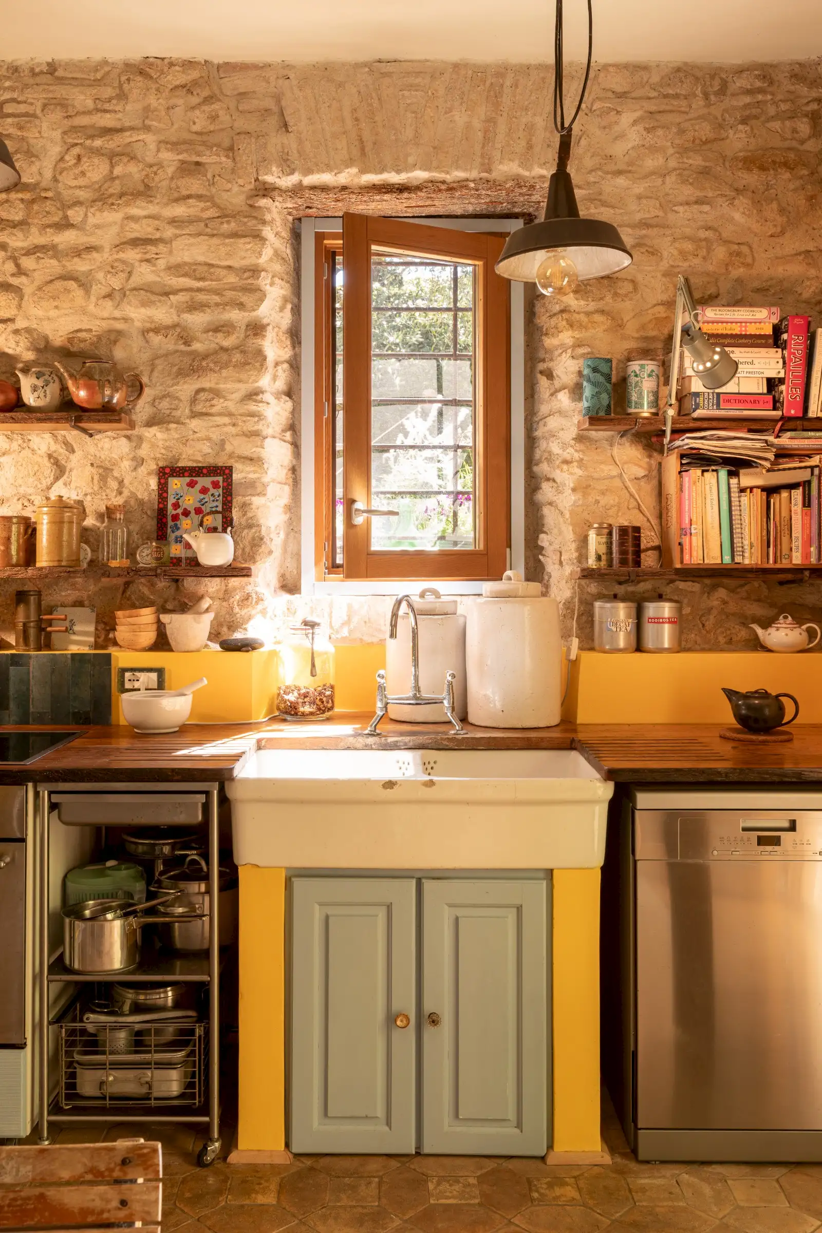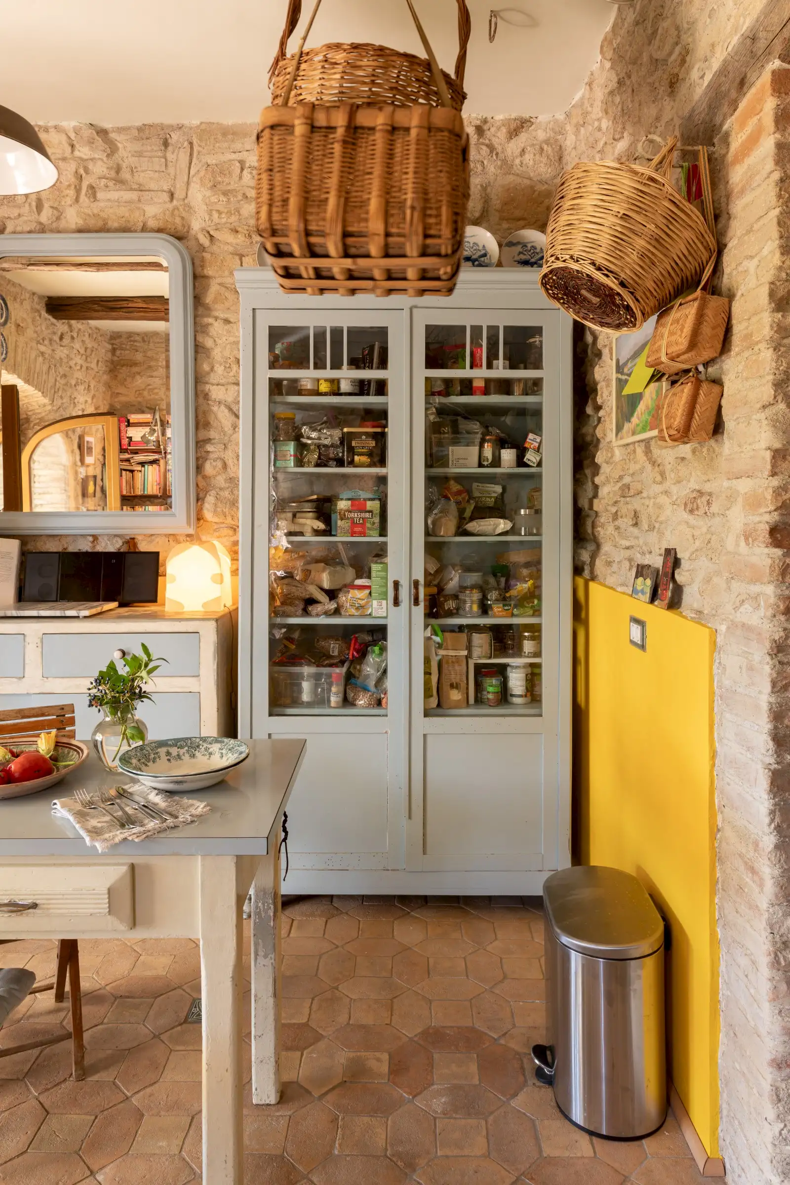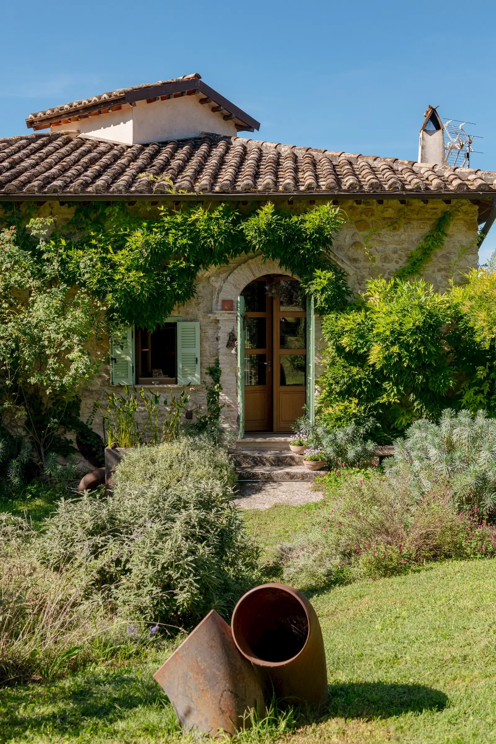 Plunged in the beautiful Sabina area, Northern Lazio, La Palombara is a stone exposed house with garden that forms a self-contained whimsical world. It is the definitive statement of the past years in design: eclecticism and sustainability are the key to interpreting the restoration