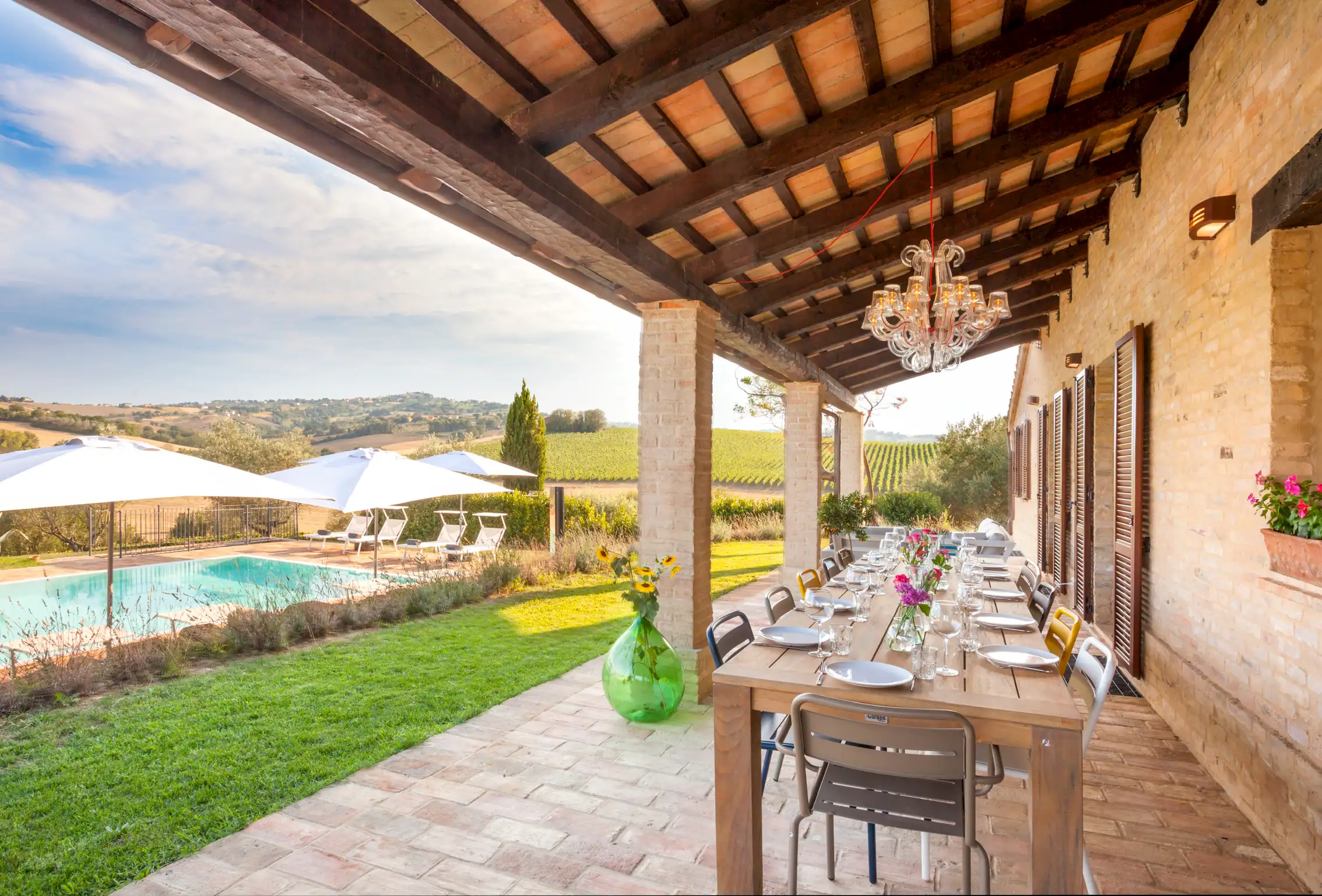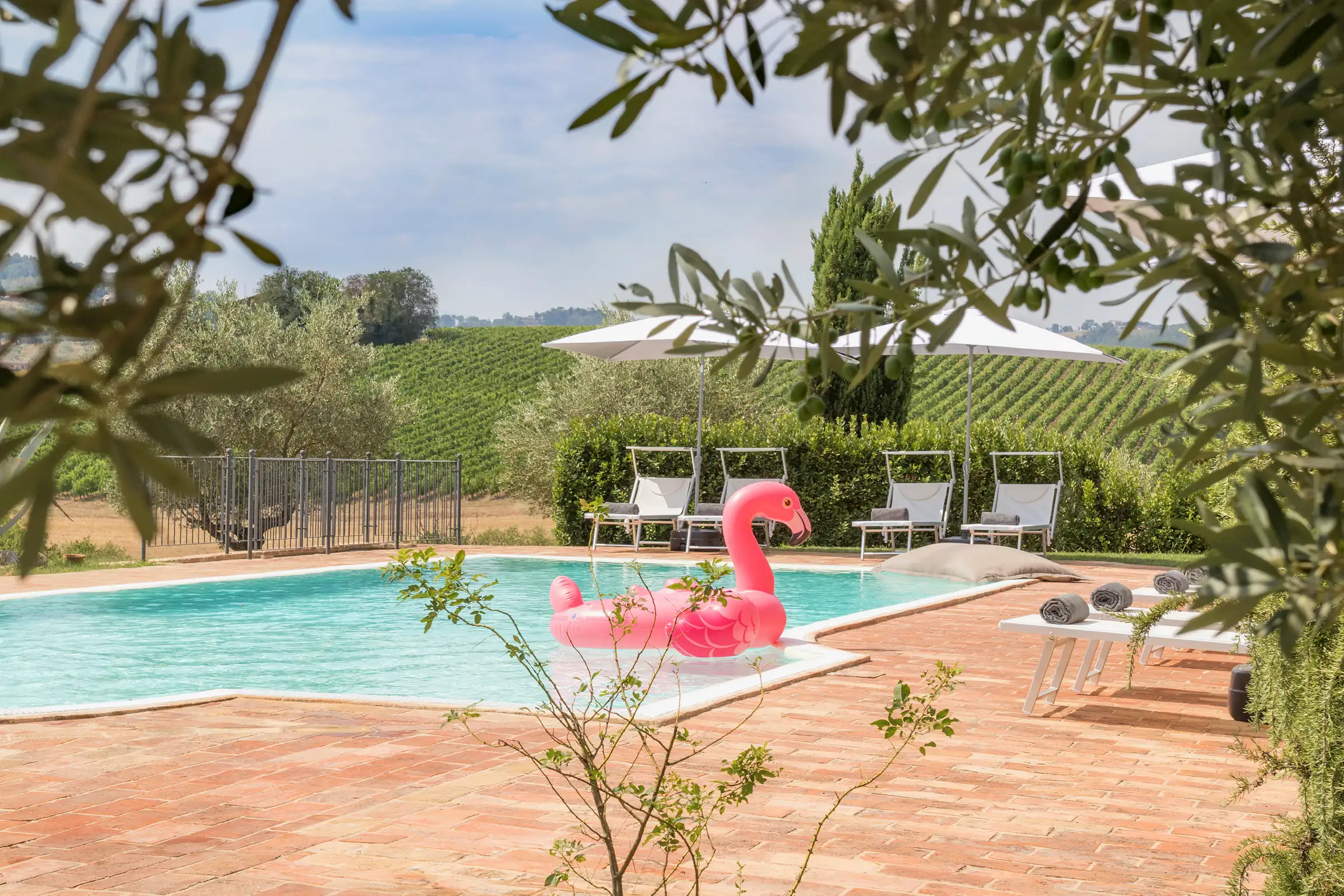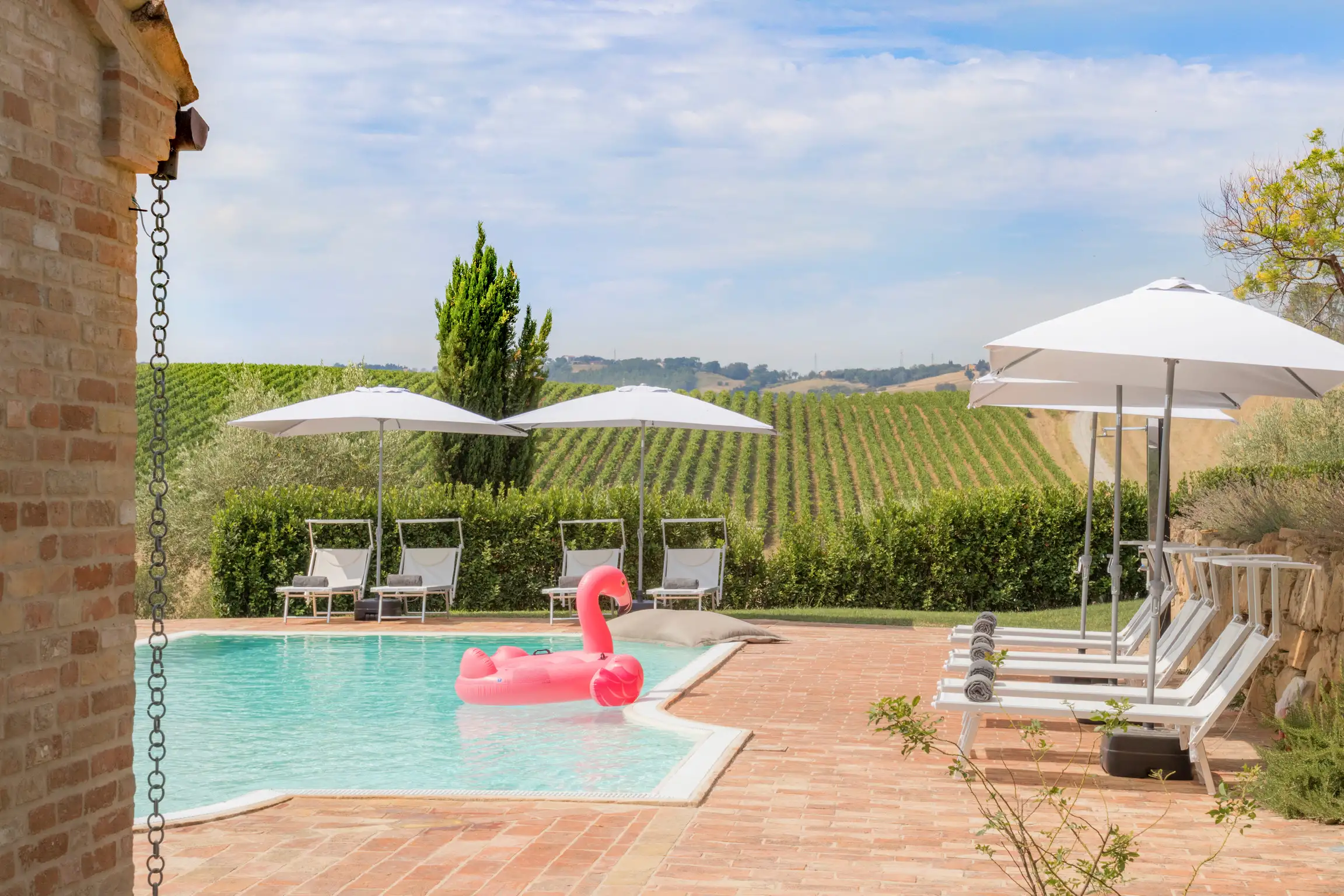 Being only 30 car minutes away from the seaside, and boasting a unique setting in the countryside of Le Marche, Loro Piceno offers a equisitel farmhouse, with infinity swimming pool, large living rooms and garden all around, very well positioned in the short term rental business.