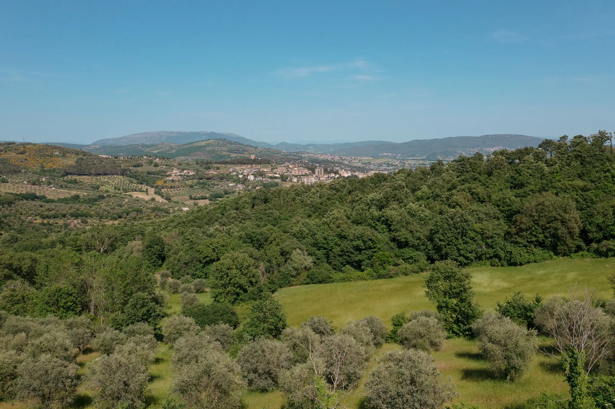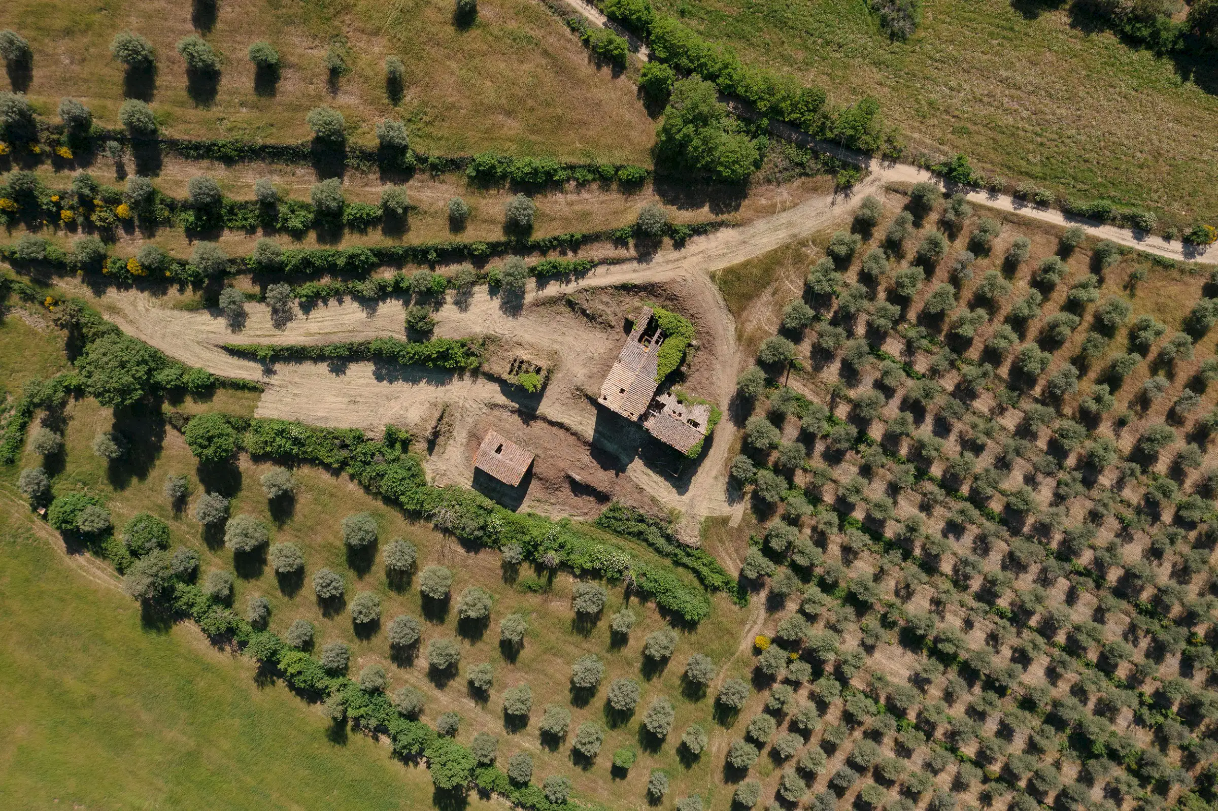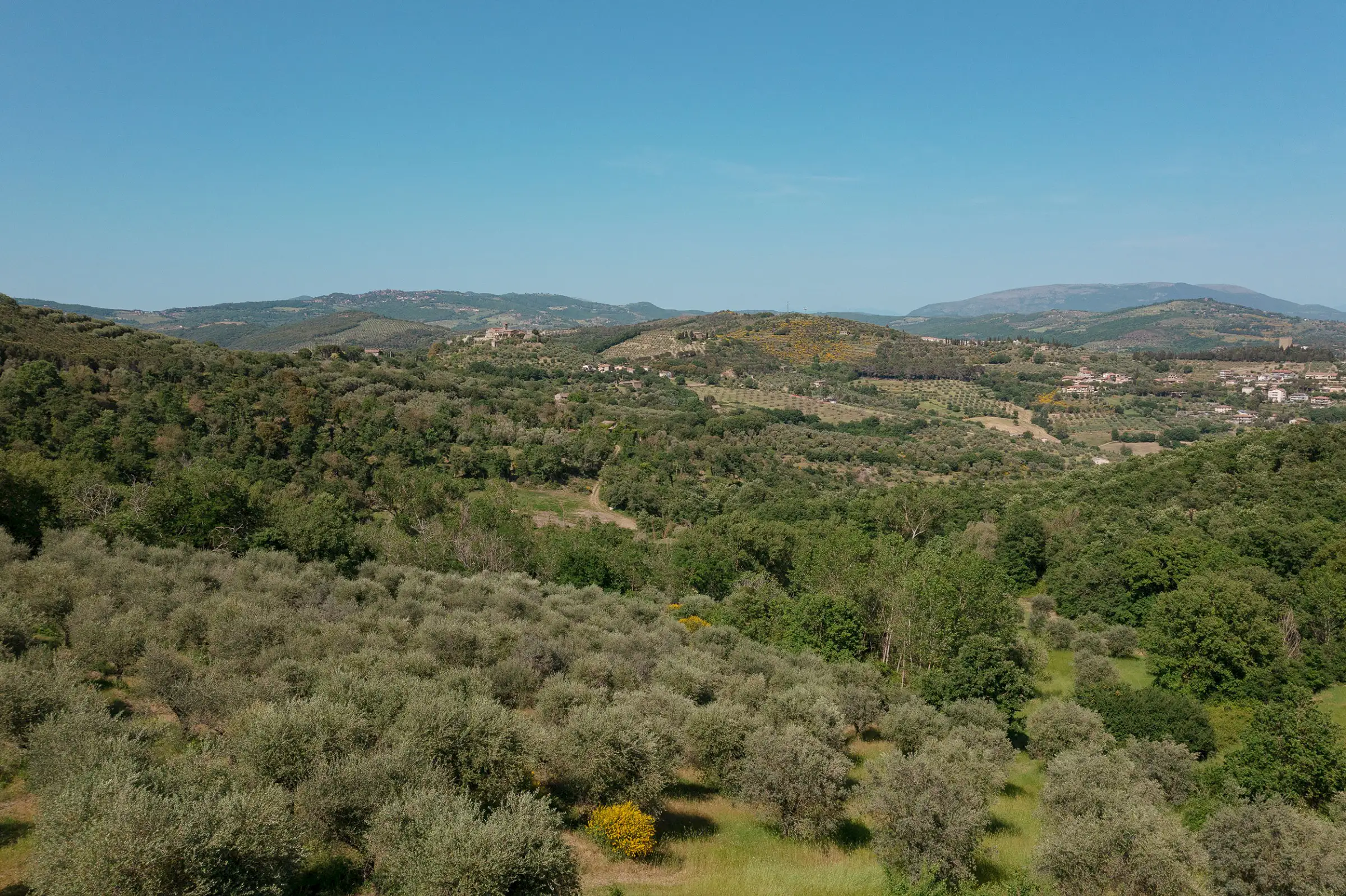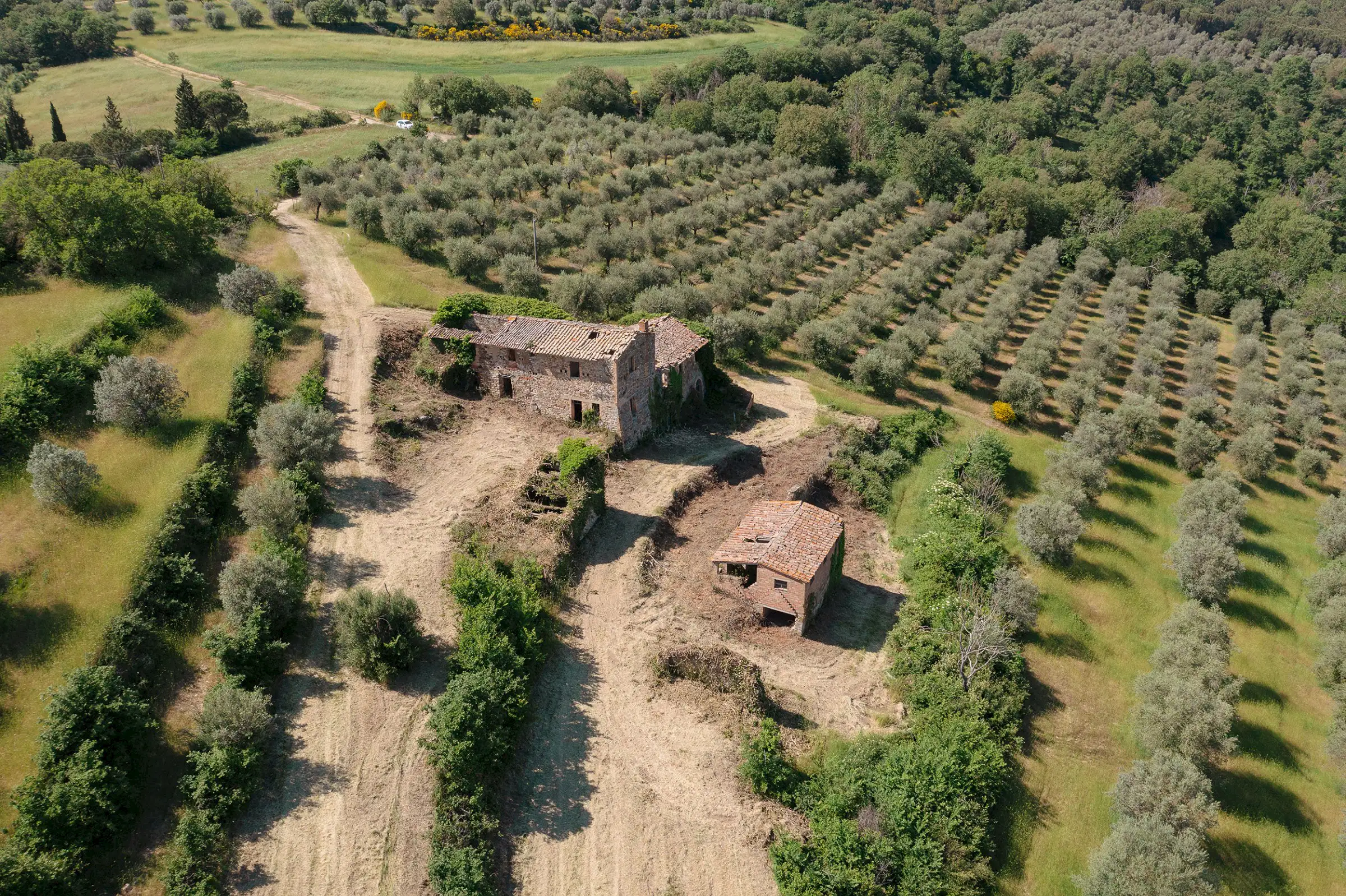 Montelago is the classic farmhouse dating back to AD 1800, typical of the countryside around Lake Trasimeno. Surrounded by olive trees and a hilly environment, with a skilful renovation, it can become a large property in a typical setting of the Umbrian countryside. The views from Montelago are very open: there is the town of Magione on one side, with the Castle of the Knights of Malta in the main view, and the small village of Montecolognola in the distance, while from the top of the land you can also get a glimpse of Lake Trasimeno. The property is located in a private area surrounded by green, woods and beautiful natural setting. Its position is strategic as it enjoys great privacy.The property consists of a main building of about 430 square meters, on three levels and an adjoining ruin of about 140 square meters. The farmhouse comes along with approximately 7.5 hectares of land. Montelago has on its premises more than 500 plants of olive trees, some are even centenary plants and the production of excellent olive oil can be pursued.