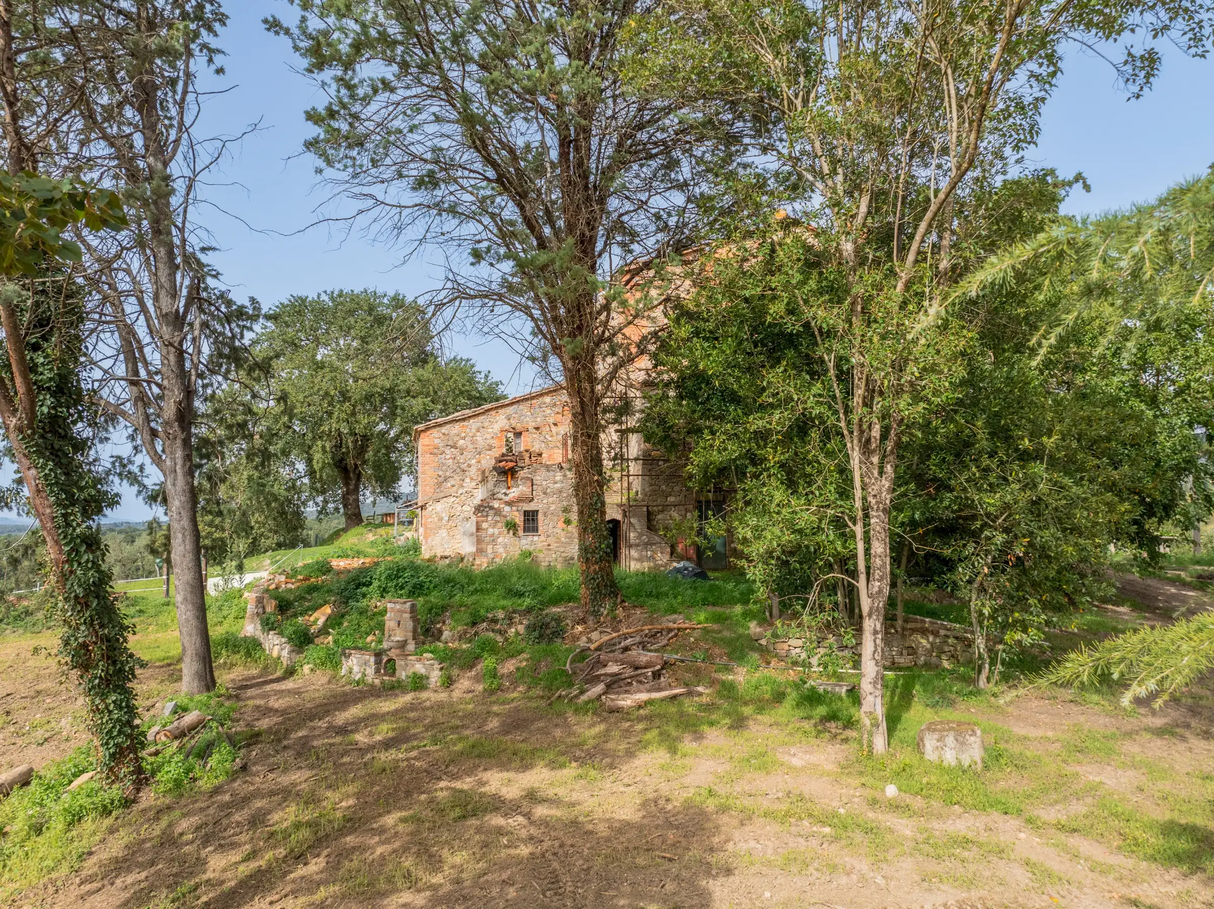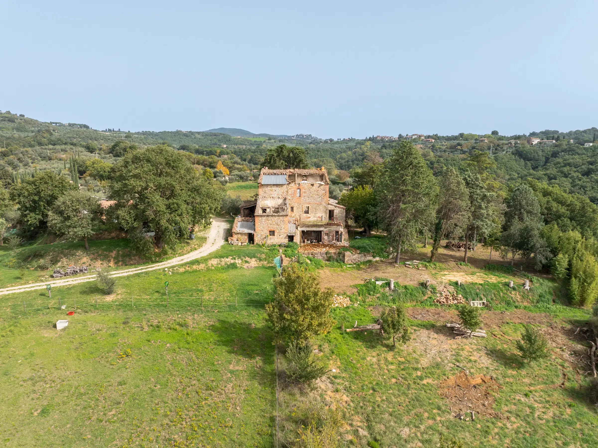 The large main house is currently in a state of disrepair, but its potential is impressive. The property is surrounded by beautiful countryside with mature trees and an olive grove of 200 trees. The views are magnificent, and permission will be given to landscape the garden and put in a pool.