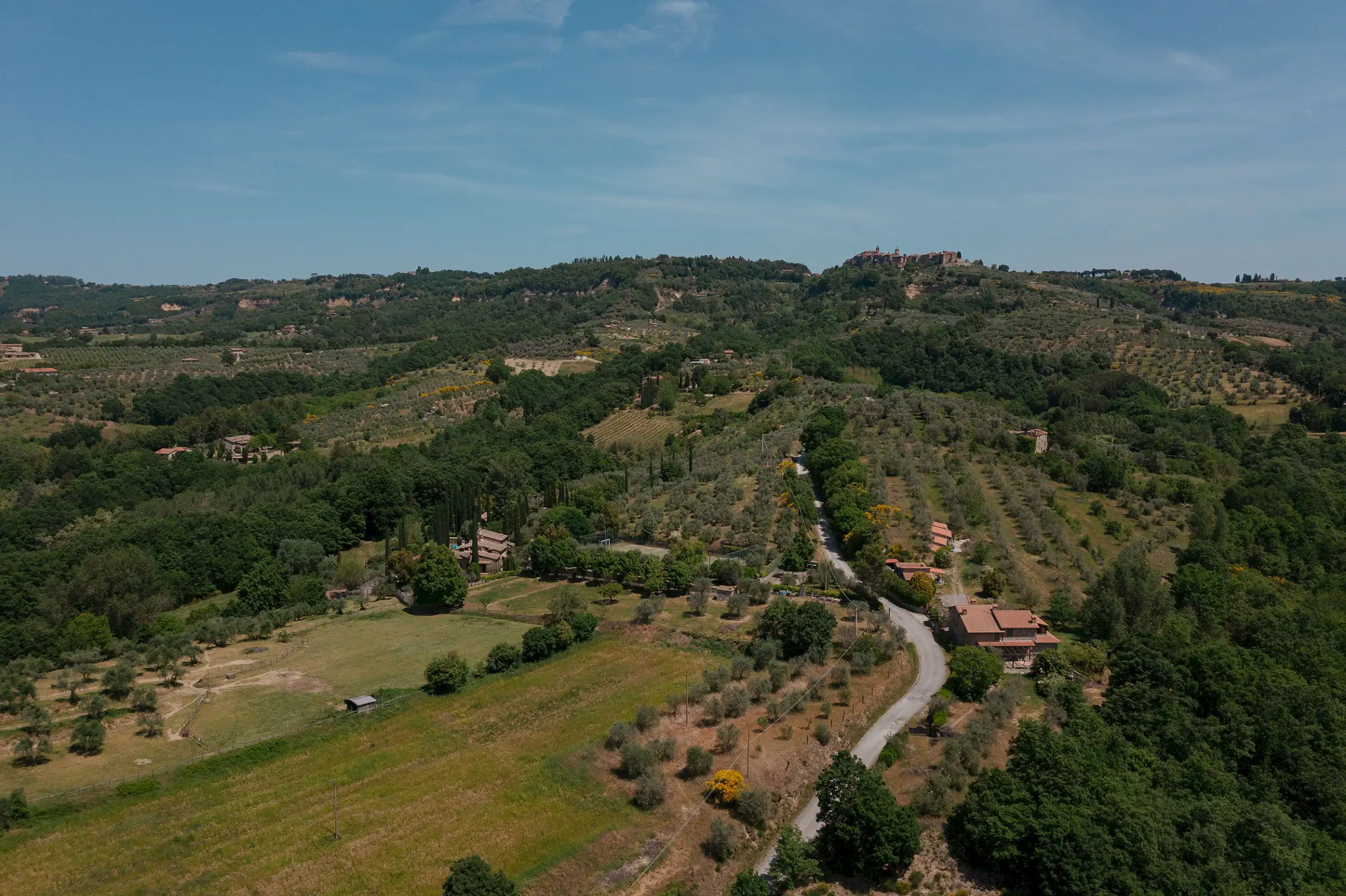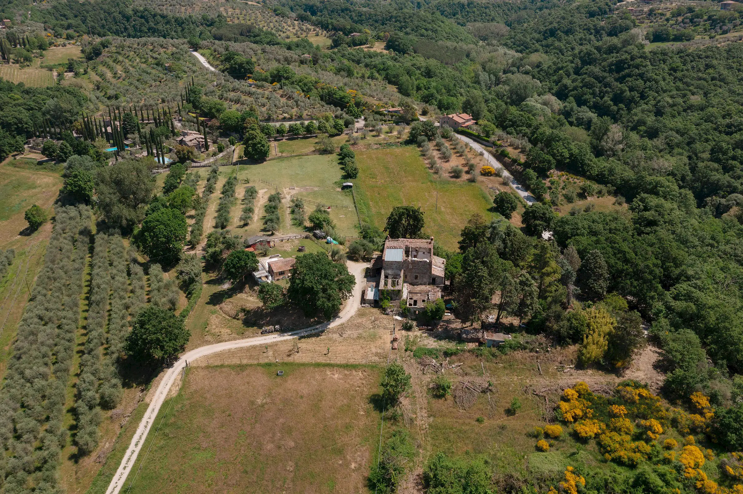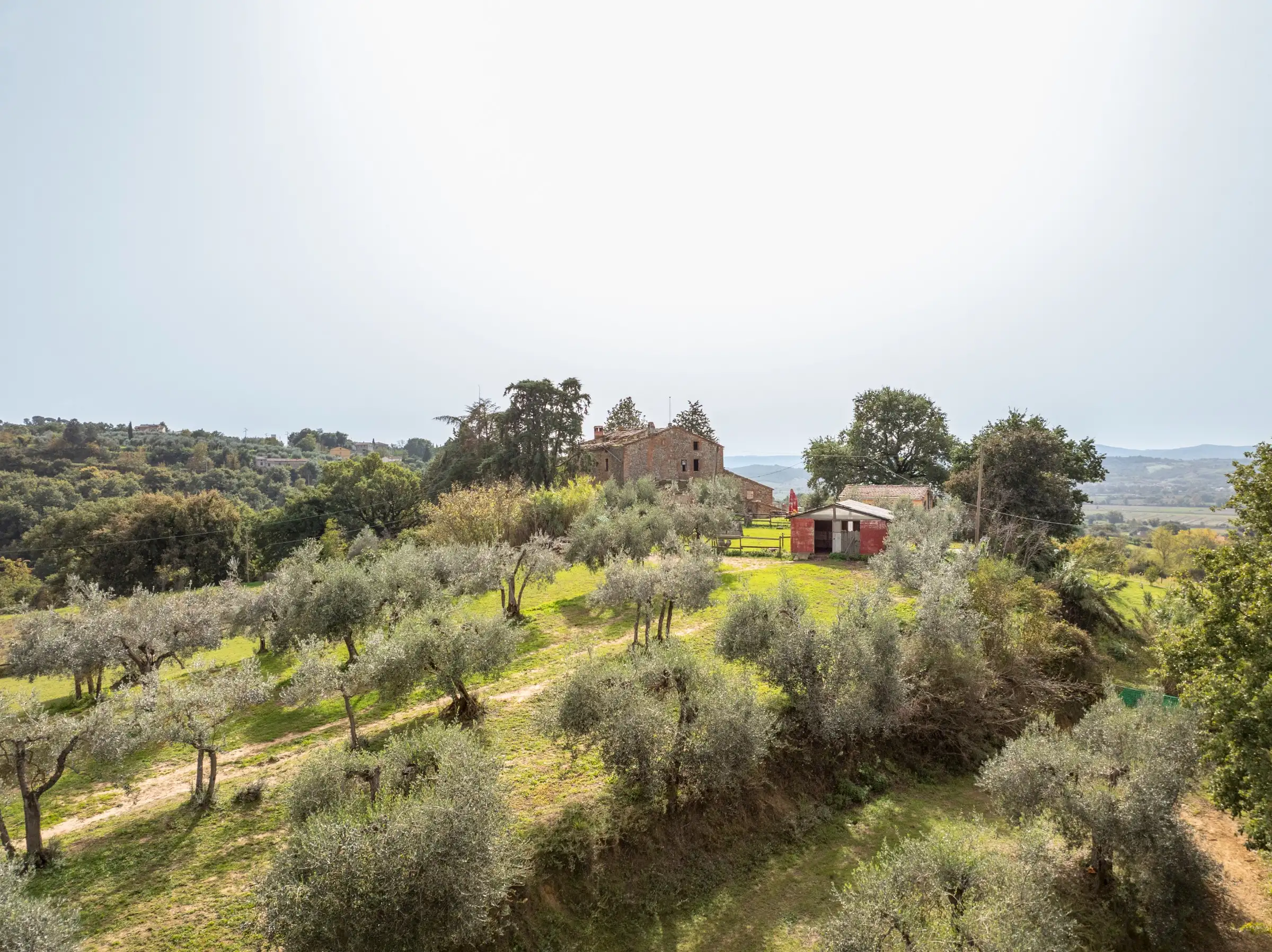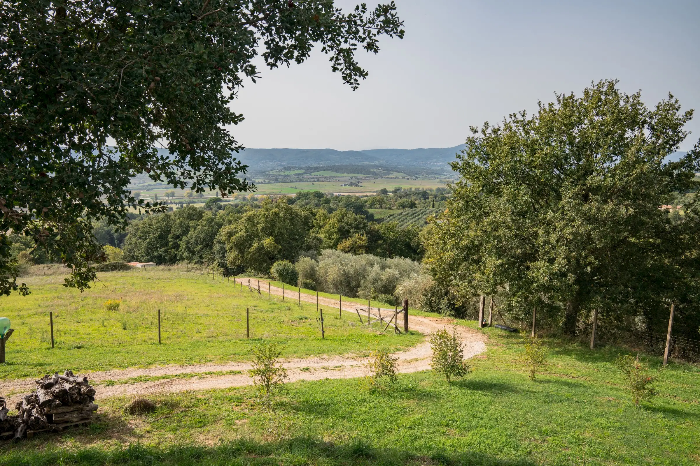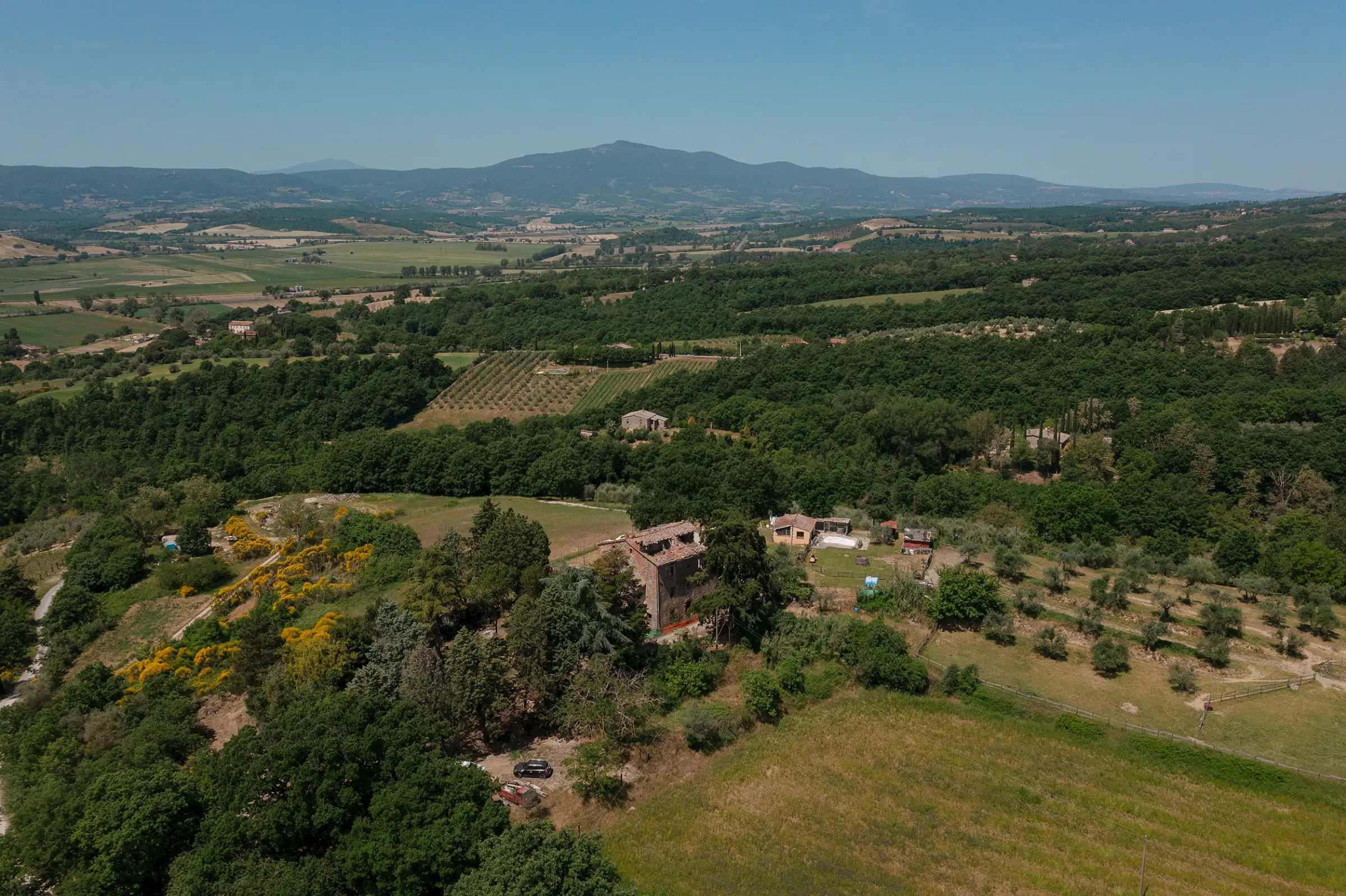 The property can be accessed from two sides by a private road that winds around the the main house. The extensive views include the Valdichiana valley in Tuscany in one direction, and the villages of Monteleone d’Orvieto with Montegabbiano behind, in the other.