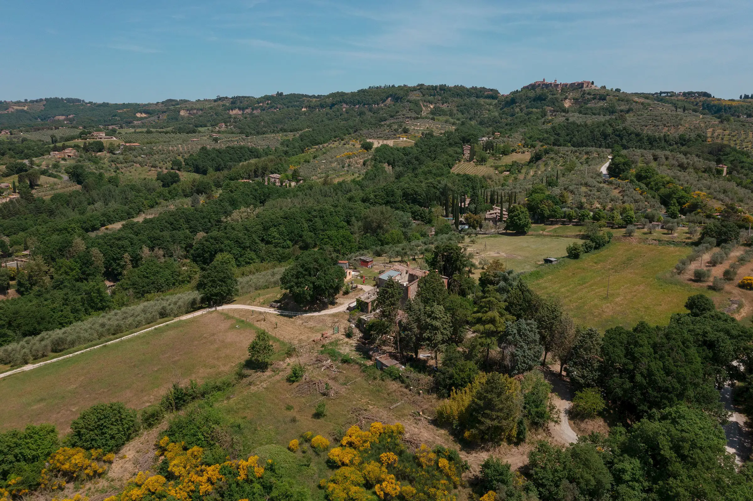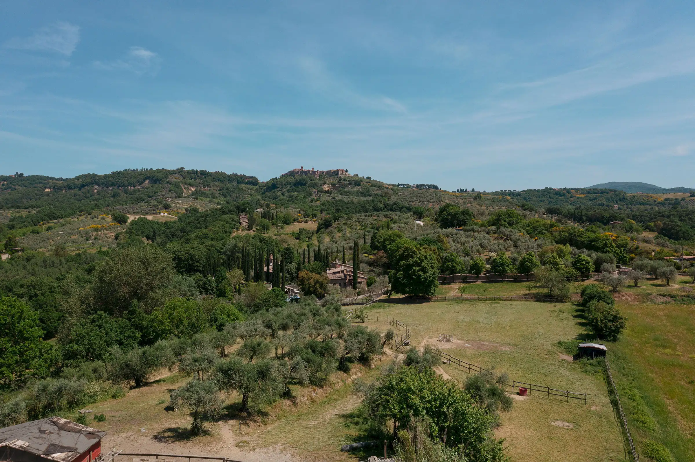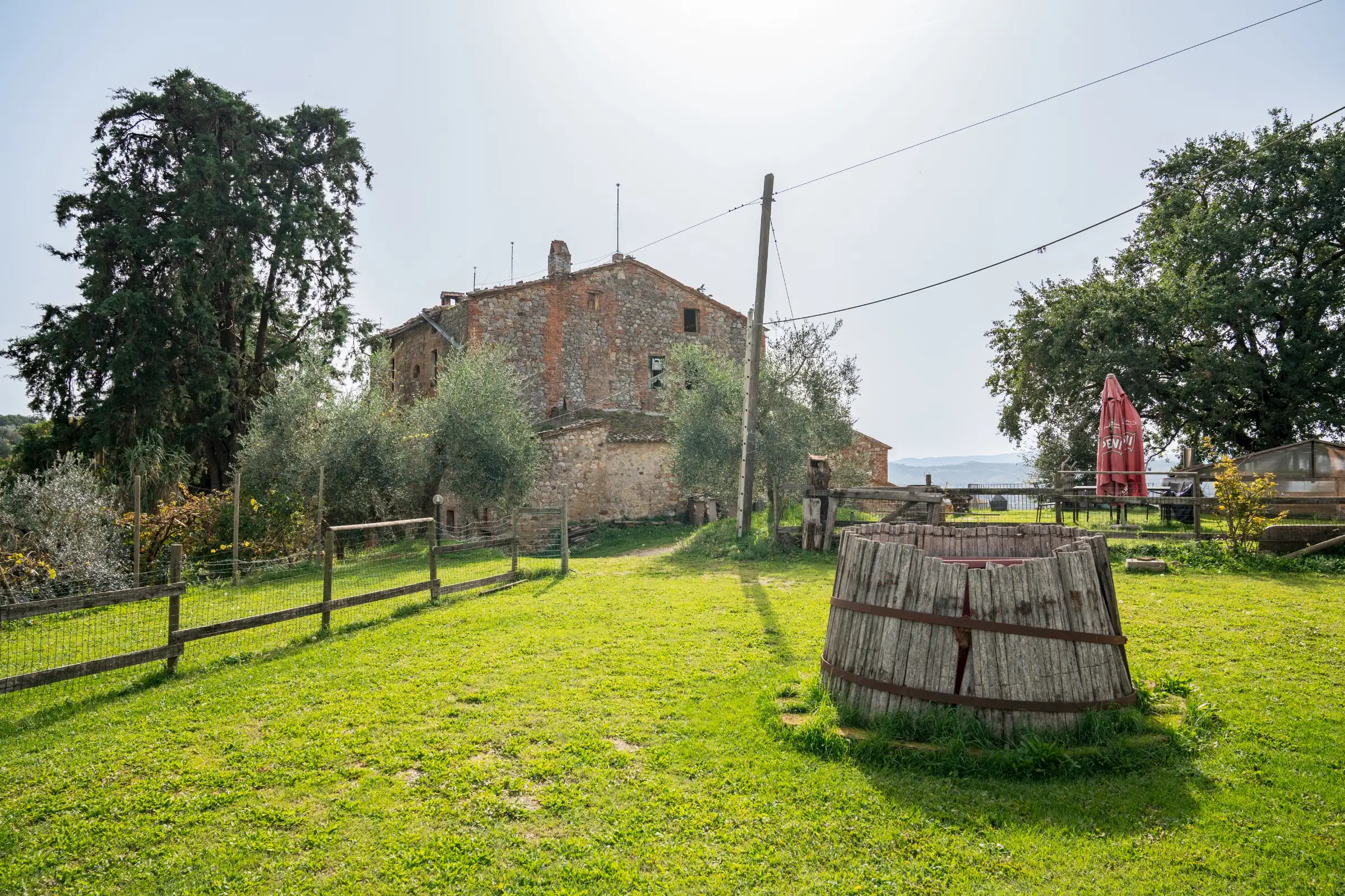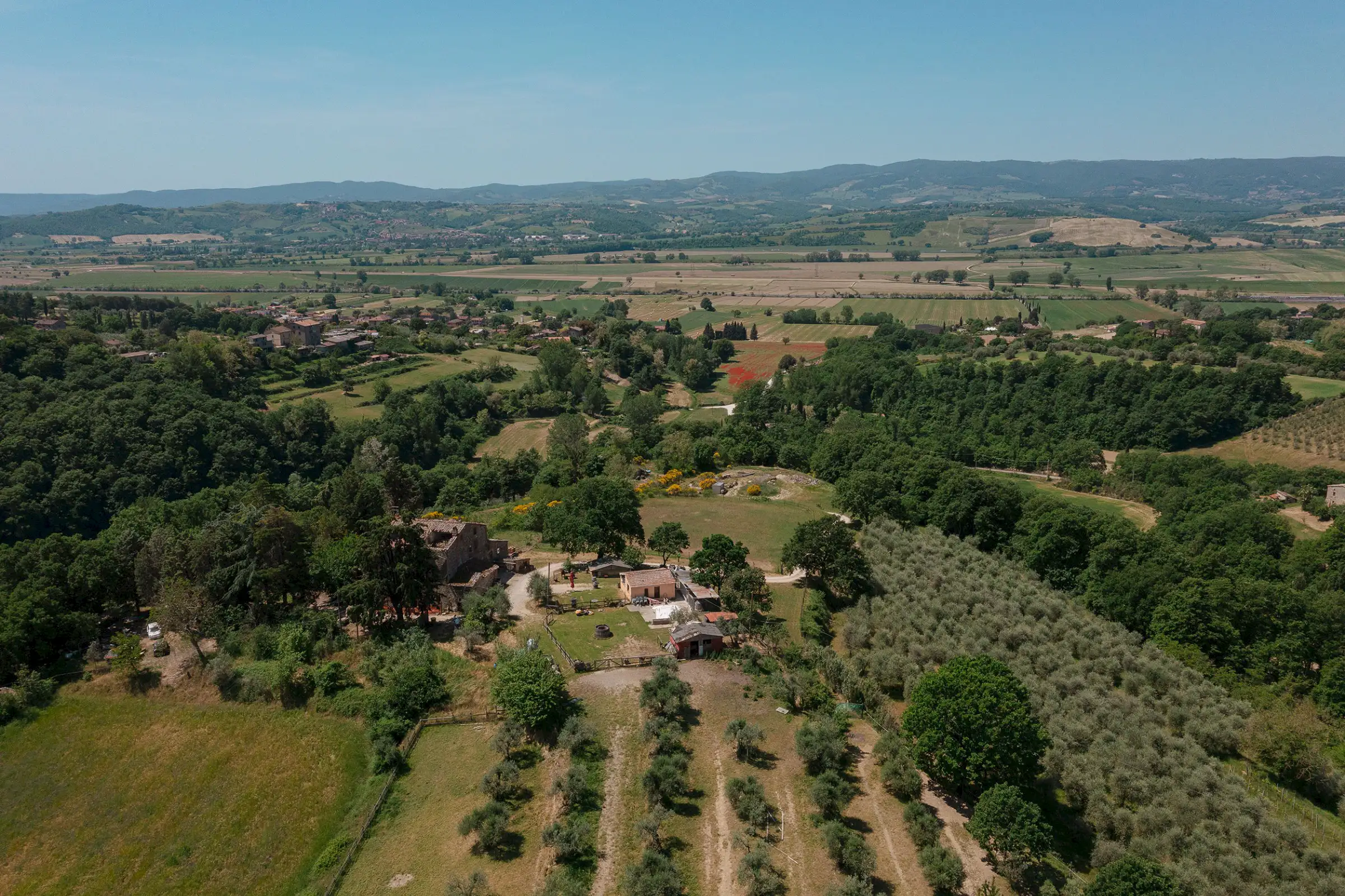The property can be accessed from two sides by a private road that winds around the the main house. The extensive views include the Valdichiana valley in Tuscany in one direction, and the villages of Monteleone d’Orvieto with Montegabbiano behind, in the other.
