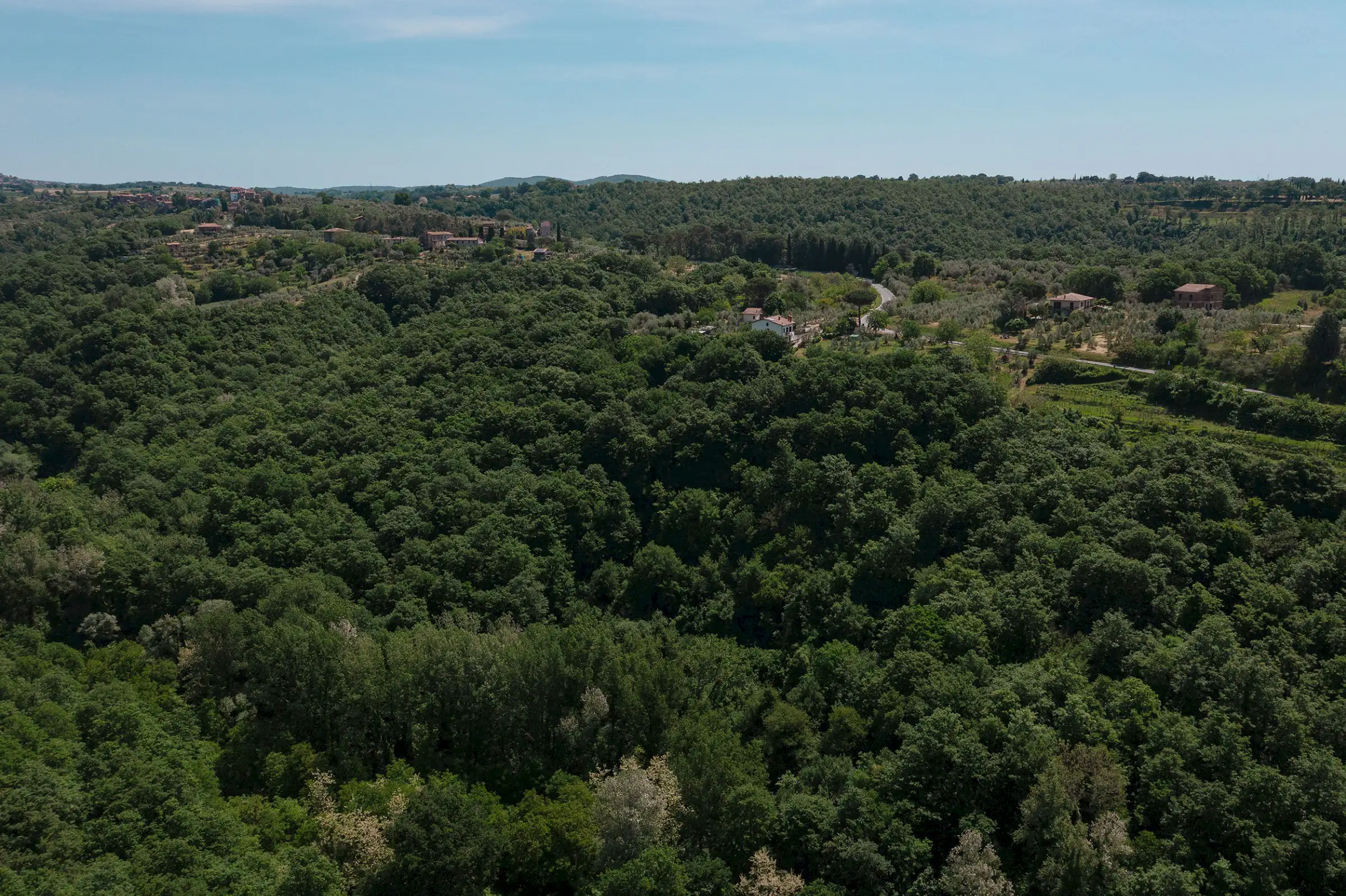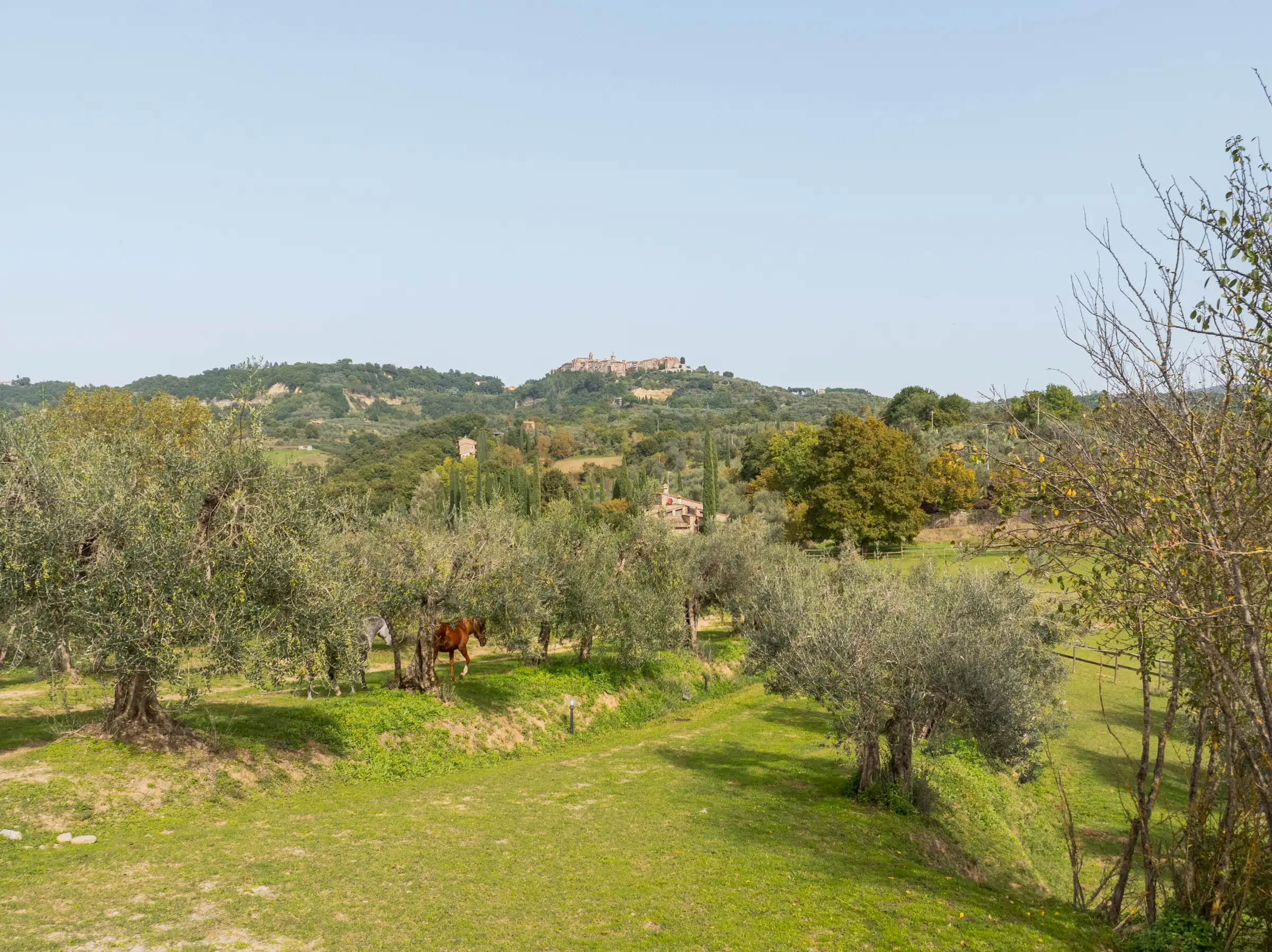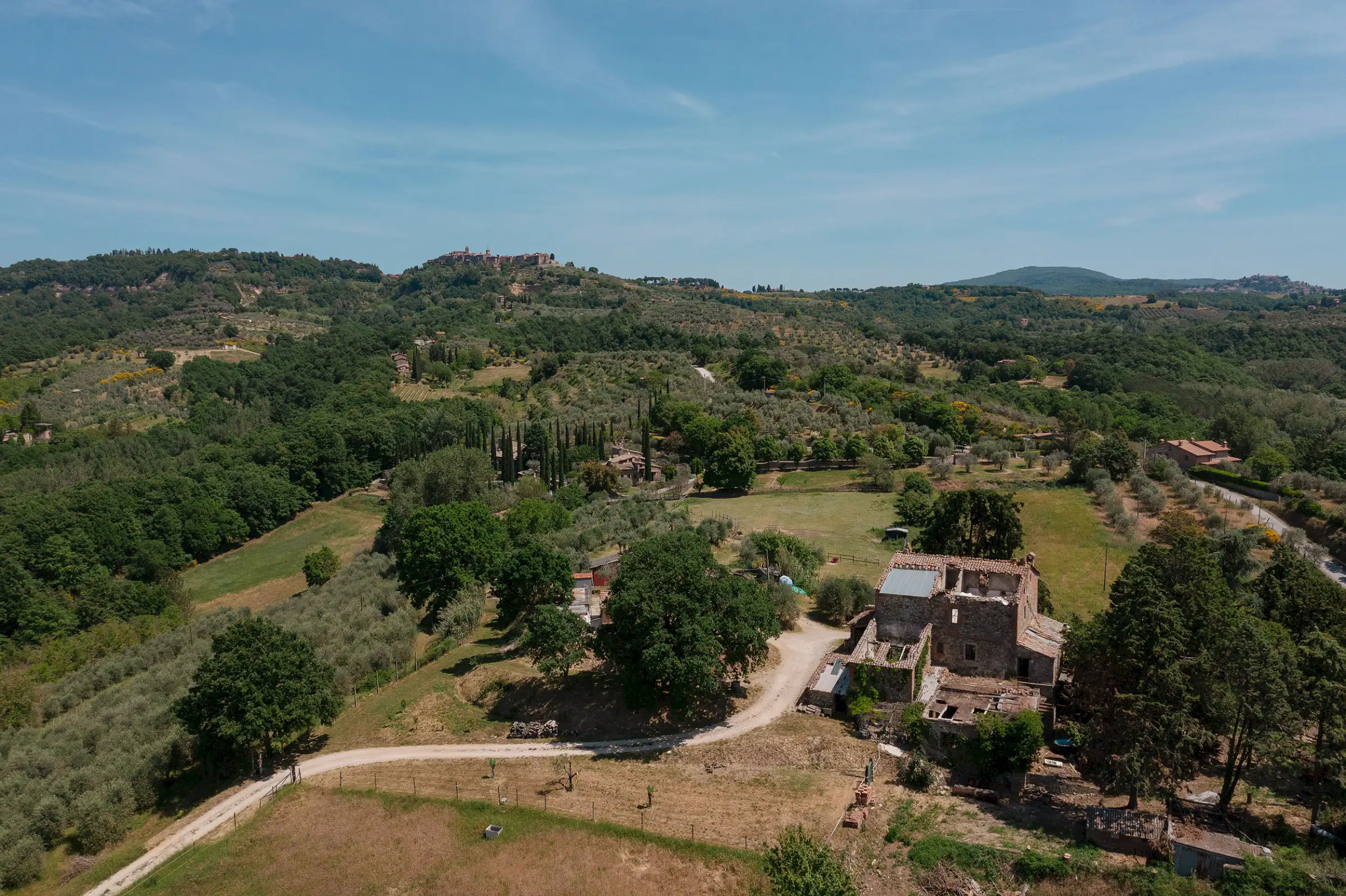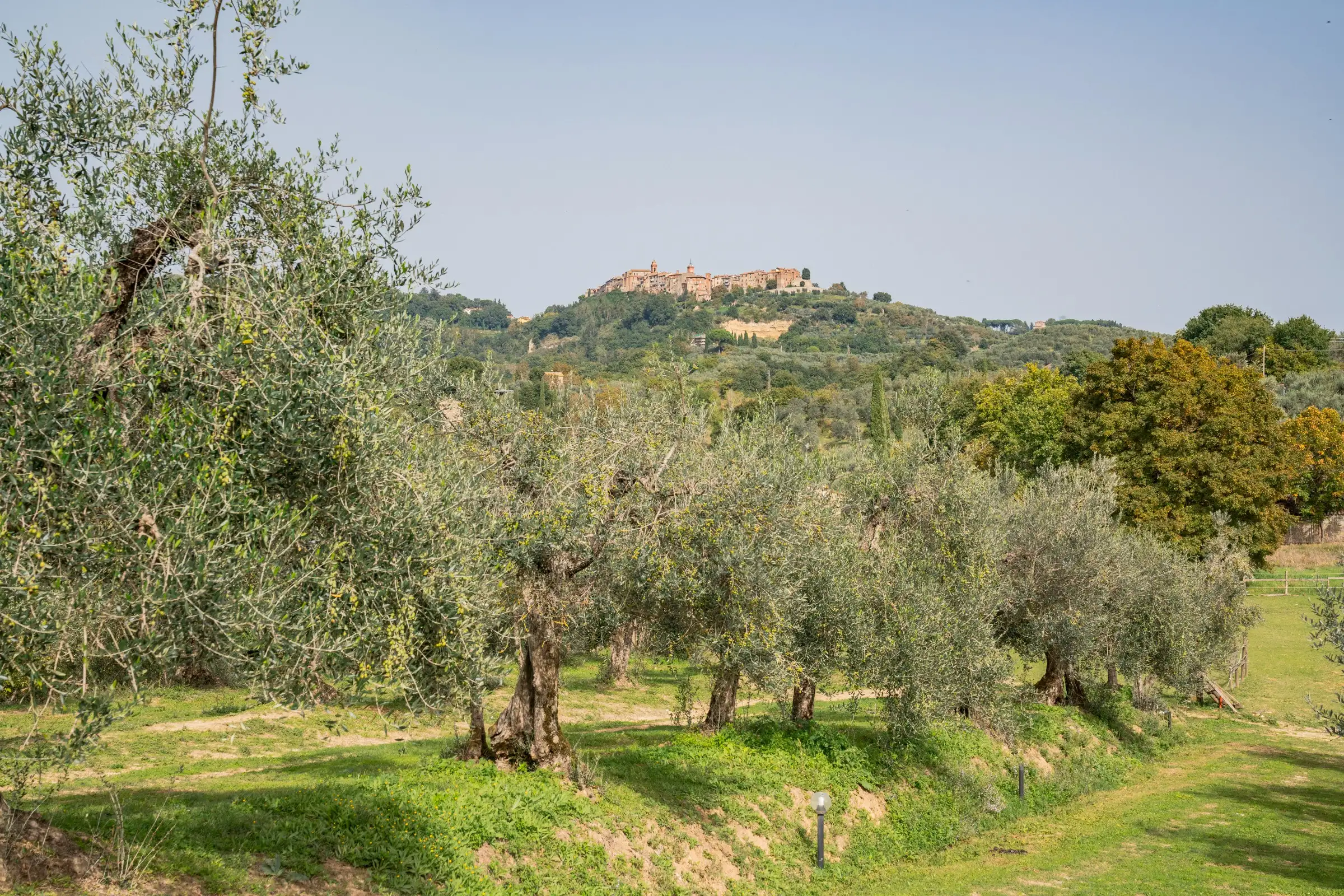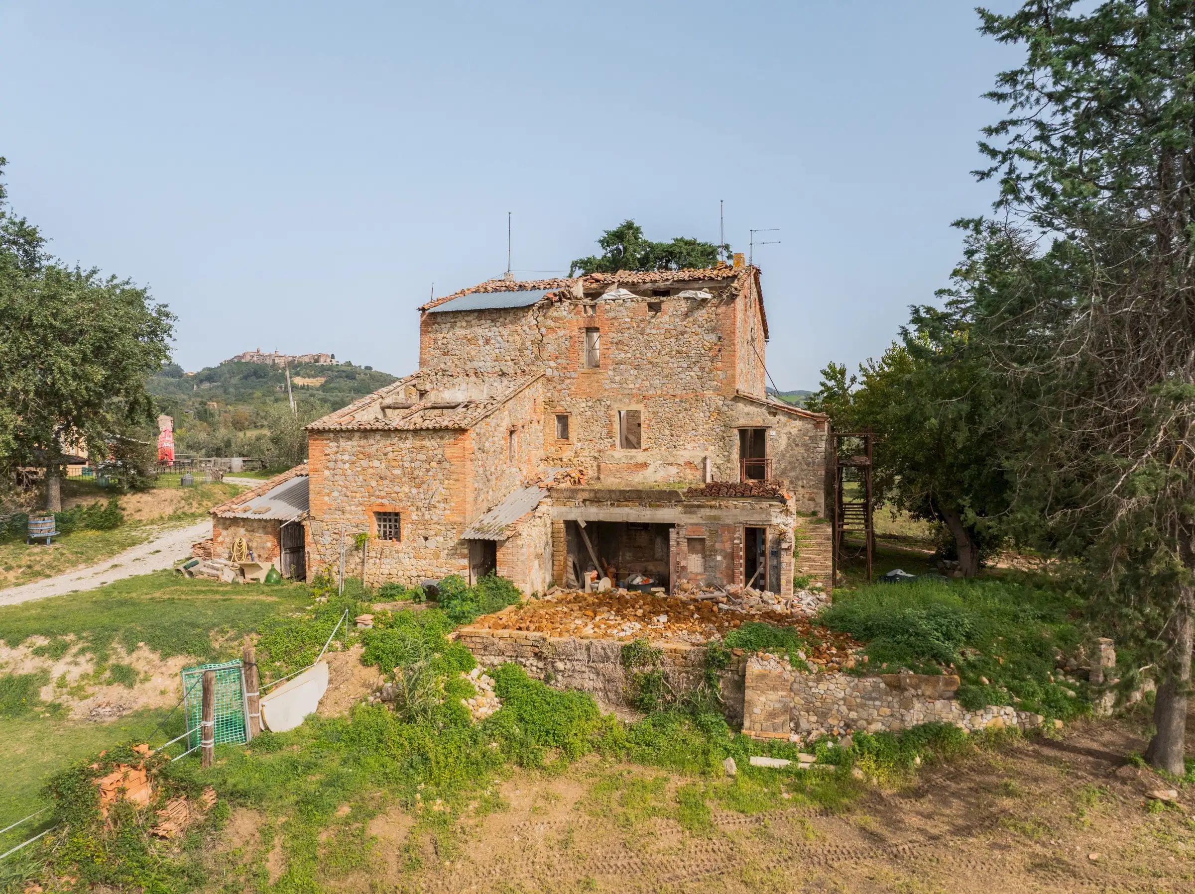 The property can be accessed from two sides by a private road that winds around the the main house. The extensive views include the Valdichiana valley in Tuscany in one direction, and the villages of Monteleone d’Orvieto with Montegabbiano behind, in the other.