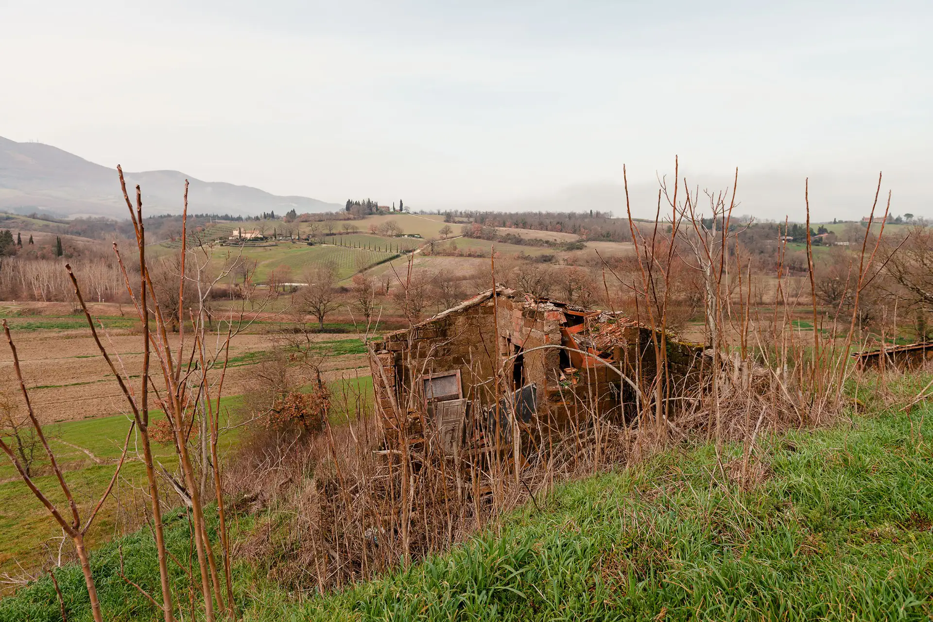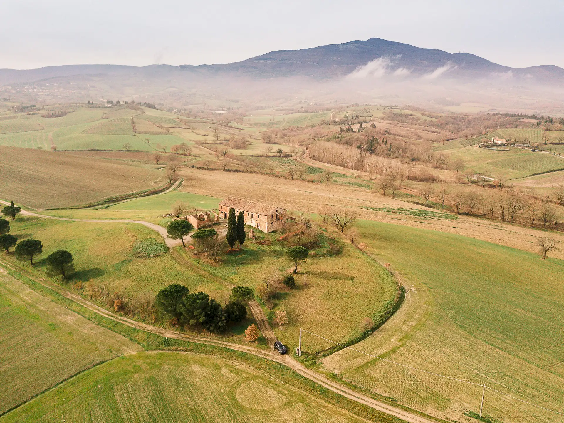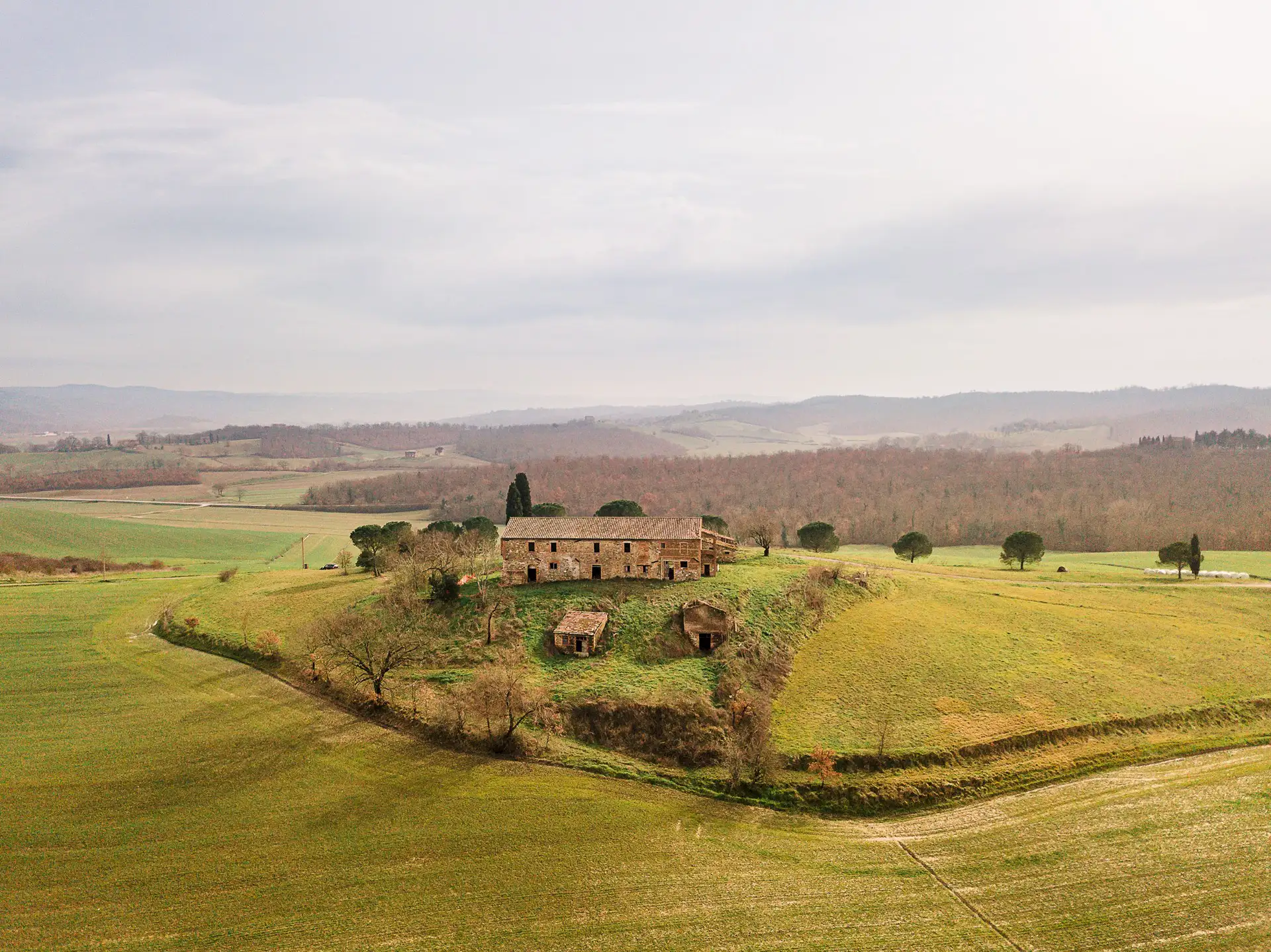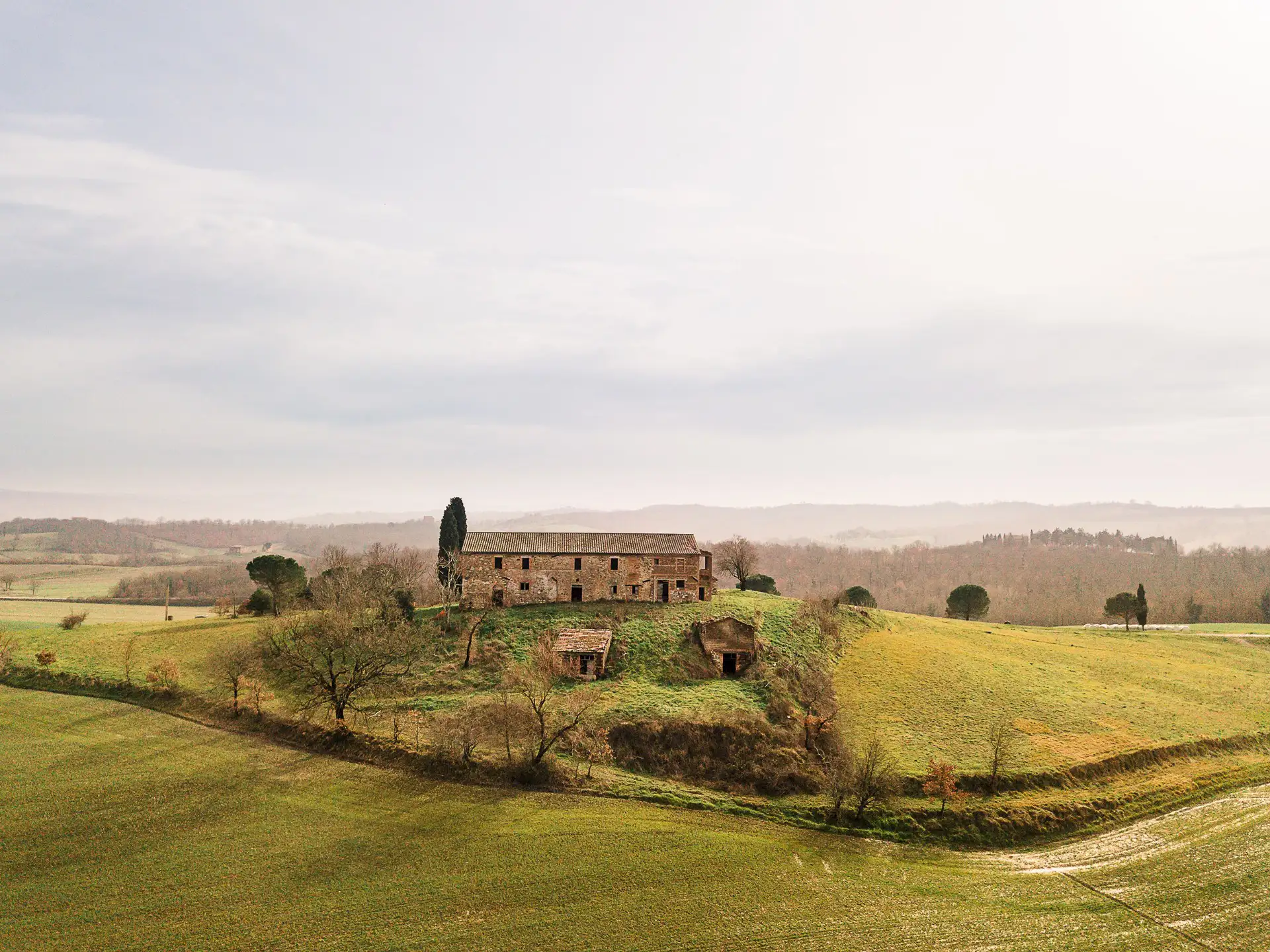 If you drive past Città della Pieve and get closer and closer to the border with Tuscany, right there where the Valdichiana begins, we come to this unique property ready to be renovated. Podere Mazzuoli stands proudly on top of a hill, with some cypress trees around it, cultivated and well-kept fields, and with its character, a little Umbrian and a little Tuscan.