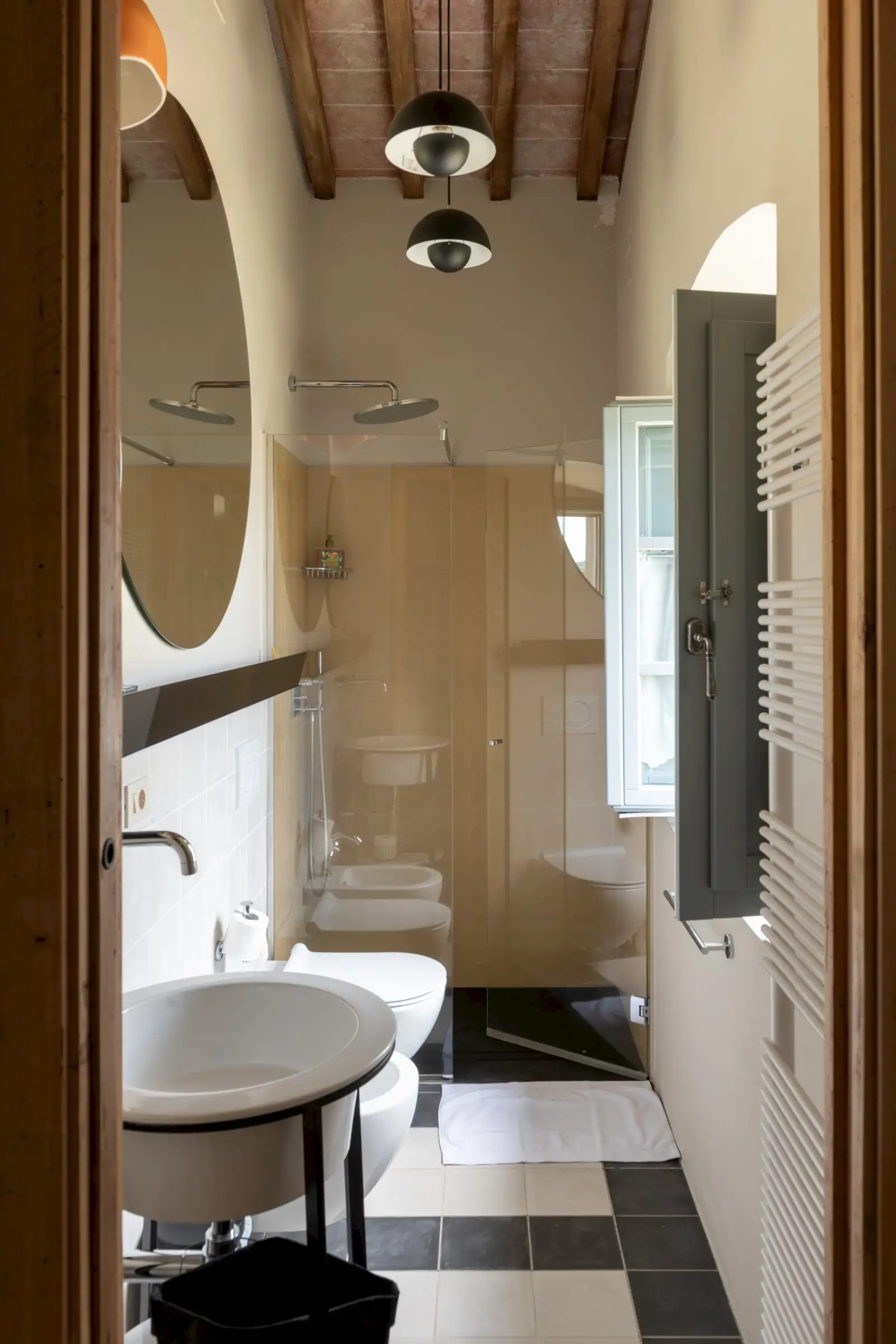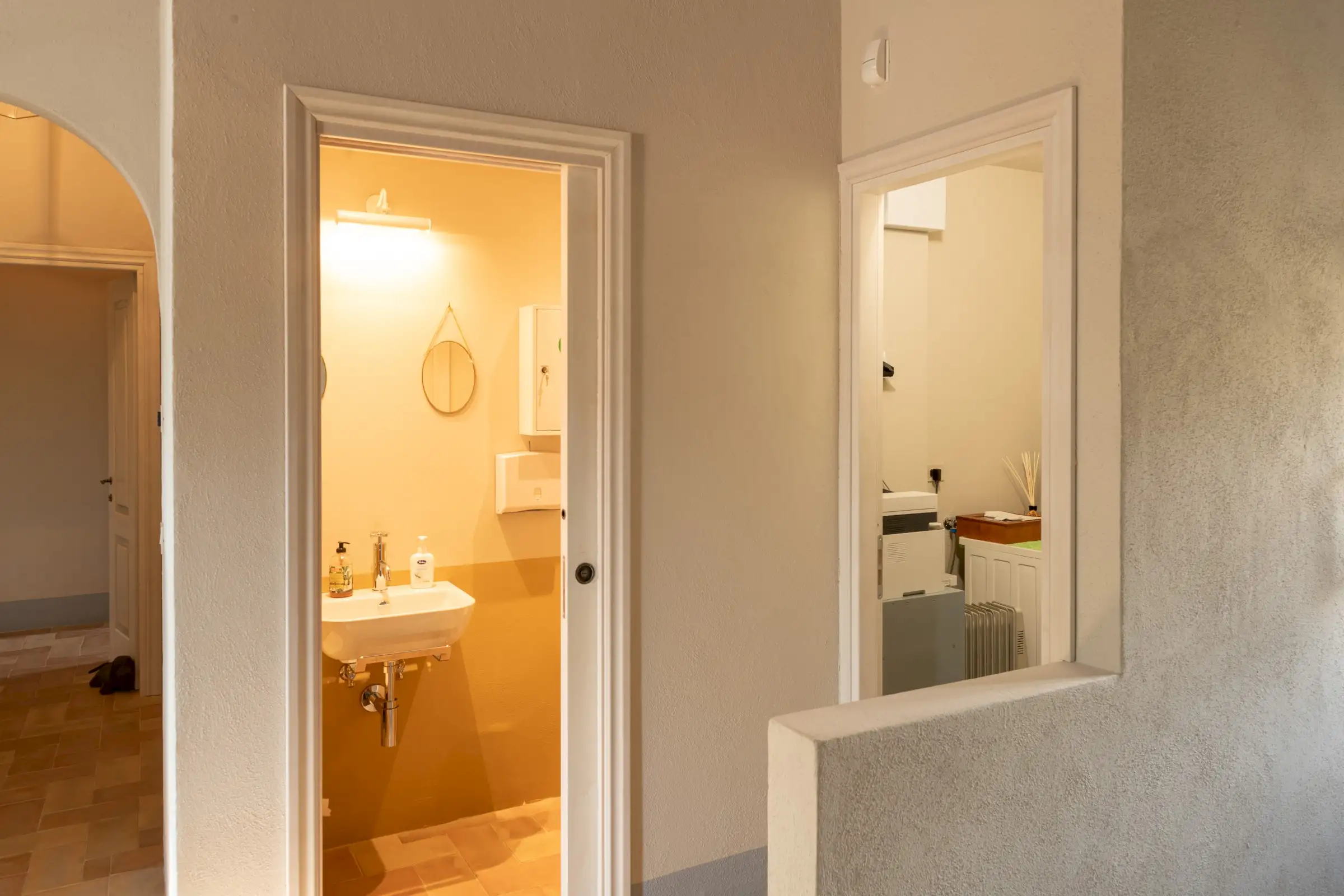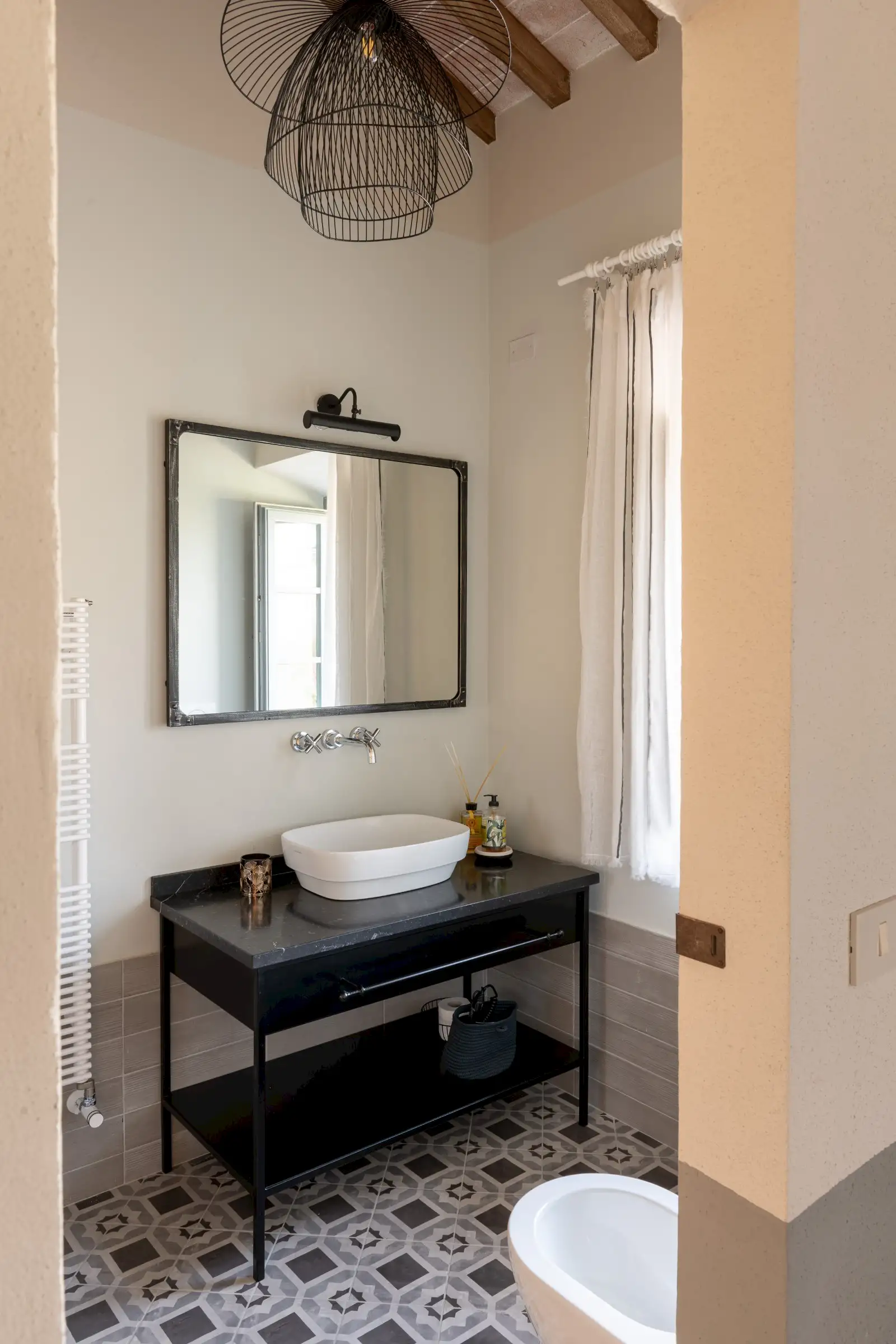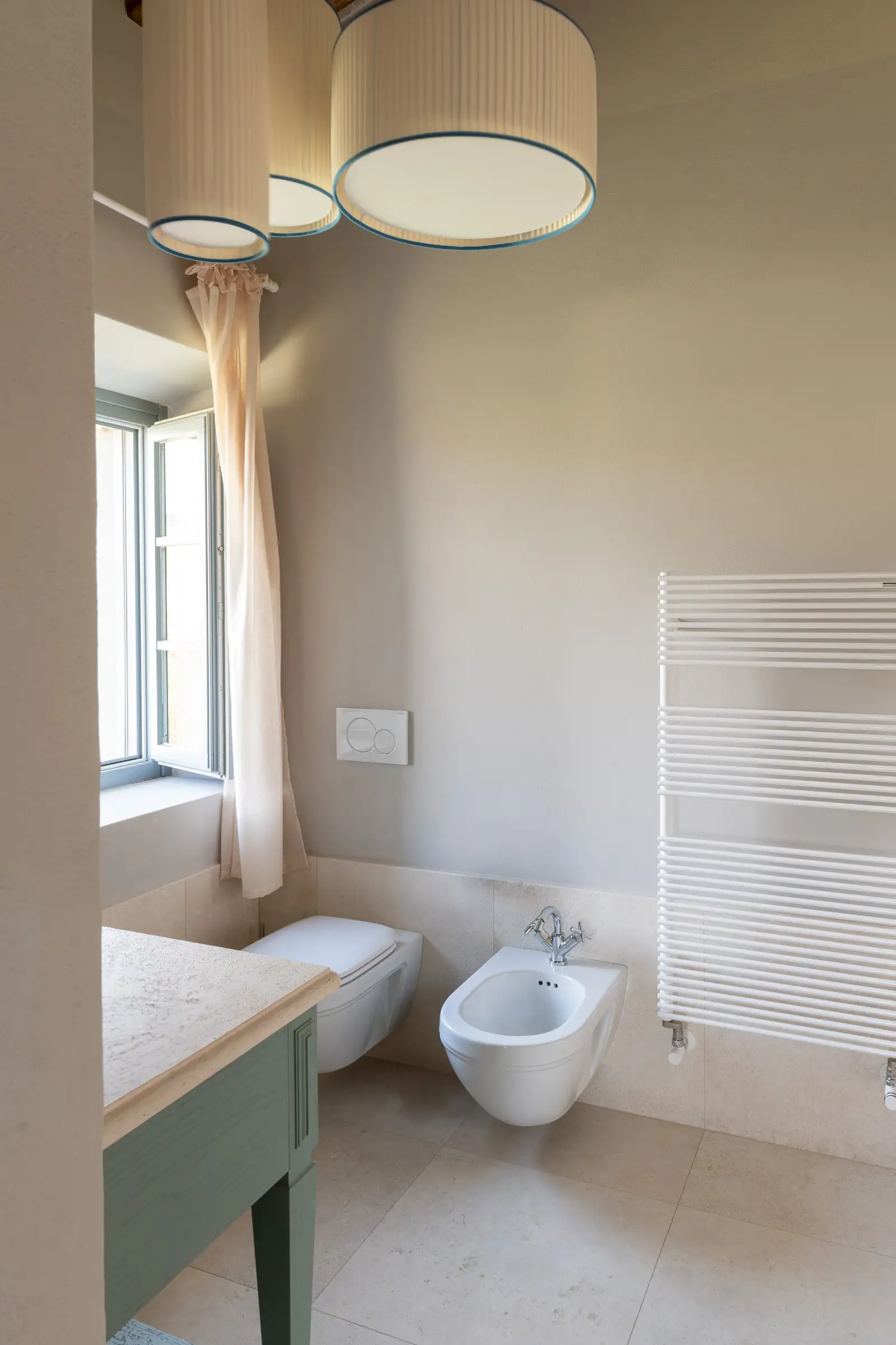 The bathrooms are light and elegant, with carefully chosen furnishings and decorative elements that create a cozy and welcoming feel. Antique pieces, such as a classic desk, are combined with modern amenities to highlight the refined design of the home.