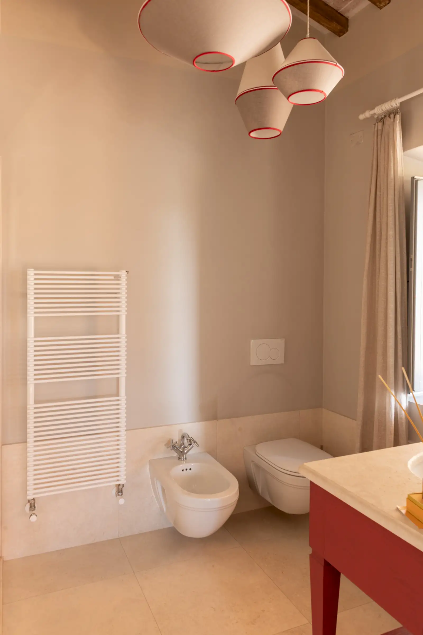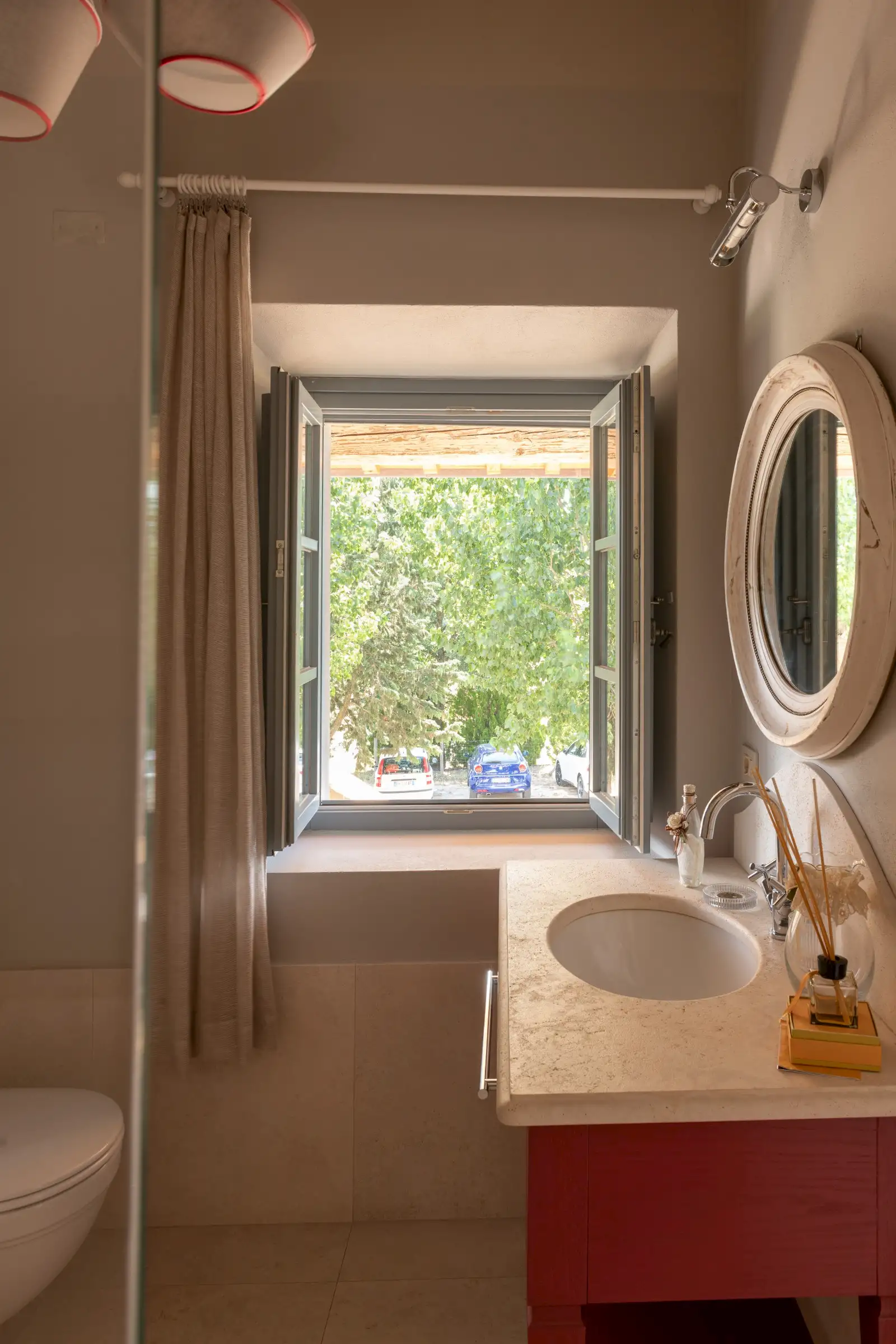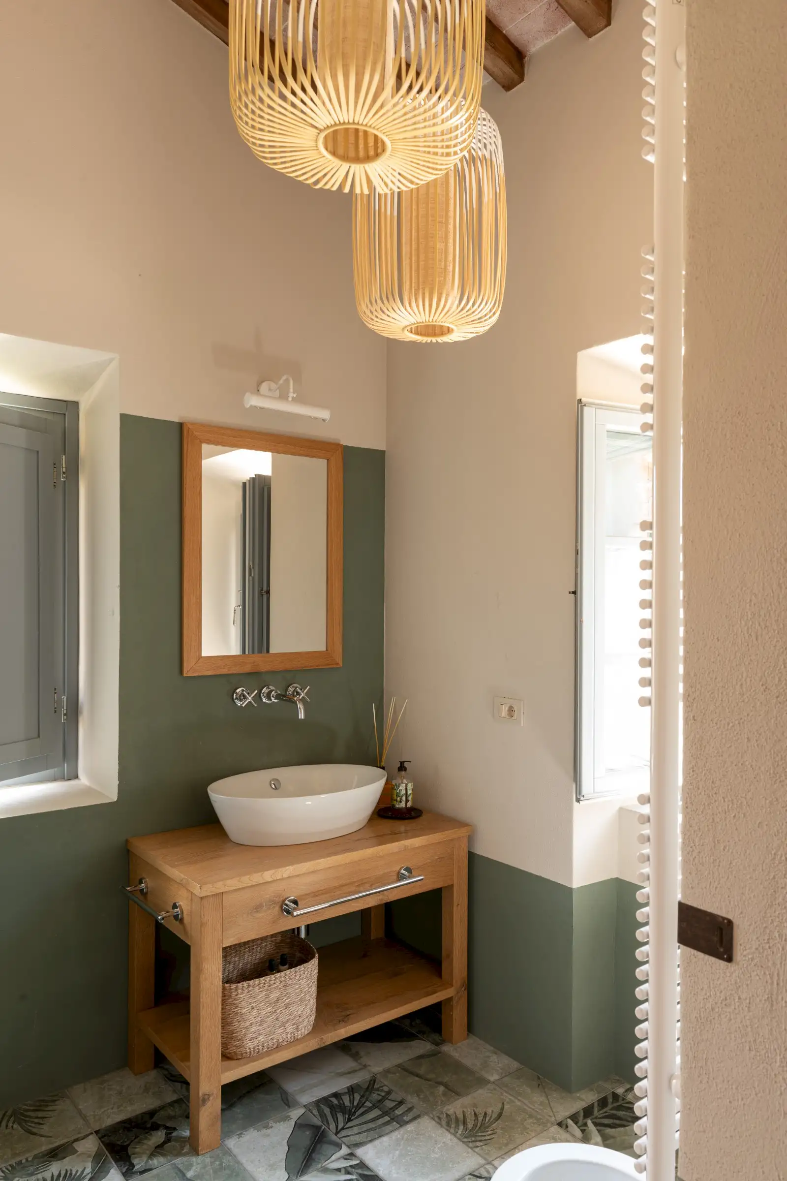 The bathrooms are light and elegant, with carefully chosen furnishings and decorative elements that create a cozy and welcoming feel. Antique pieces, such as a classic desk, are combined with modern amenities to highlight the refined design of the home.