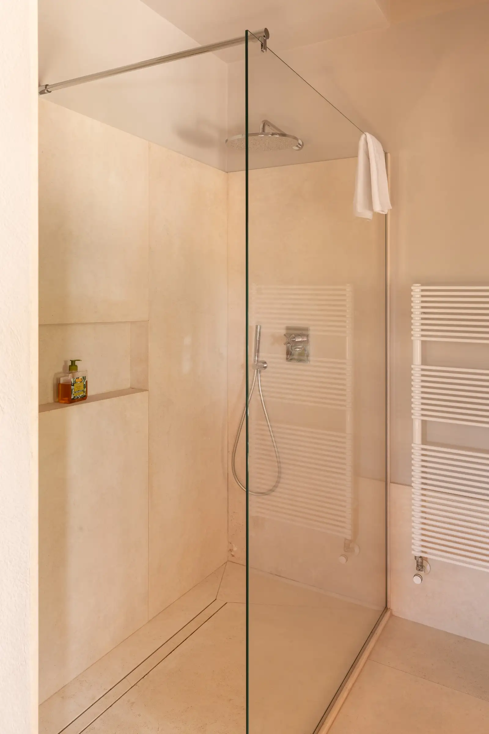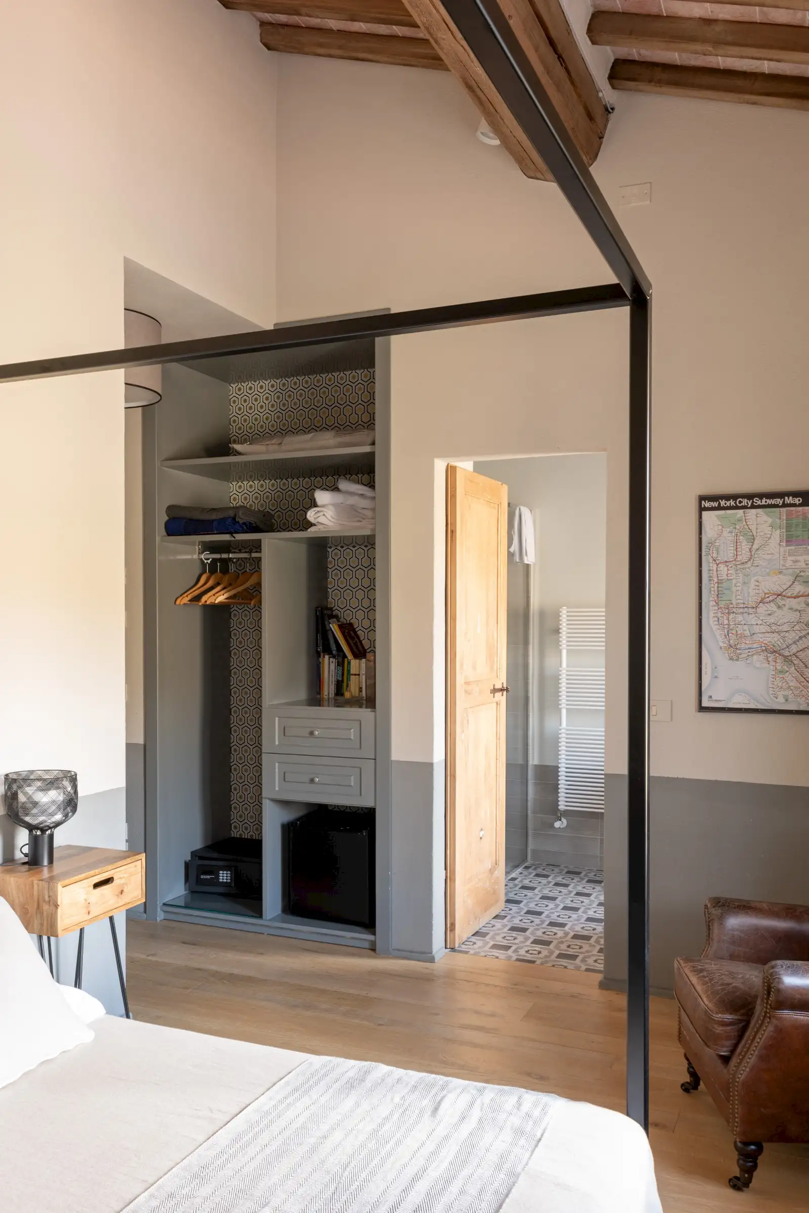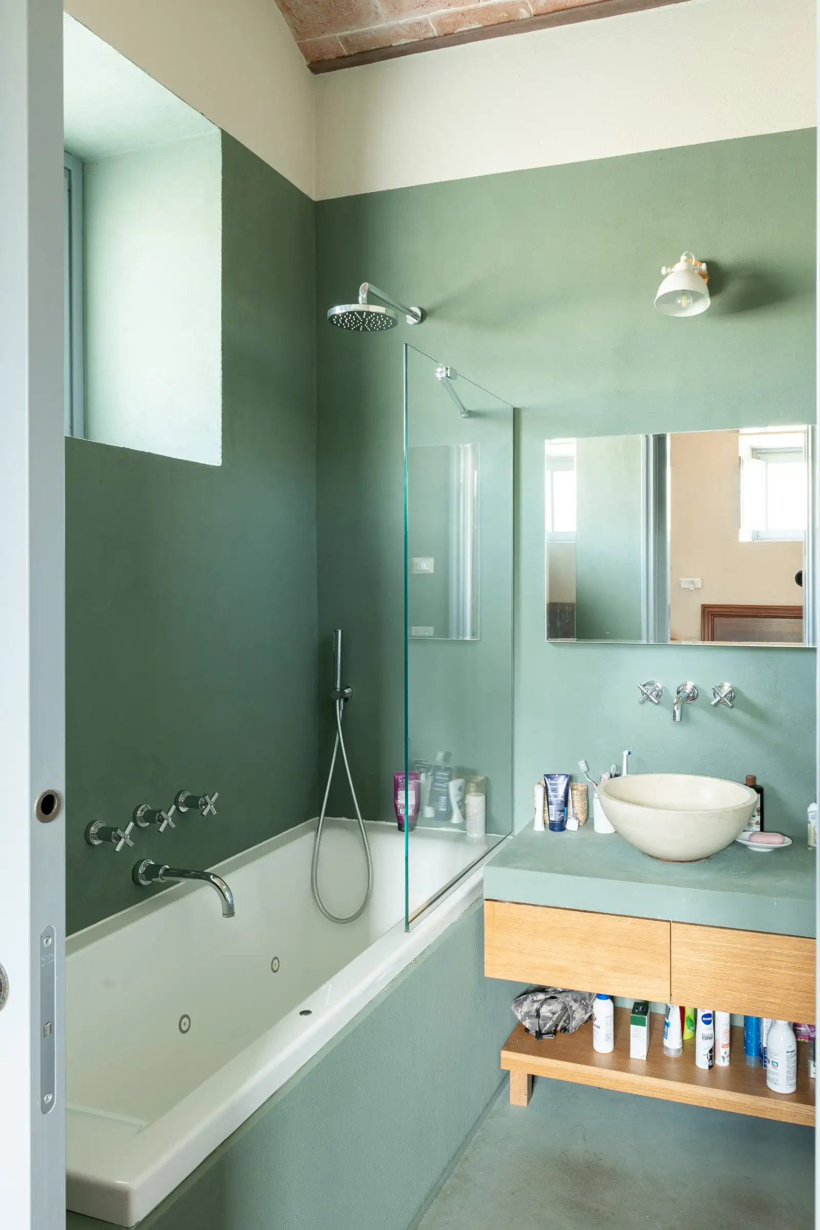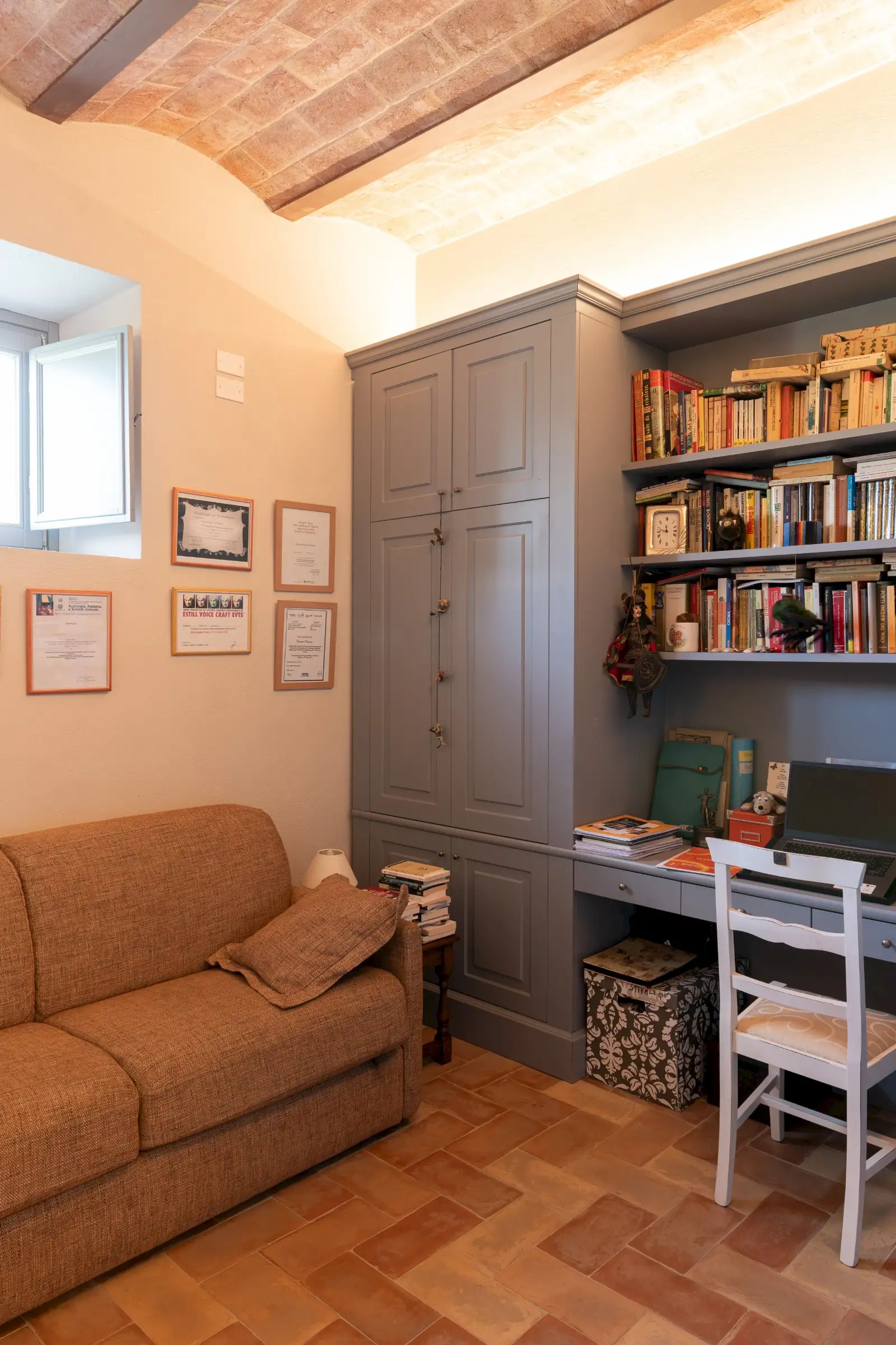 The bathrooms are light and elegant, with carefully chosen furnishings and decorative elements that create a cozy and welcoming feel. Antique pieces, such as a classic desk, are combined with modern amenities to highlight the refined design of the home.