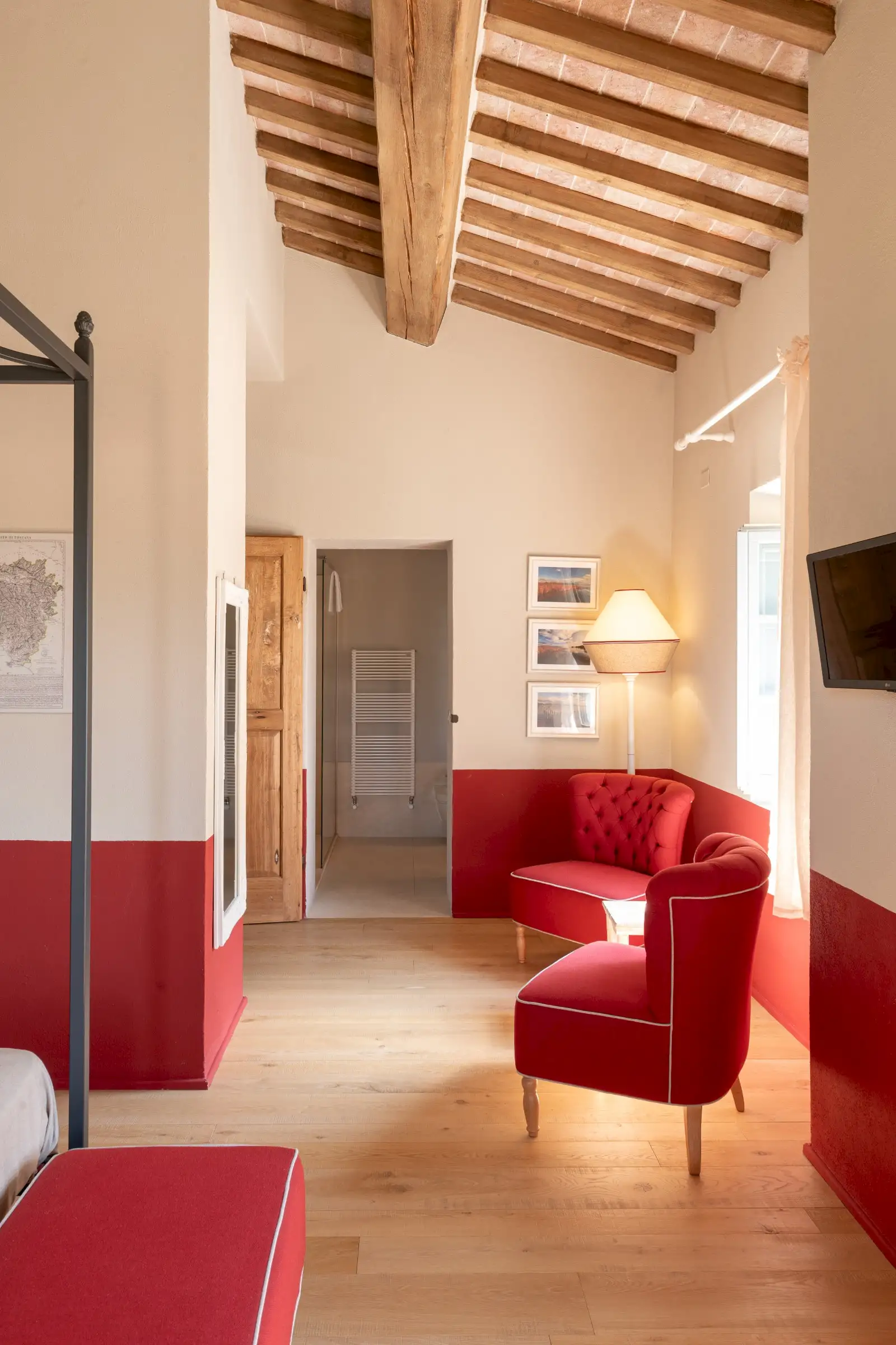 Podere Dolce Vita is located in the heart of the Val d'Orcia. This Tuscan area is perfect for exploring small towns near the villa and enjoying the sunset in the many vineyards of Tuscany. The property is currently set up as a B&B activity which may be continued or not pending the buyer's wishes, and features a main villa consisting of 5 luxury bedrooms at the first floor, each with an ensuite bathroom and a separate entrance. All rooms are finished to the highest quality and comfort standards.