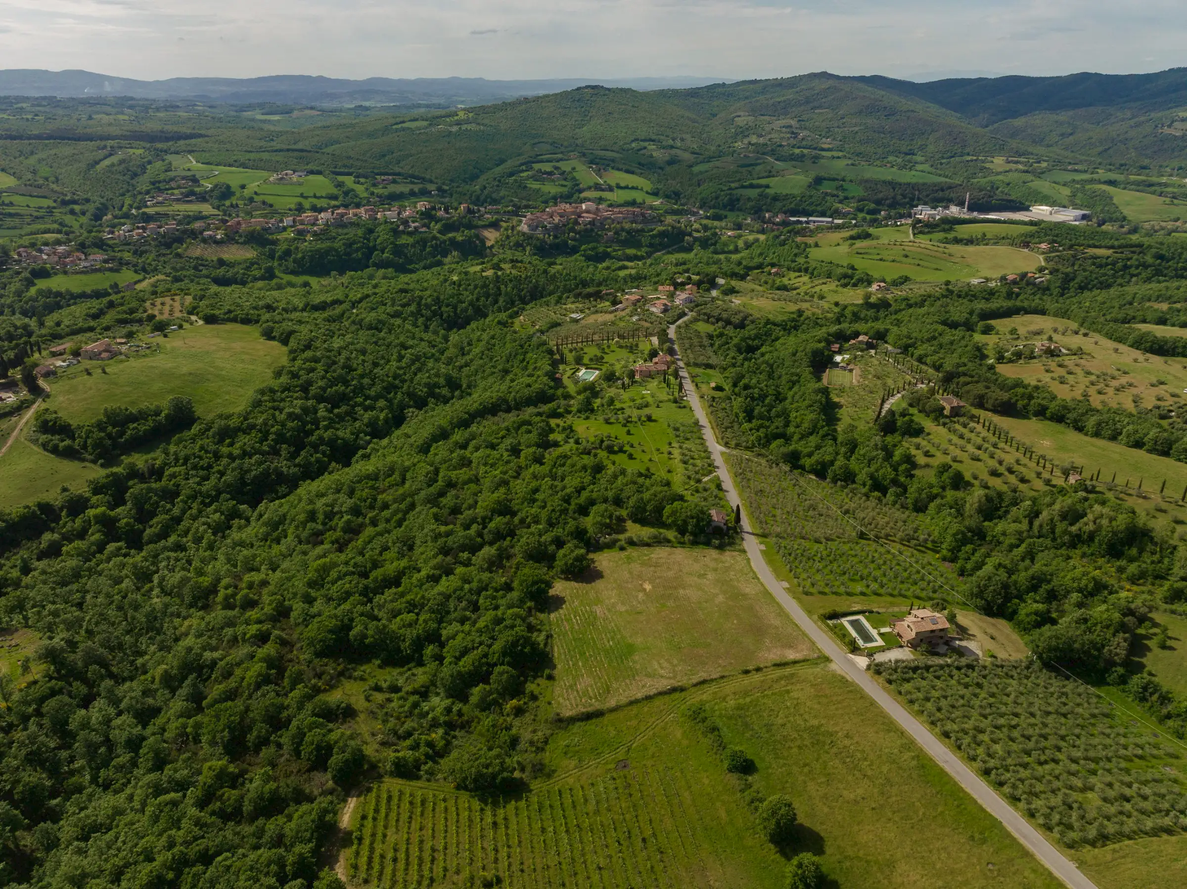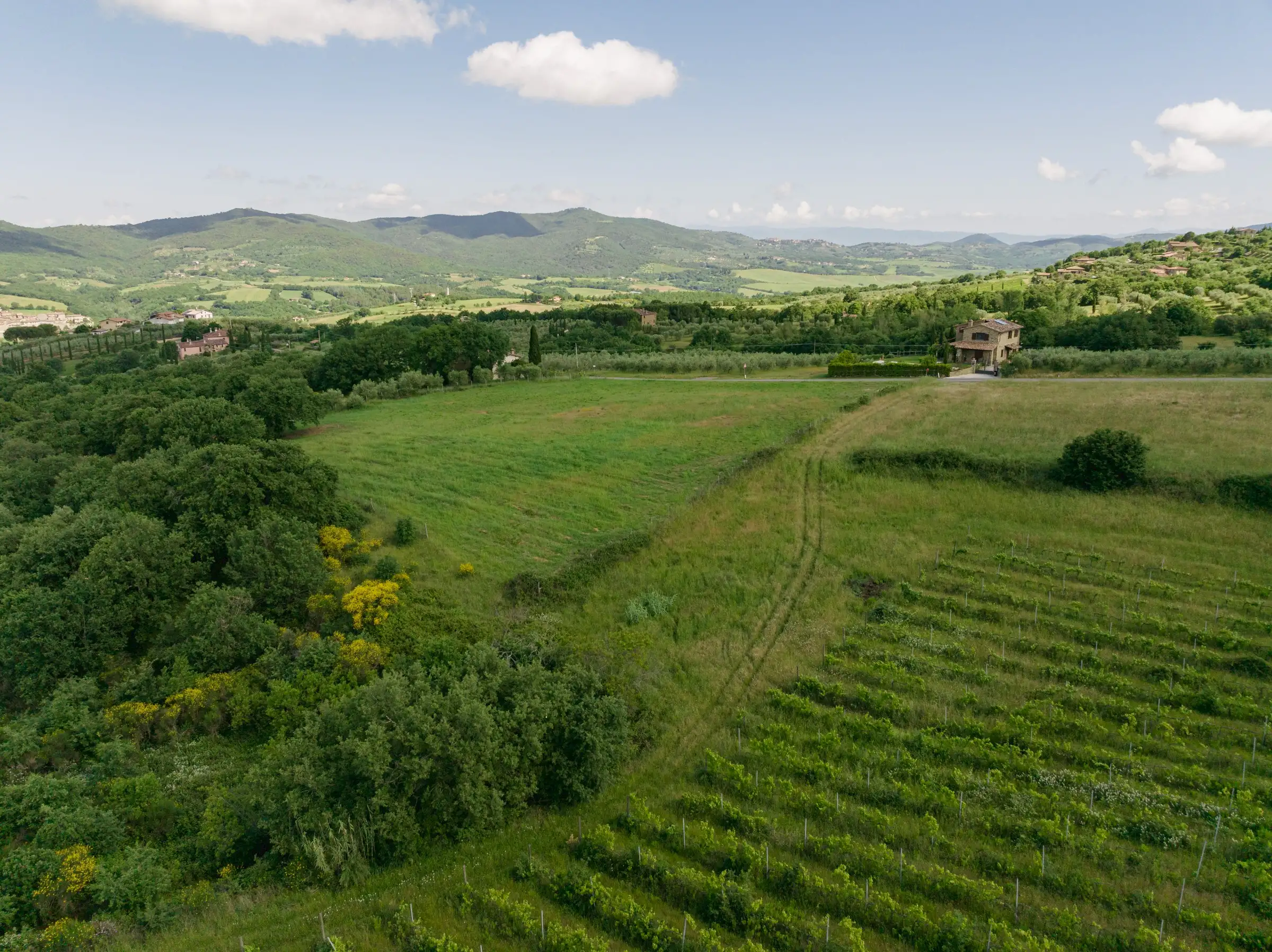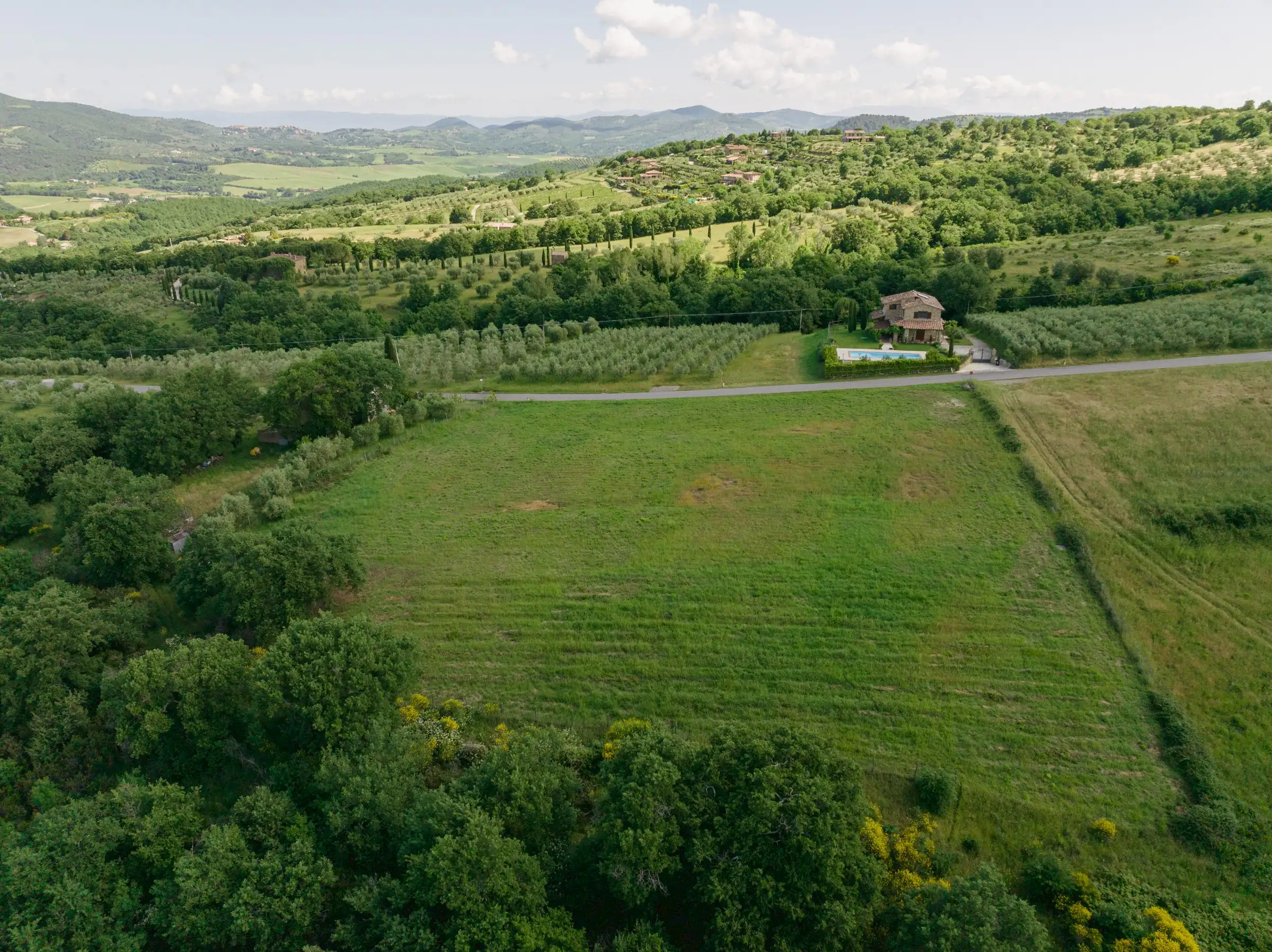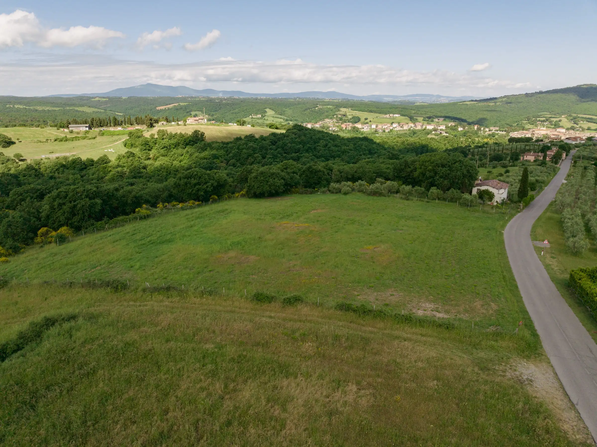 This plot of buildable land lies in stunning countryside, just 3km from the ancient medieval hilltop town of Piegaro. Sitting on the ridge of a hill where Umbria tips into Tuscany, it is accessed by a quiet, paved road that connects Piegaro with Monte Arale.