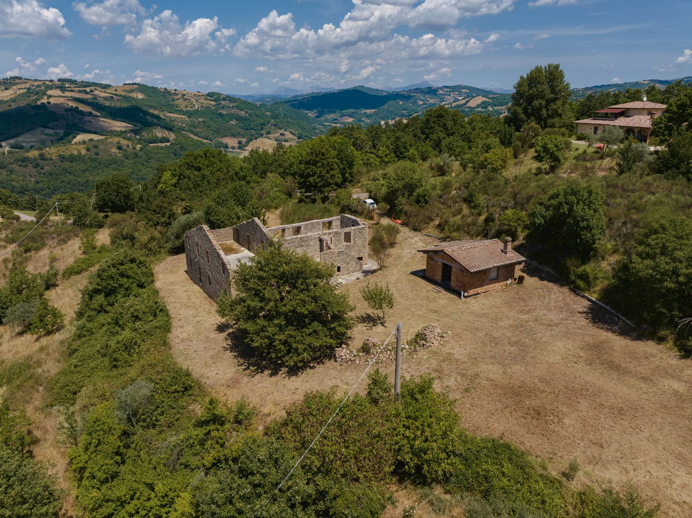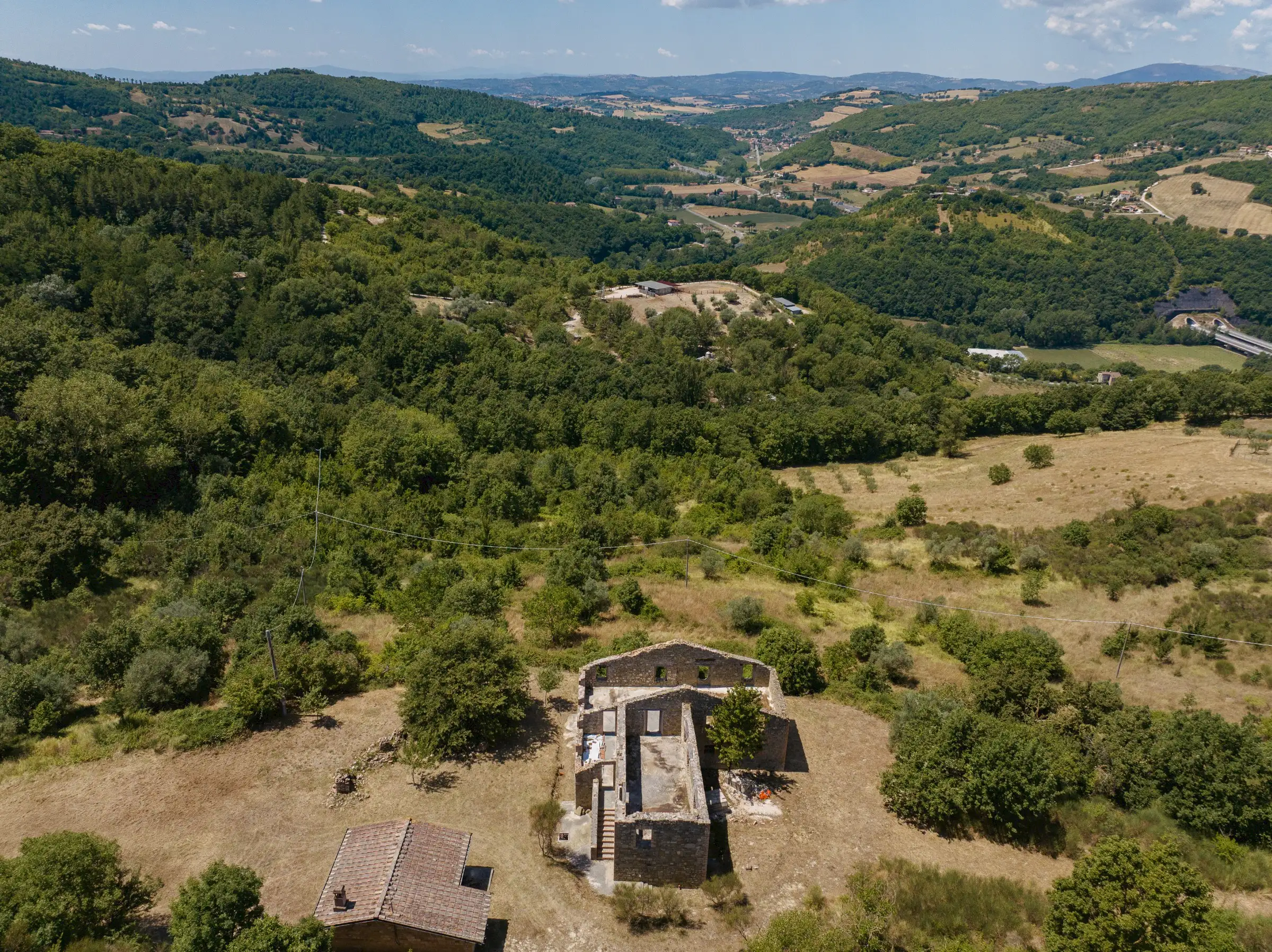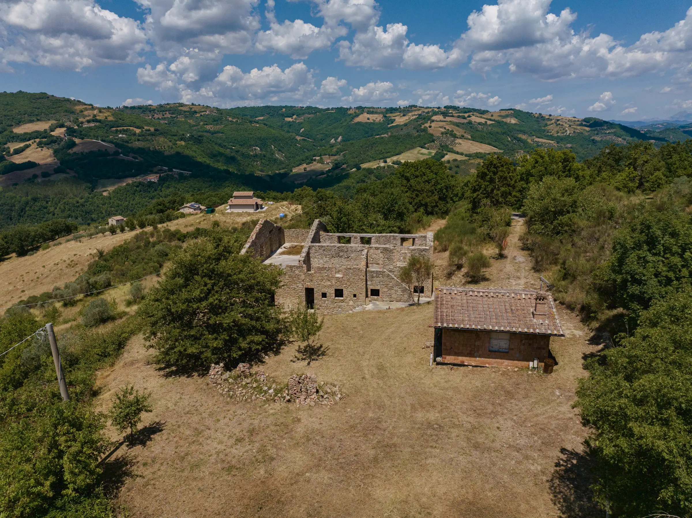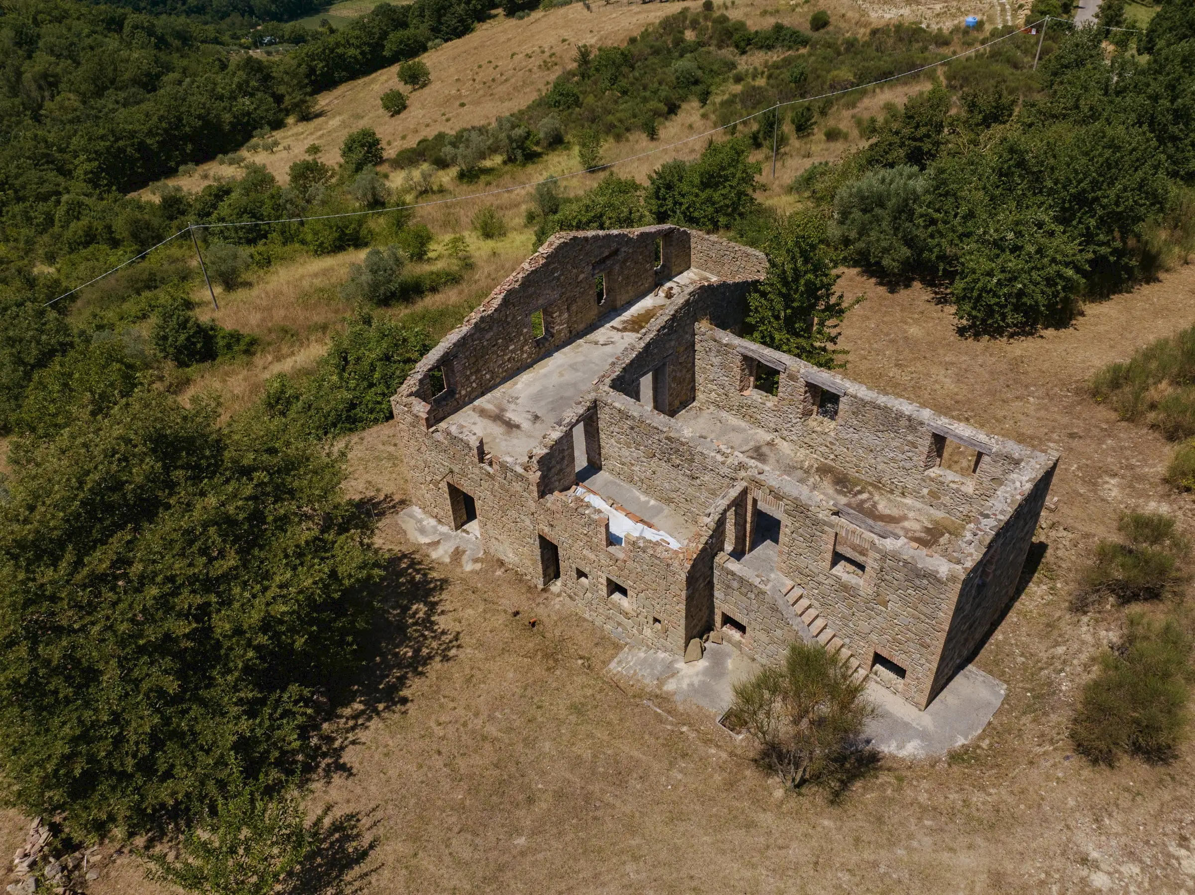 Designed to follow the natural flow of the land, the expert masonry work that has restored all the perimeter walls and part of the interior suggests that this property can become a masterpiece of modern architecture, seamlessly blending into the landscape, or find its place in a more classical completion.